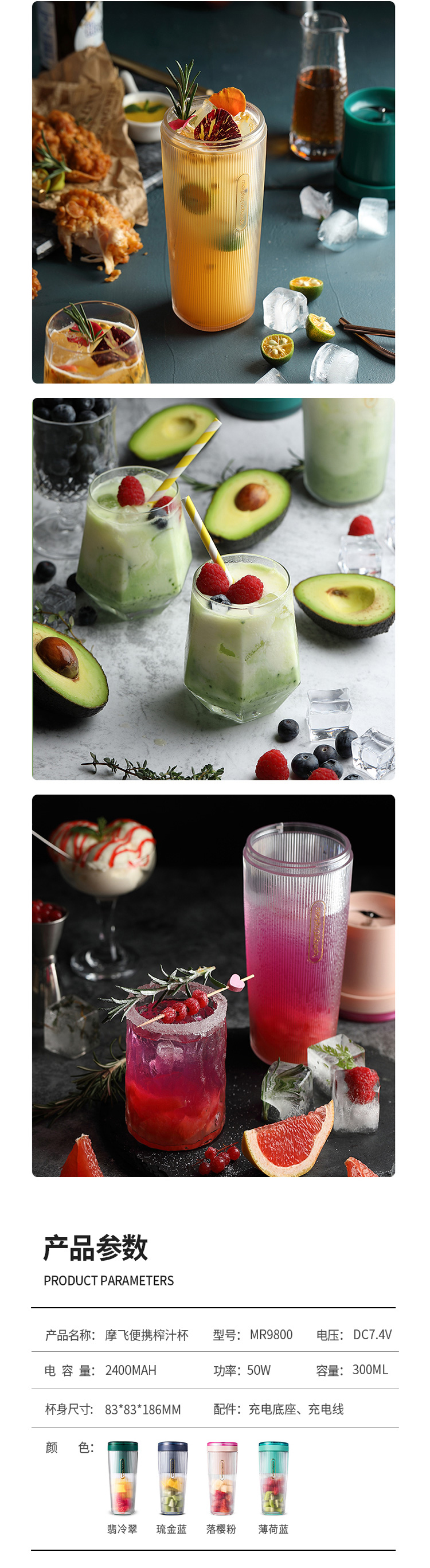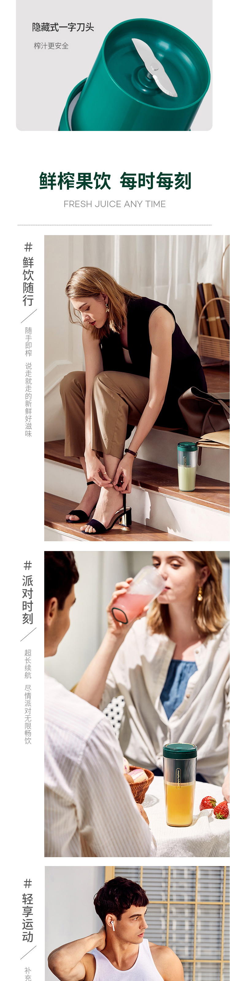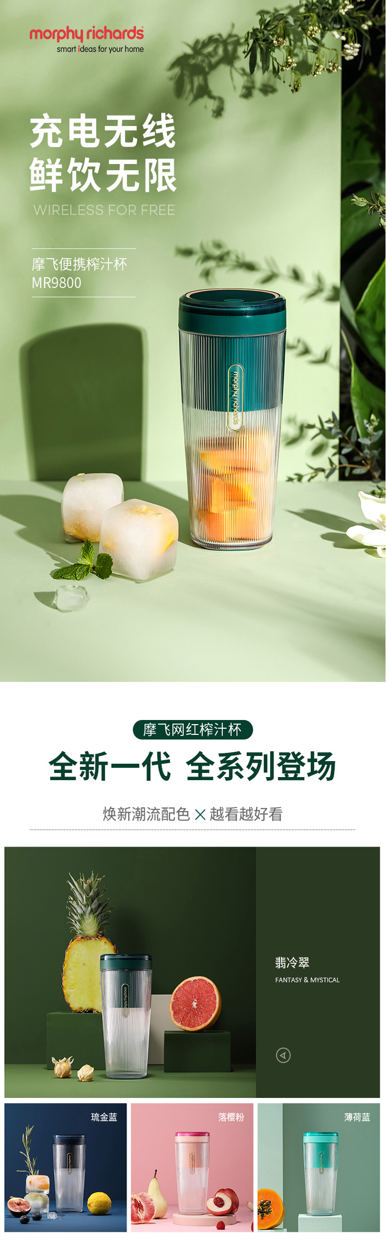 摩飞(Morphyrichards)便携式榨汁机网红无线充电果汁机料理机迷你随行杯MR9800翡冷绿