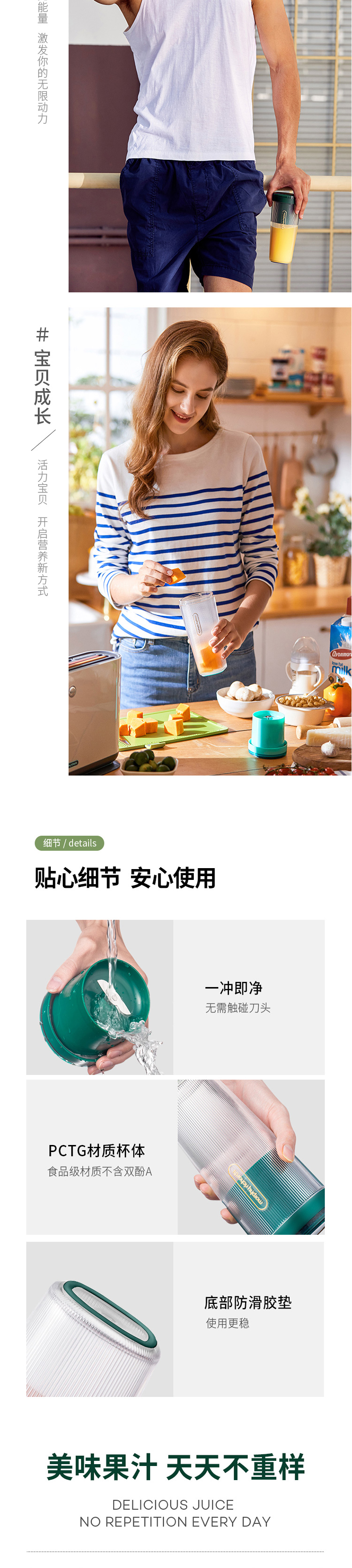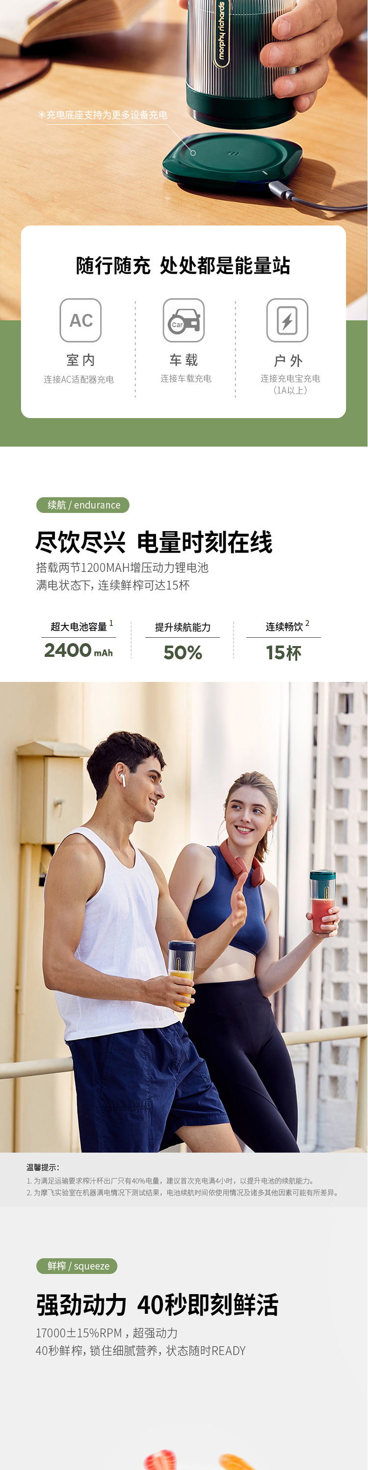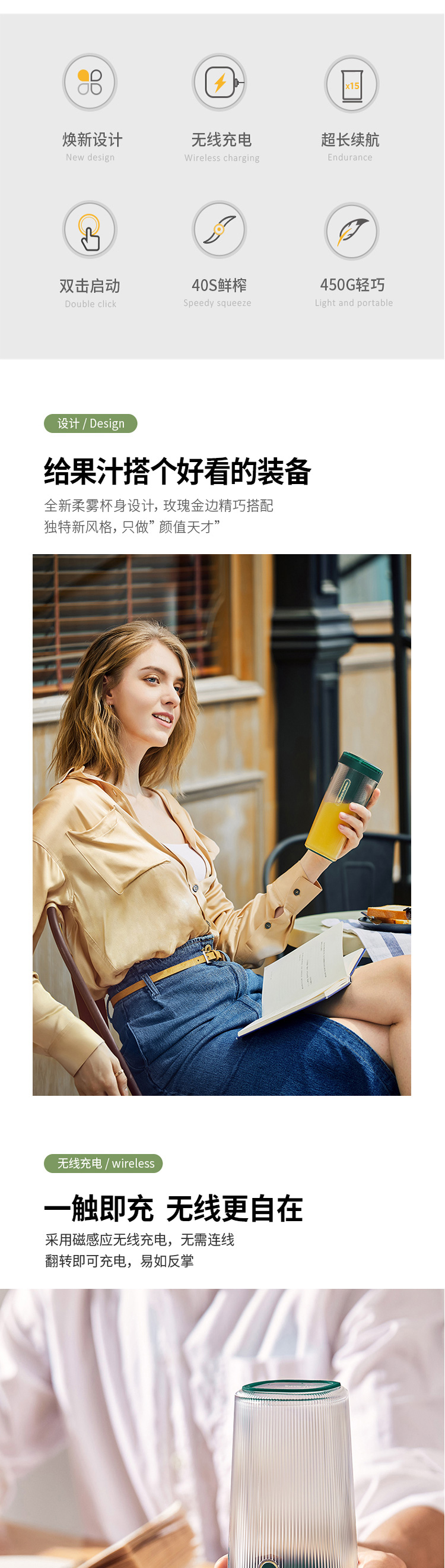 摩飞(Morphyrichards)便携式榨汁机网红无线充电果汁机料理机迷你随行杯MR9800翡冷绿
