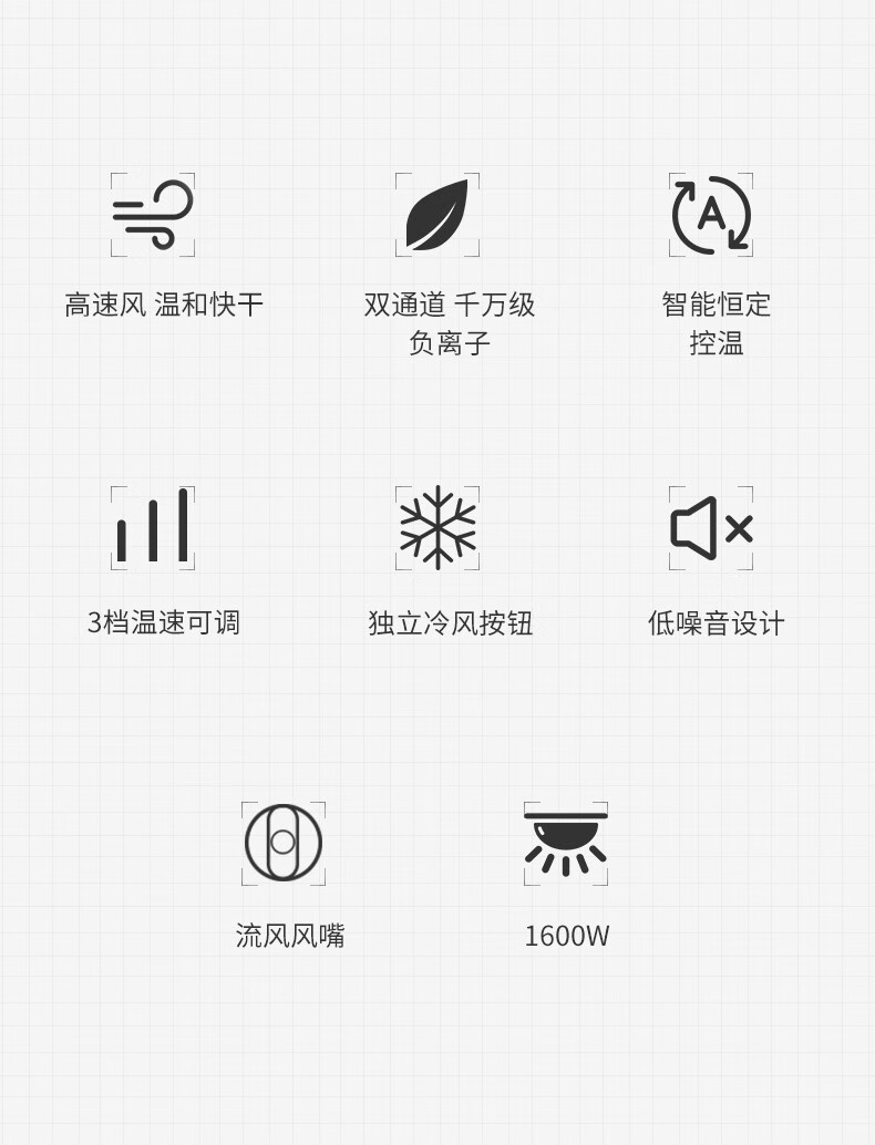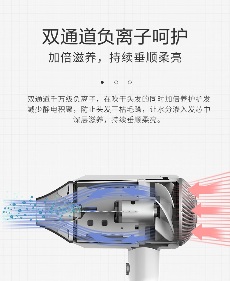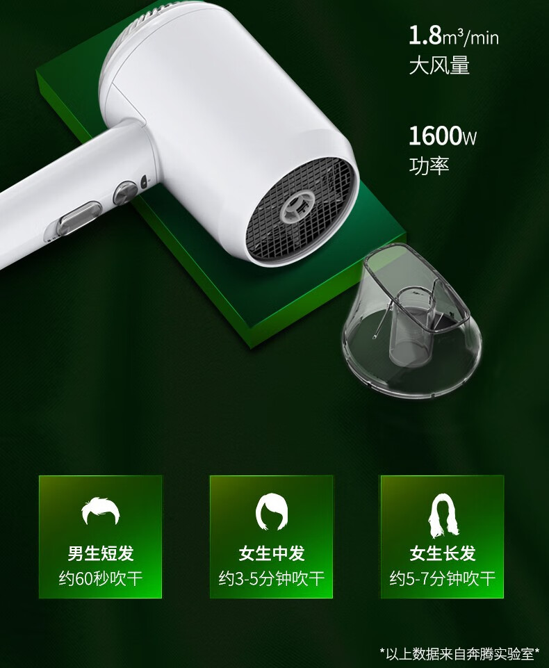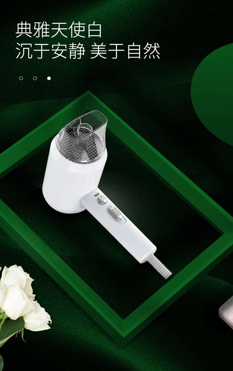 【自营】 奔腾POVOS 家用电吹风 吹风机1600W负离子吹风筒 3档风速 白色