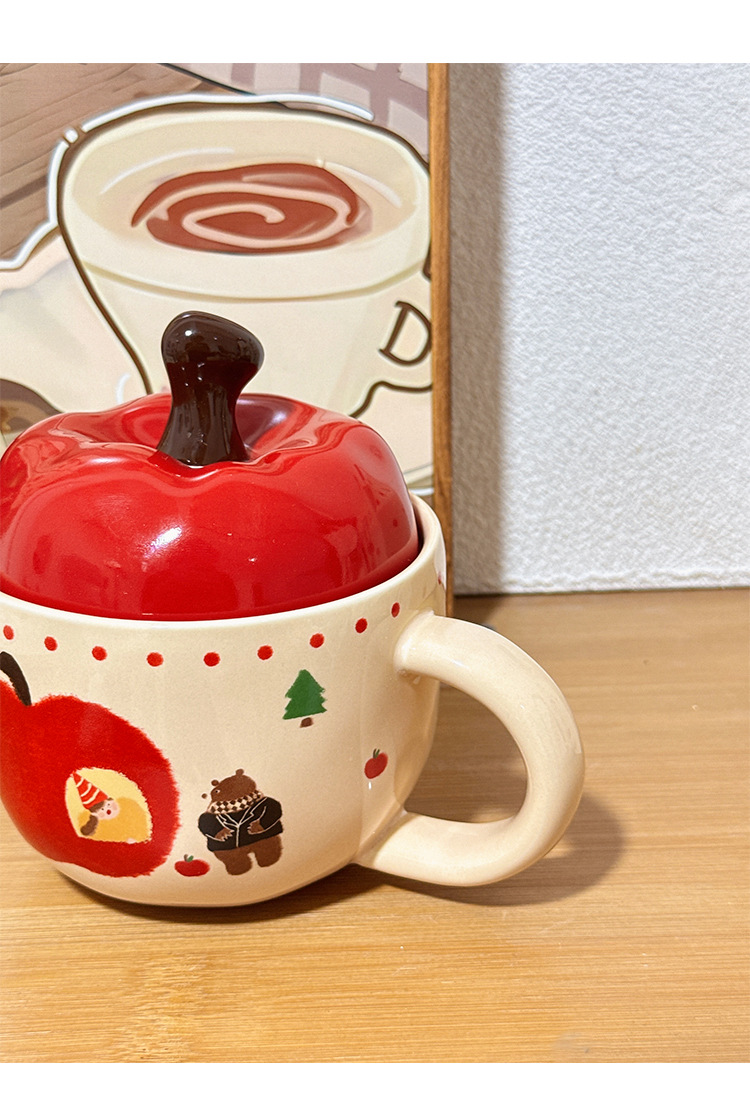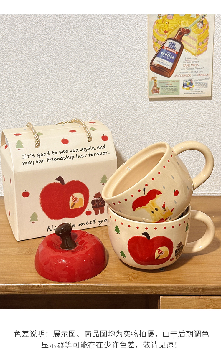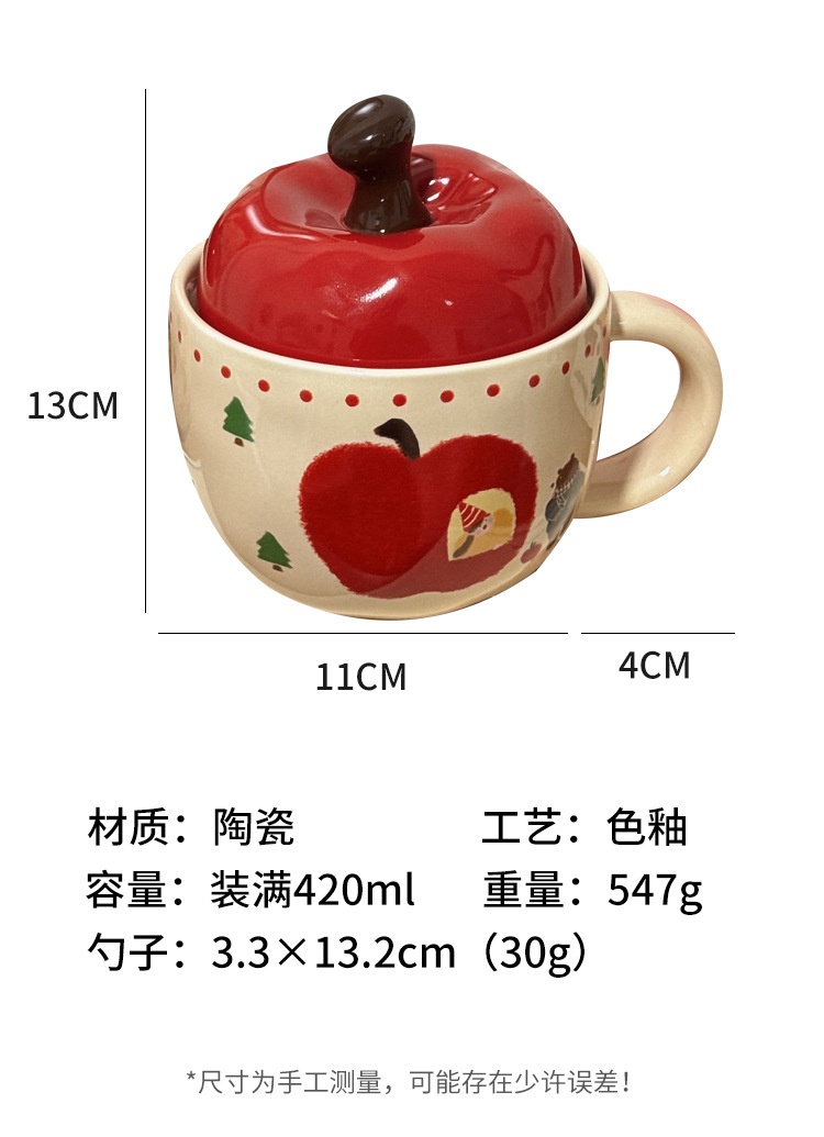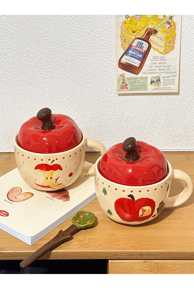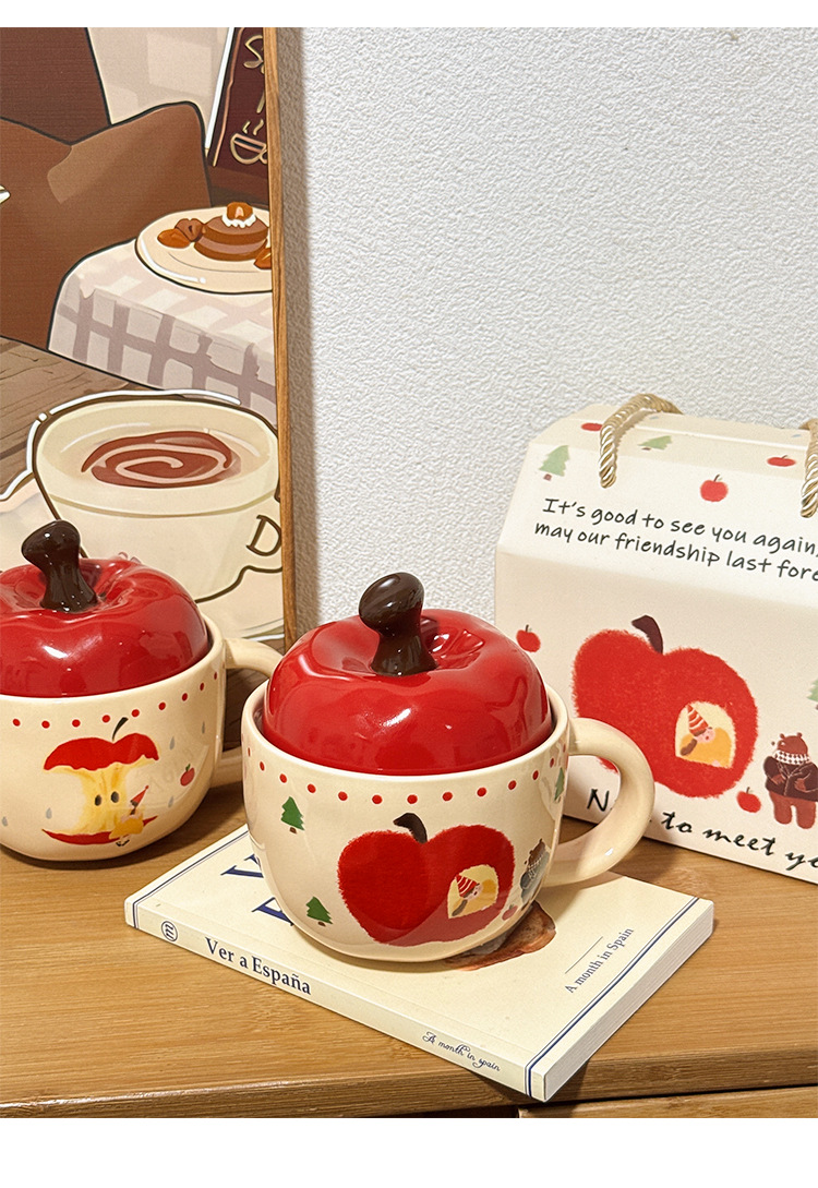 「礼盒装!陶瓷马克杯」可爱带盖勺早餐杯办公室喝水情侣水杯生日礼物女苹果陶瓷杯马克杯餐饮用具