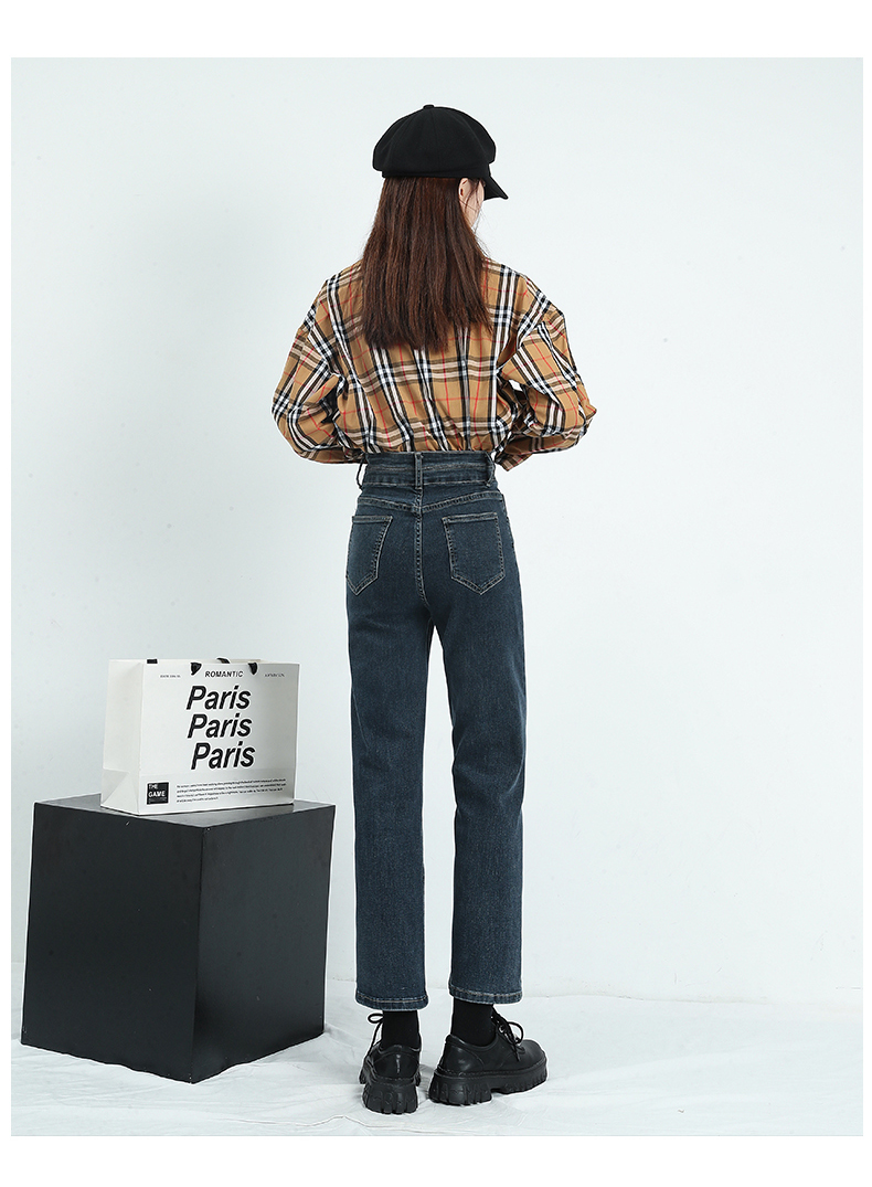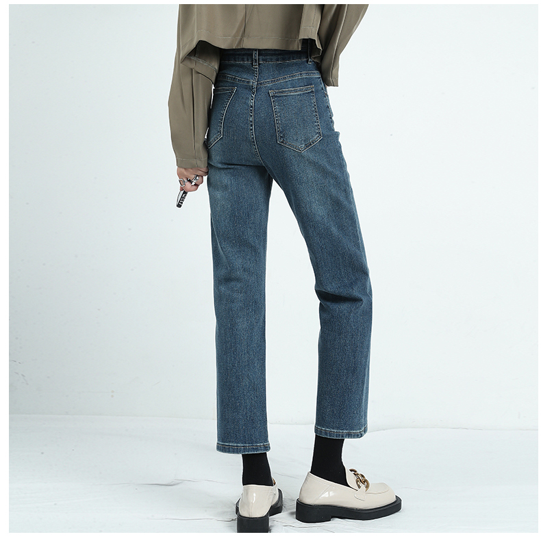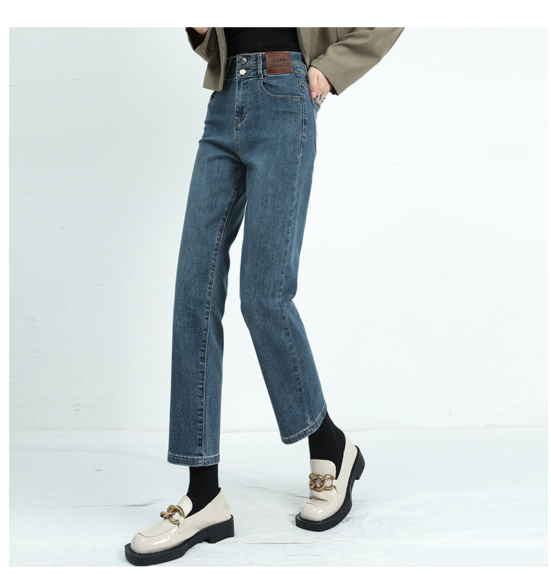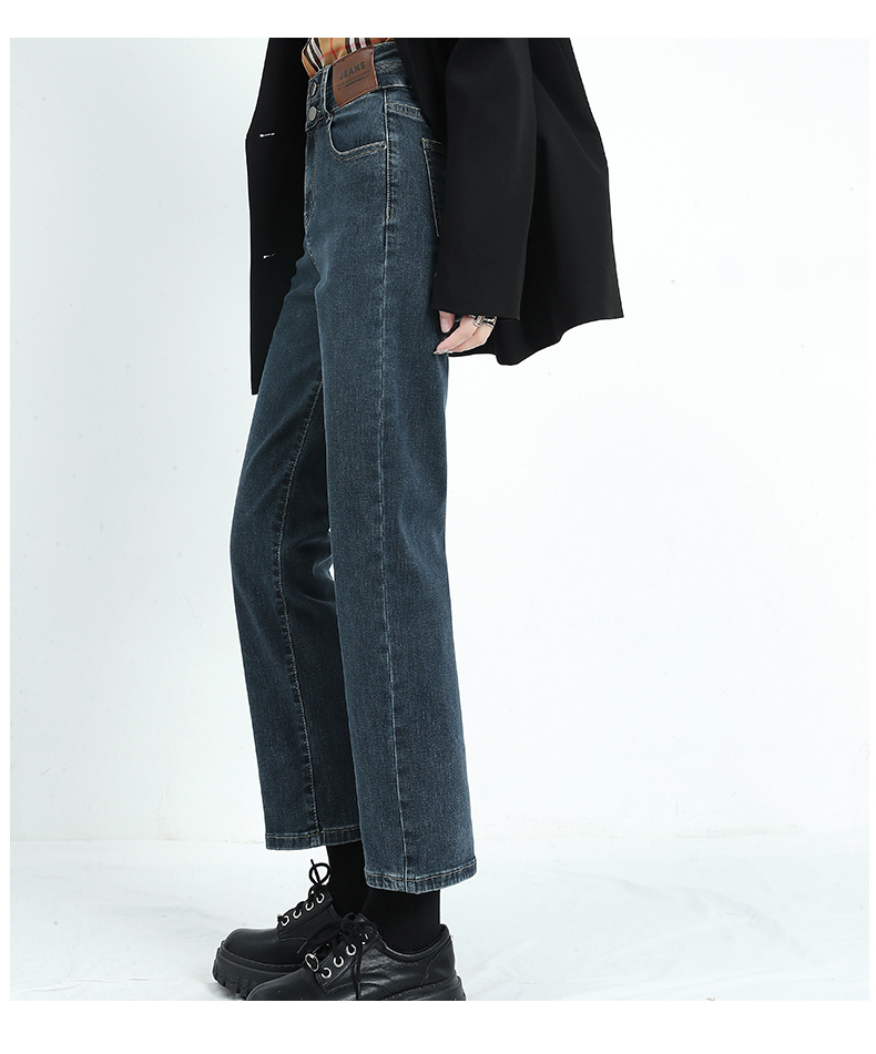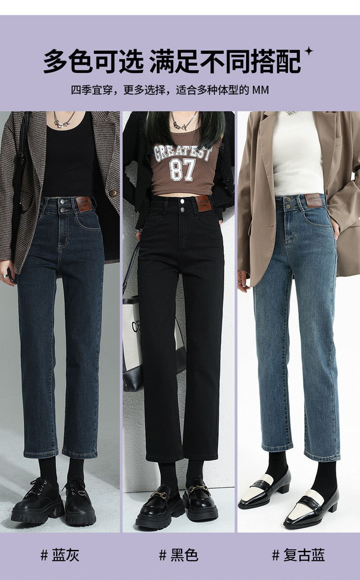 🔹版型:小宽松直筒裤型适合各种腿型,结合中高腰的设计,衬的腿长且直,脚口毛边细节,让整体更具复古气质。