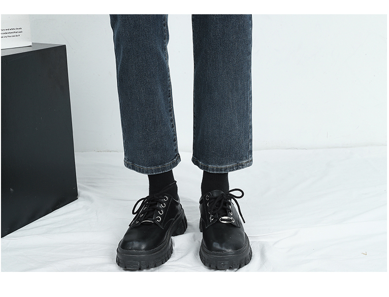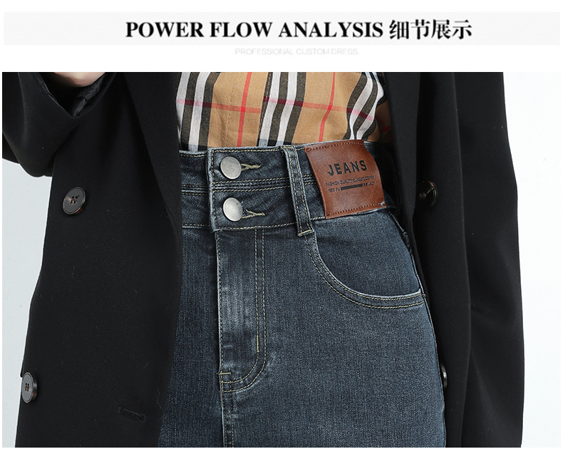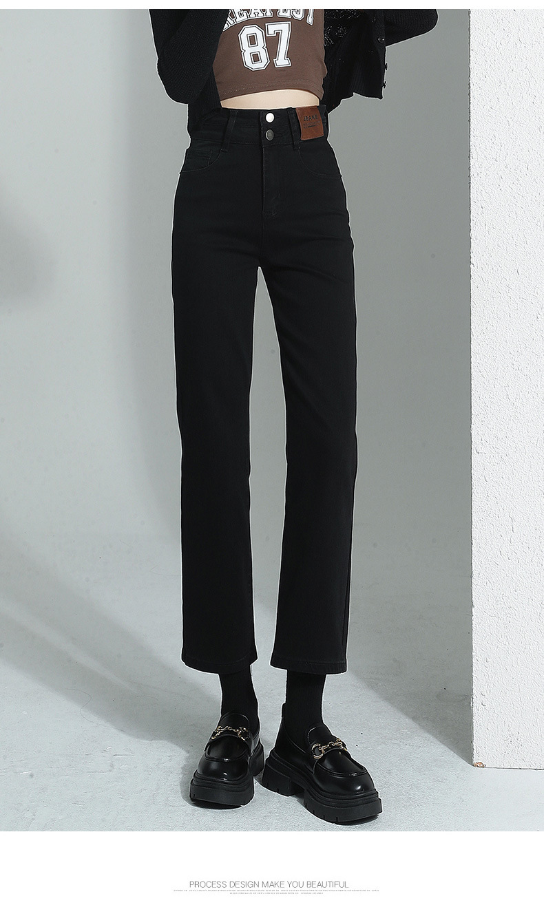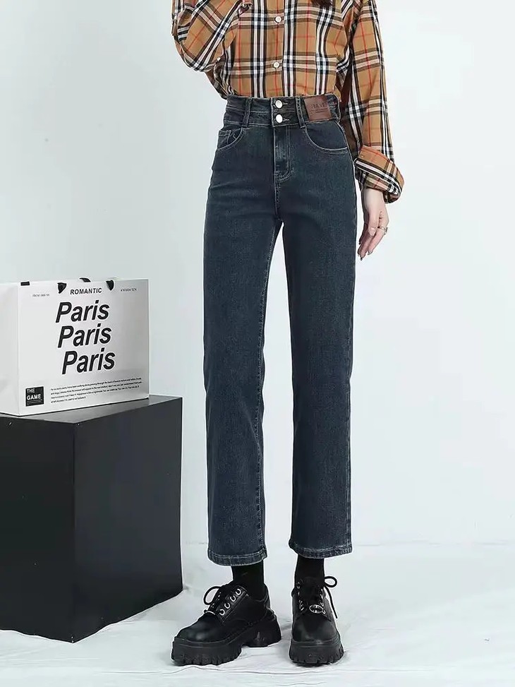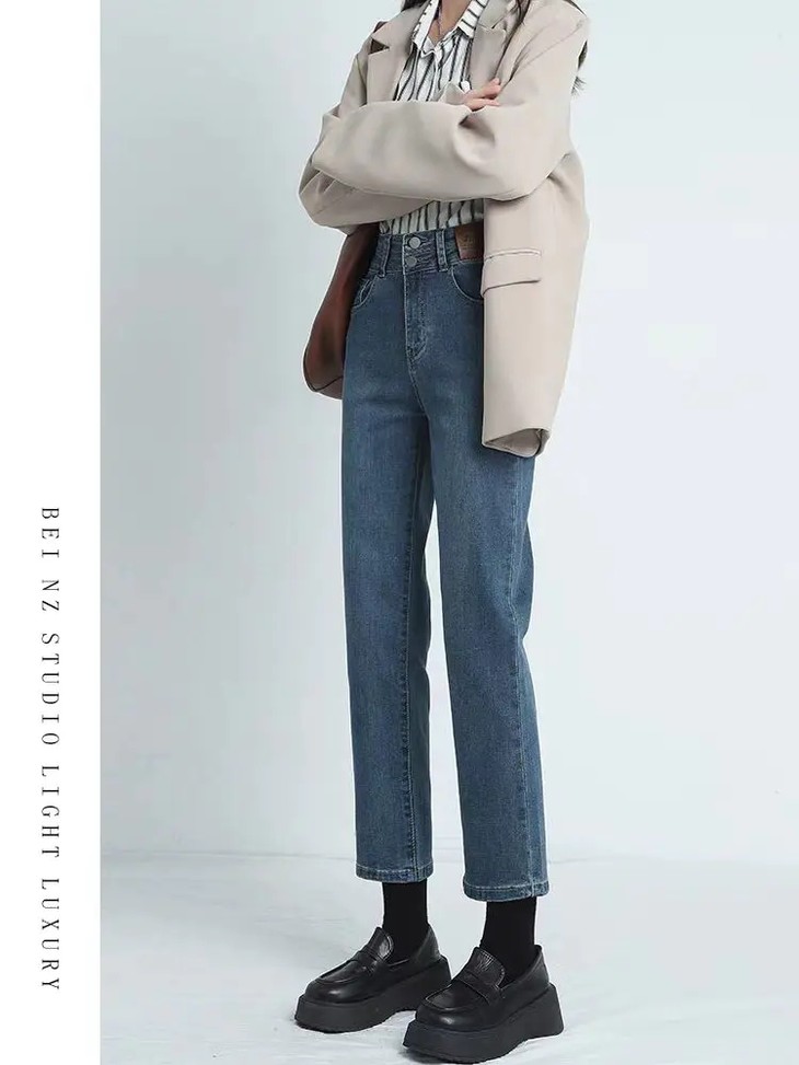 🔹版型:小宽松直筒裤型适合各种腿型,结合中高腰的设计,衬的腿长且直,脚口毛边细节,让整体更具复古气质。