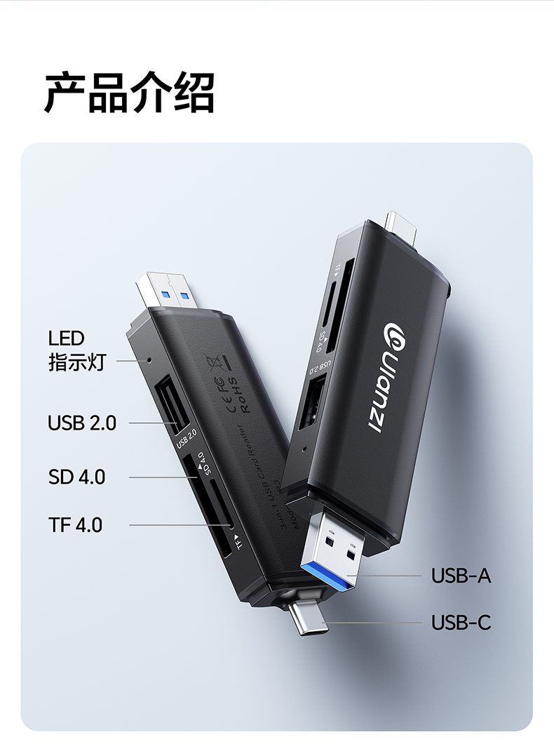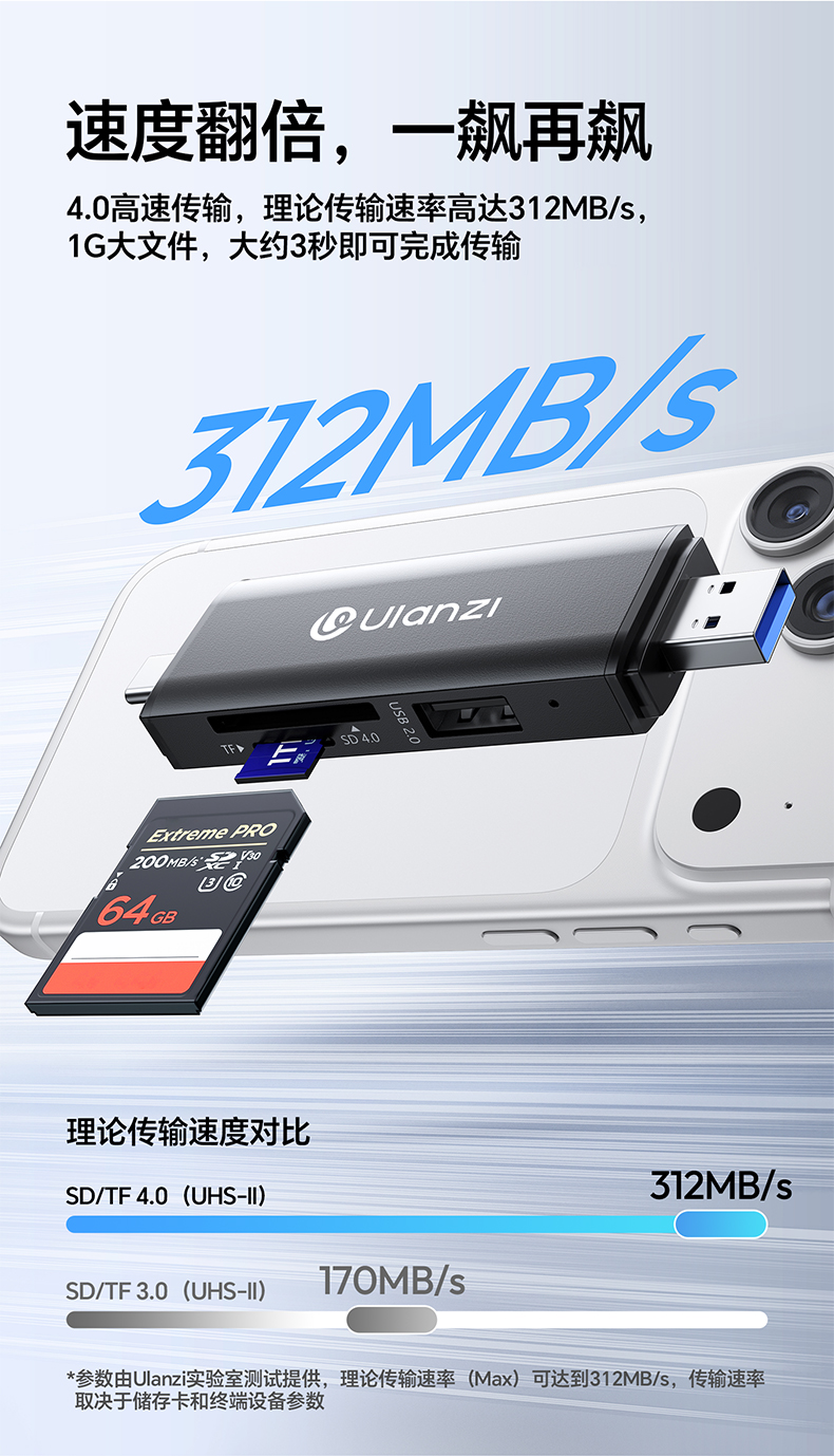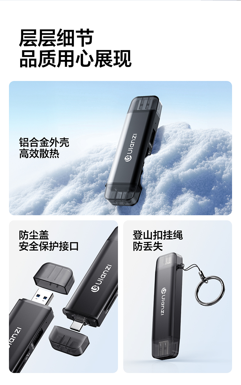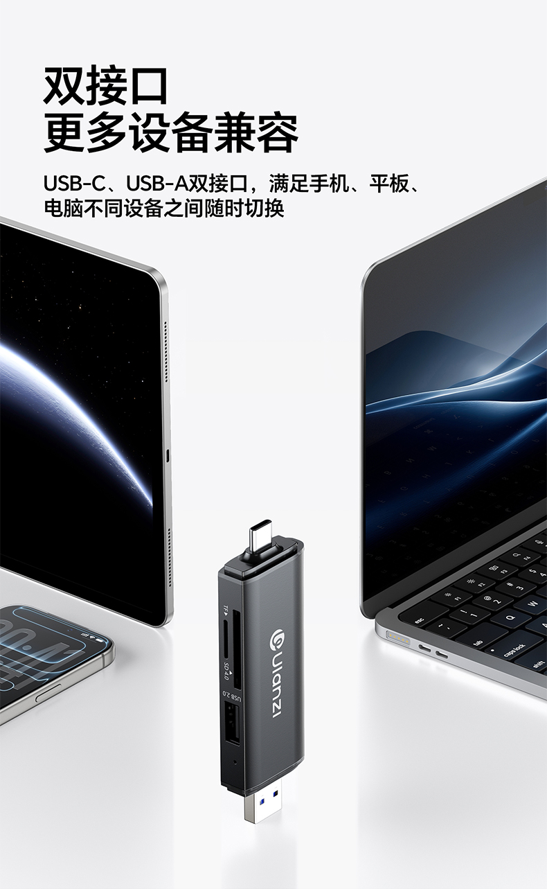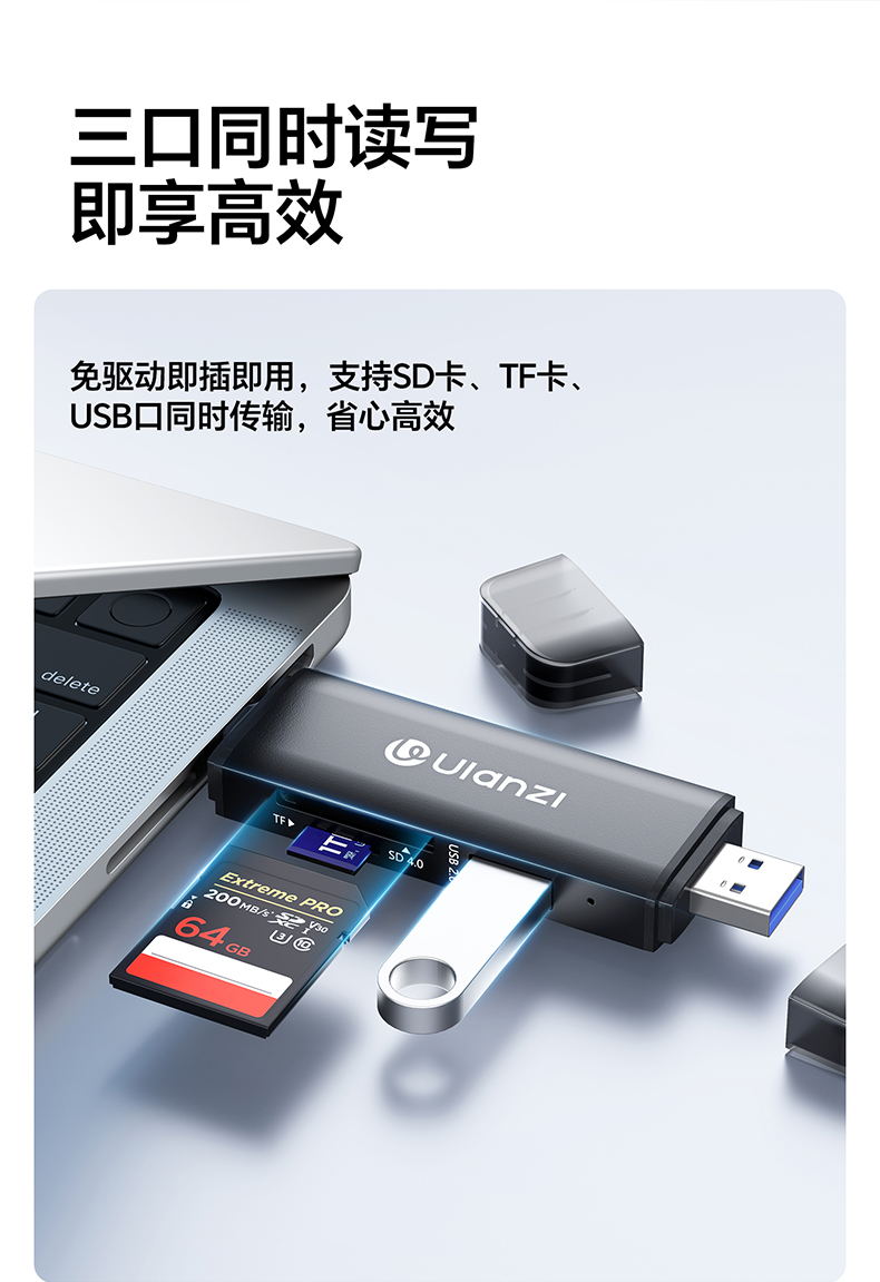 Ulanzi优篮子CR3三合一读卡器4.0多接口高速读取SD卡/TF卡闪传设备USB内存卡type-c兼容平板手机电脑即插即用