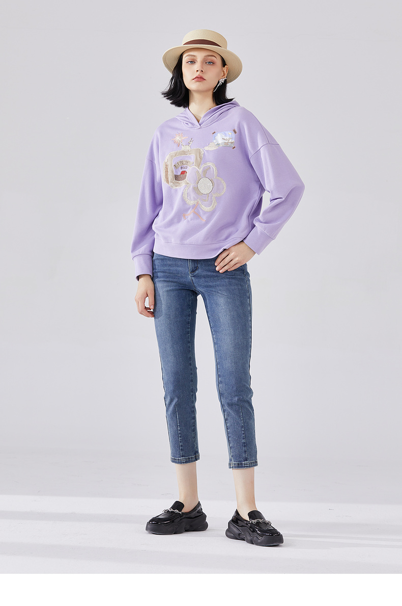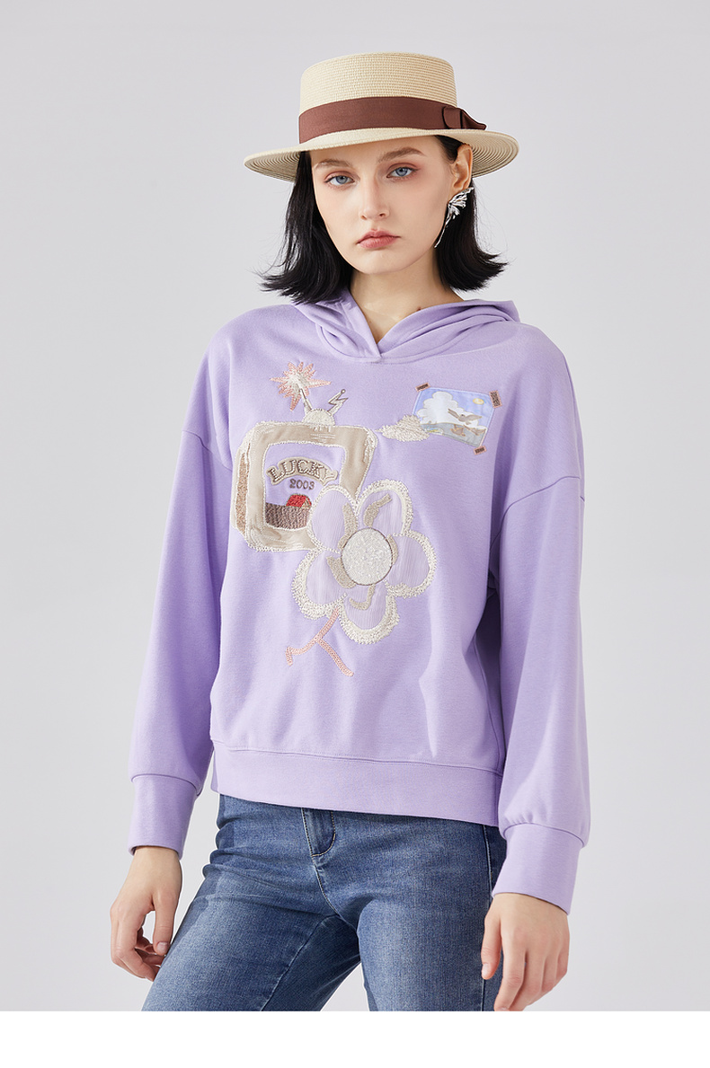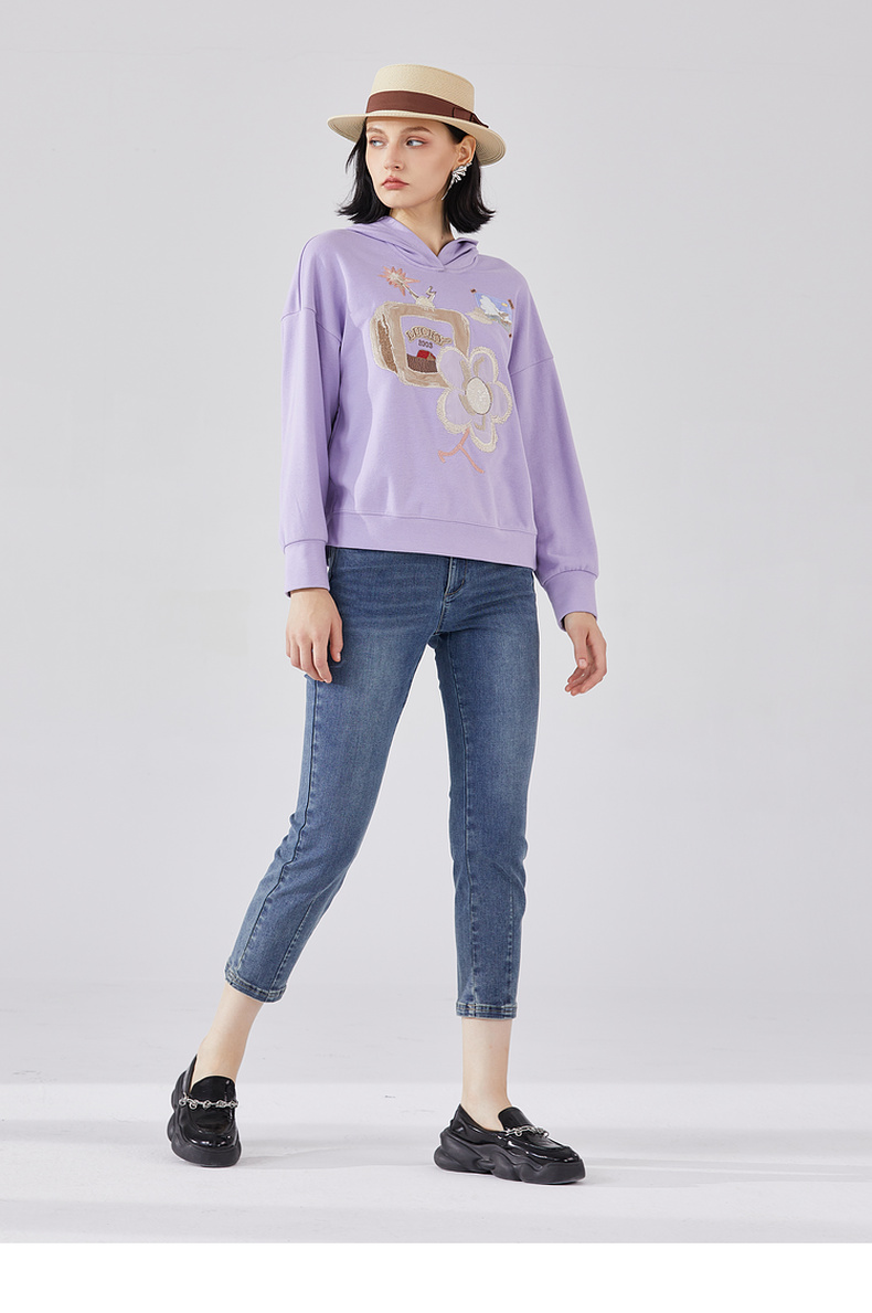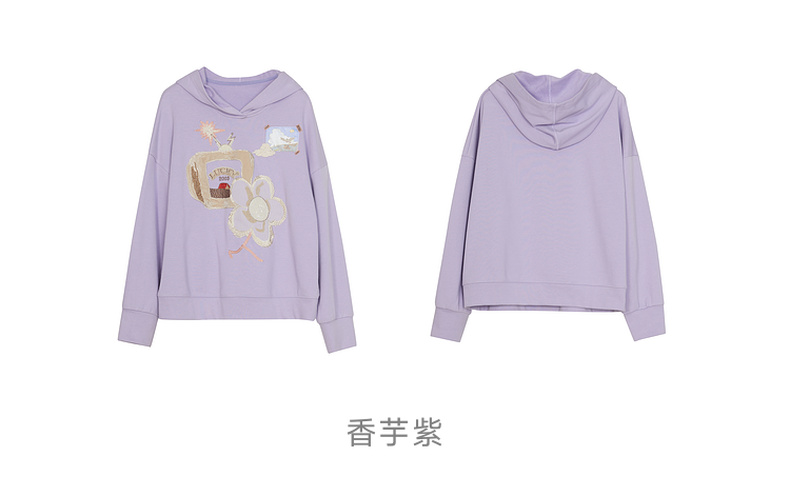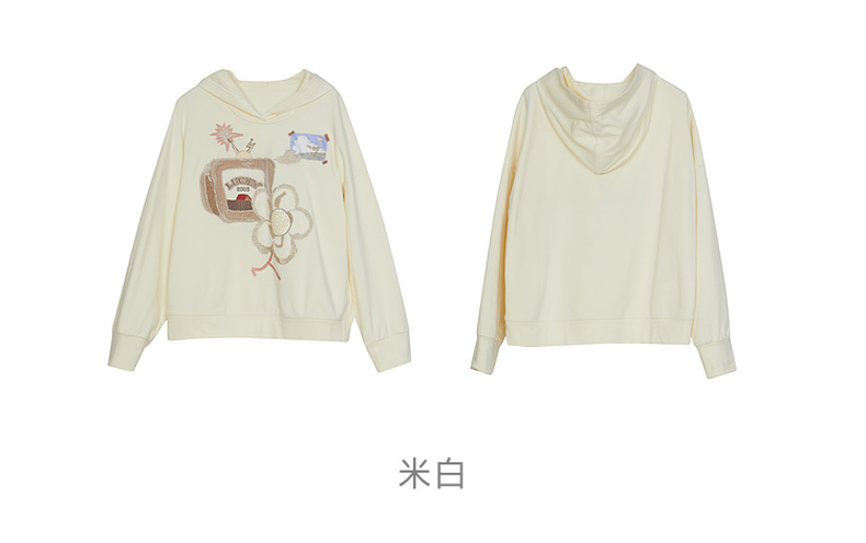 谜底连帽卫衣女2024春季新款学院风绣花宽松中长款上衣241MV0053