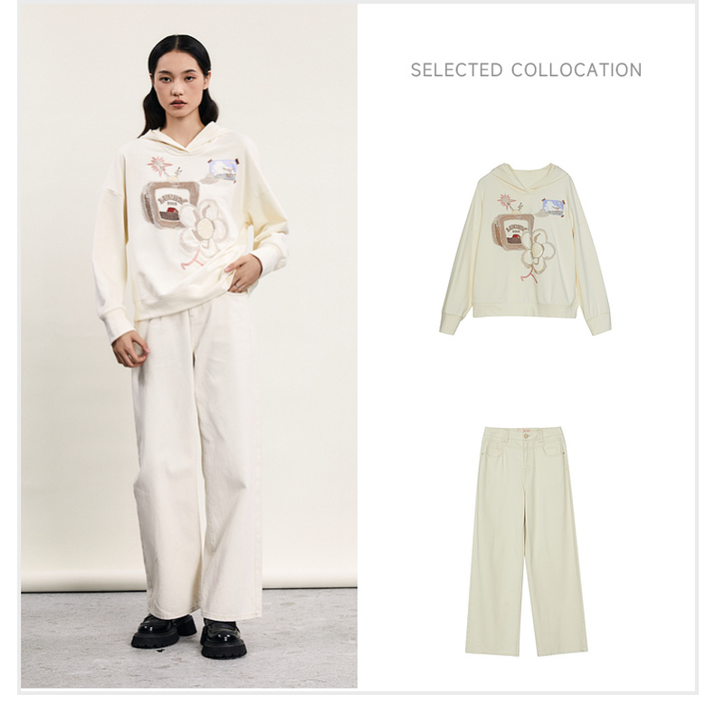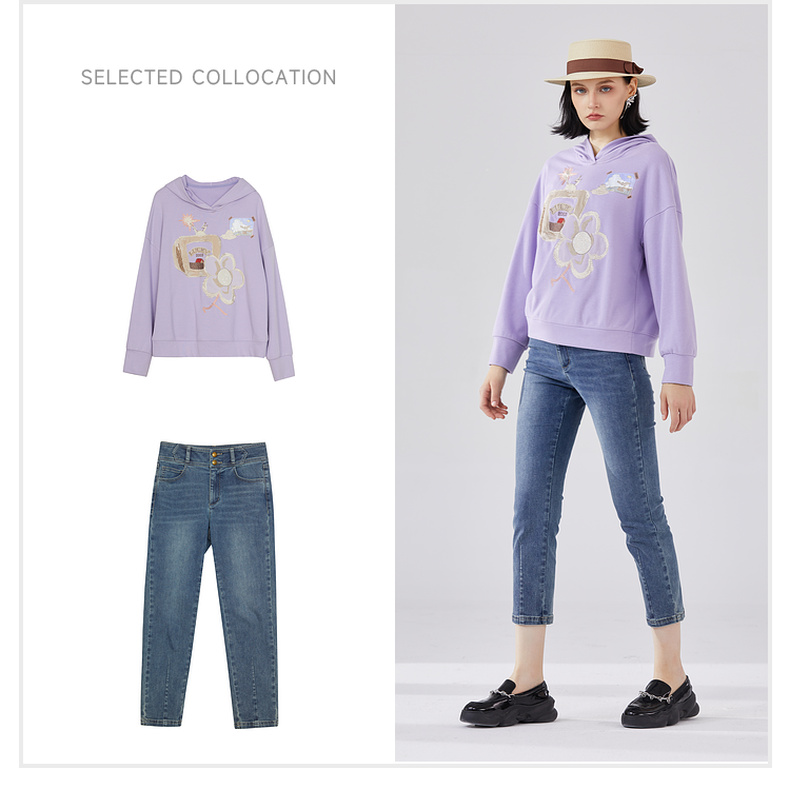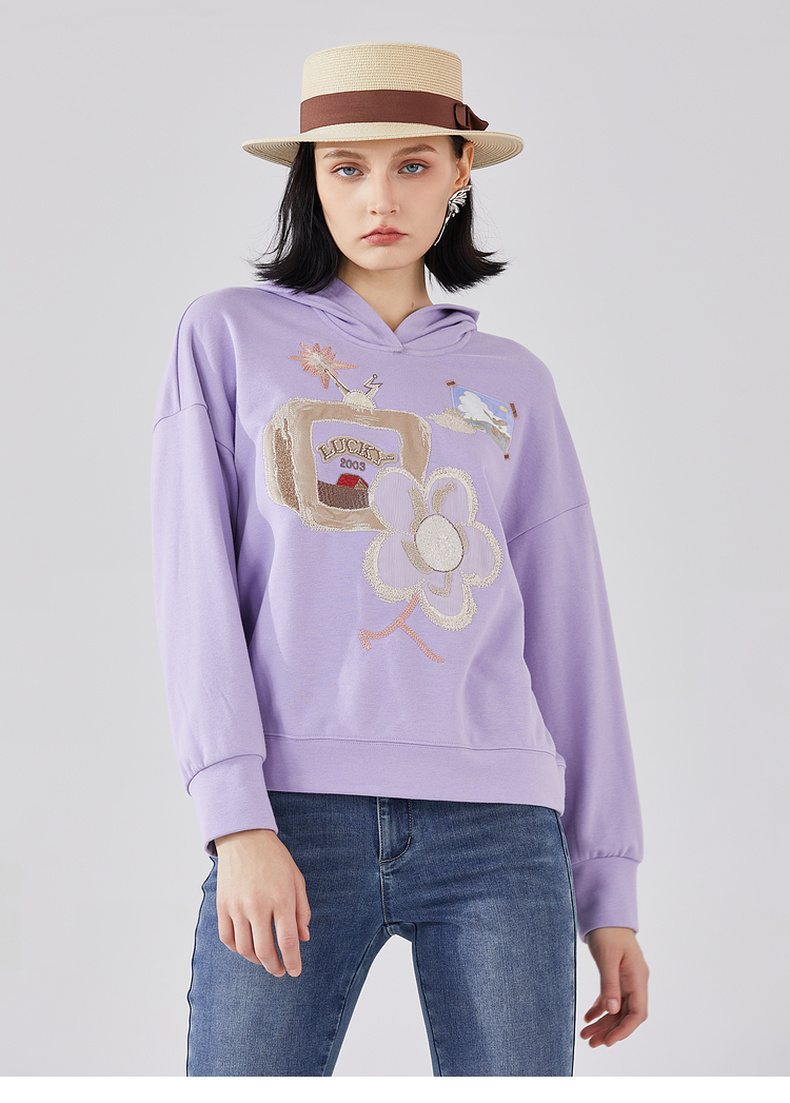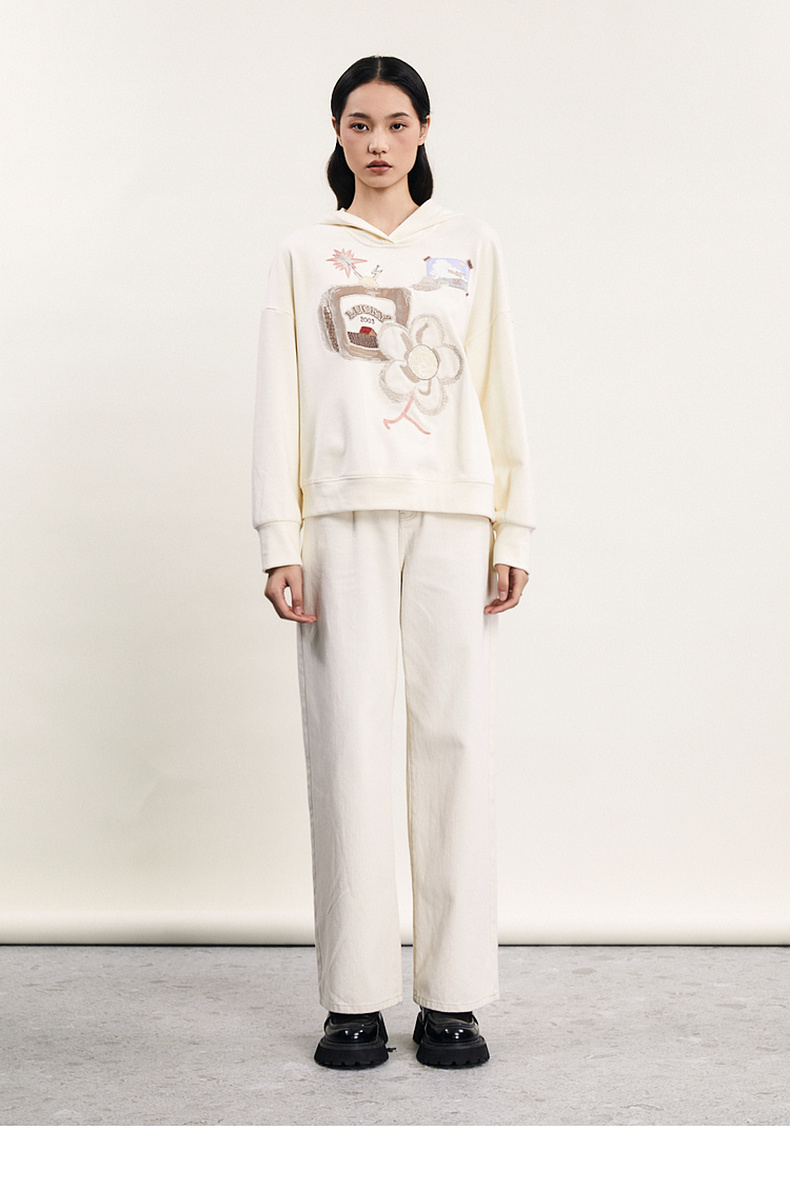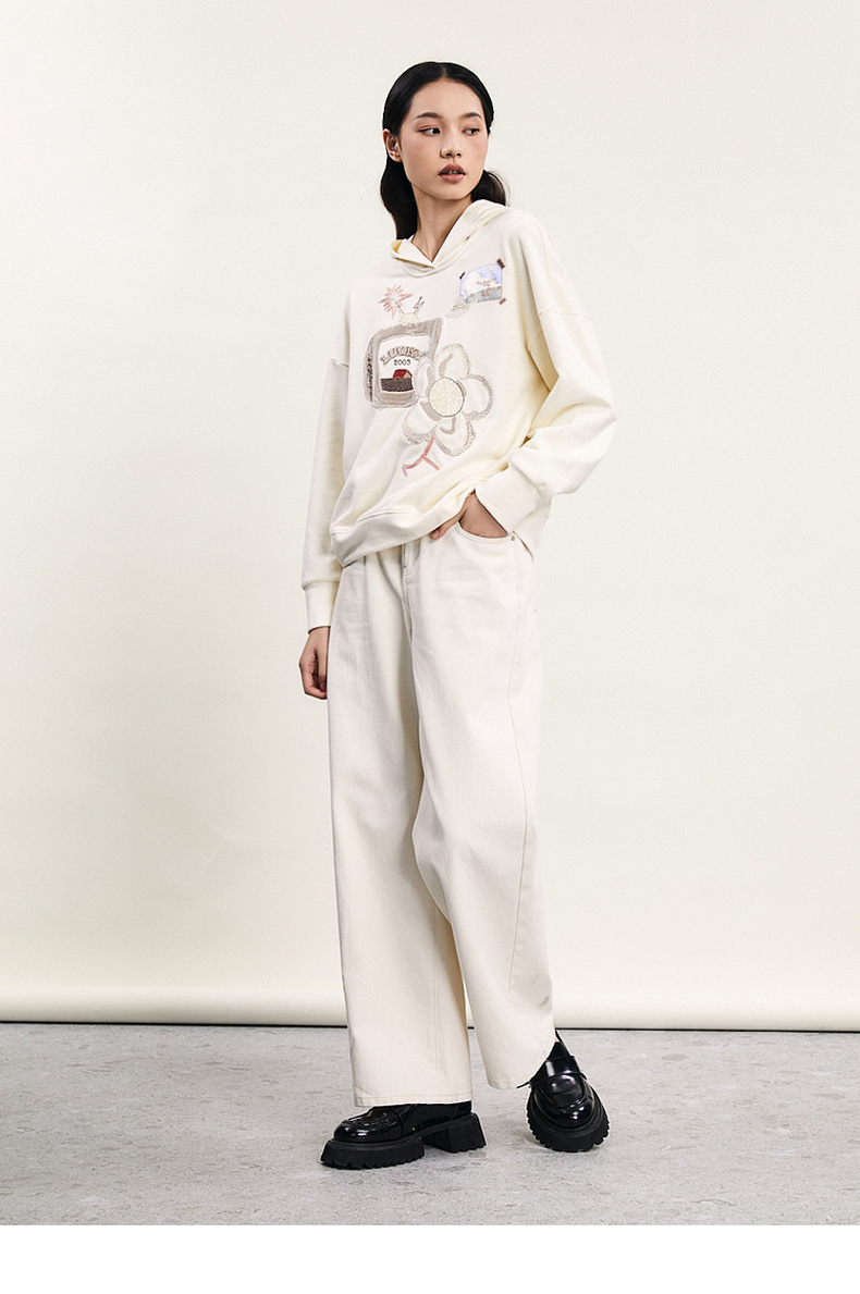 谜底连帽卫衣女2024春季新款学院风绣花宽松中长款上衣241MV0053
