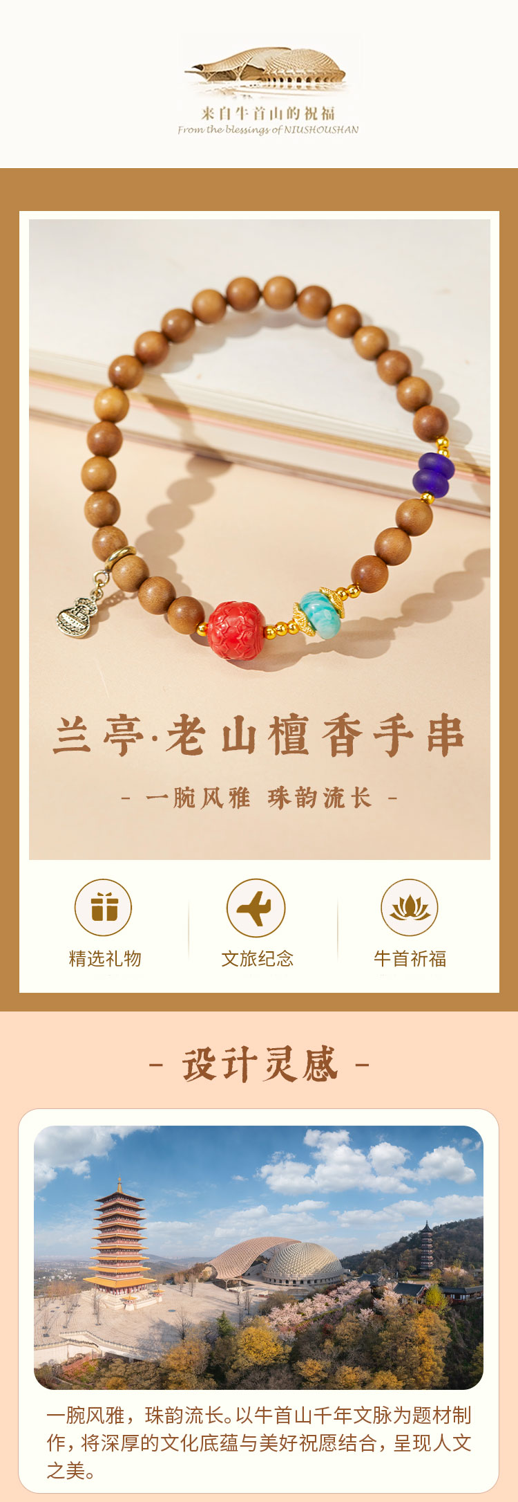 牛首山文创礼品兰亭·老山檀香单圈手串送闺蜜朋友手饰节日礼物