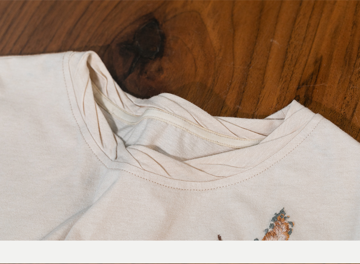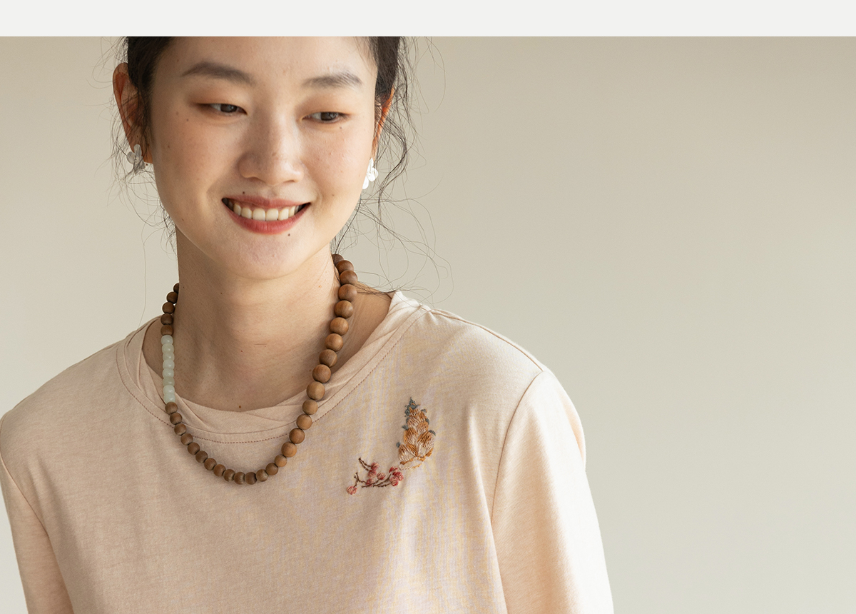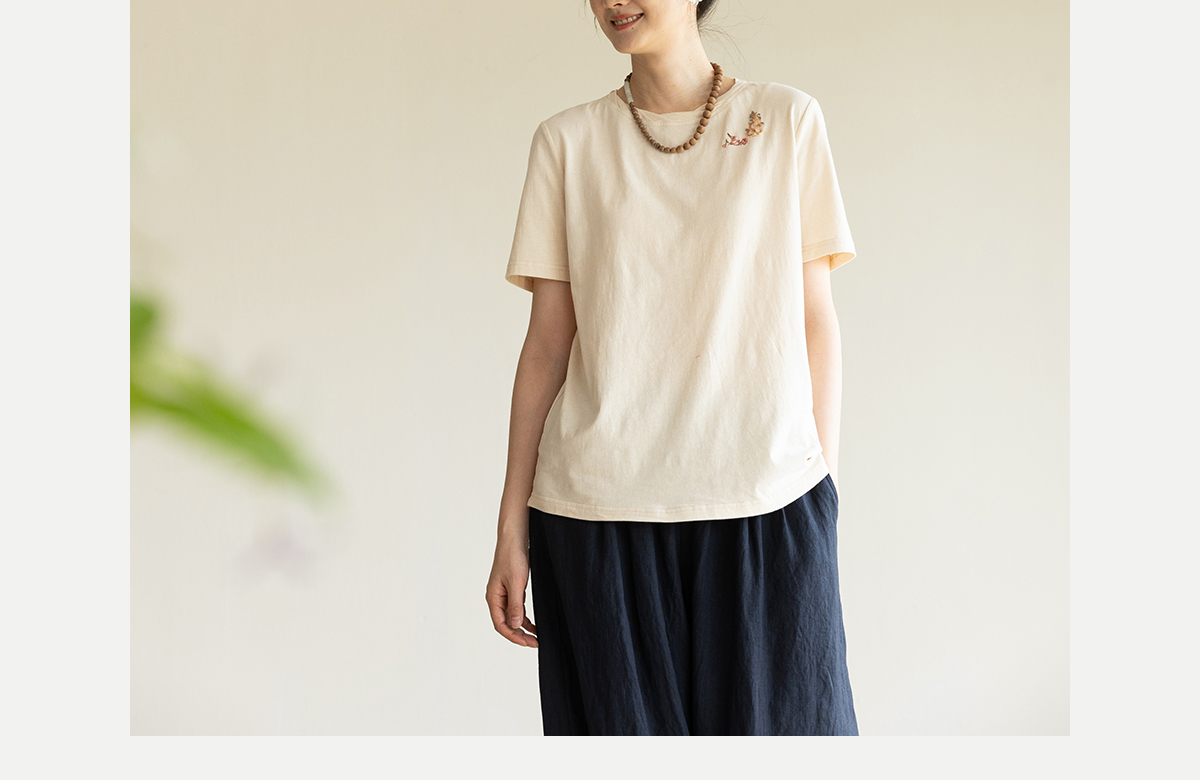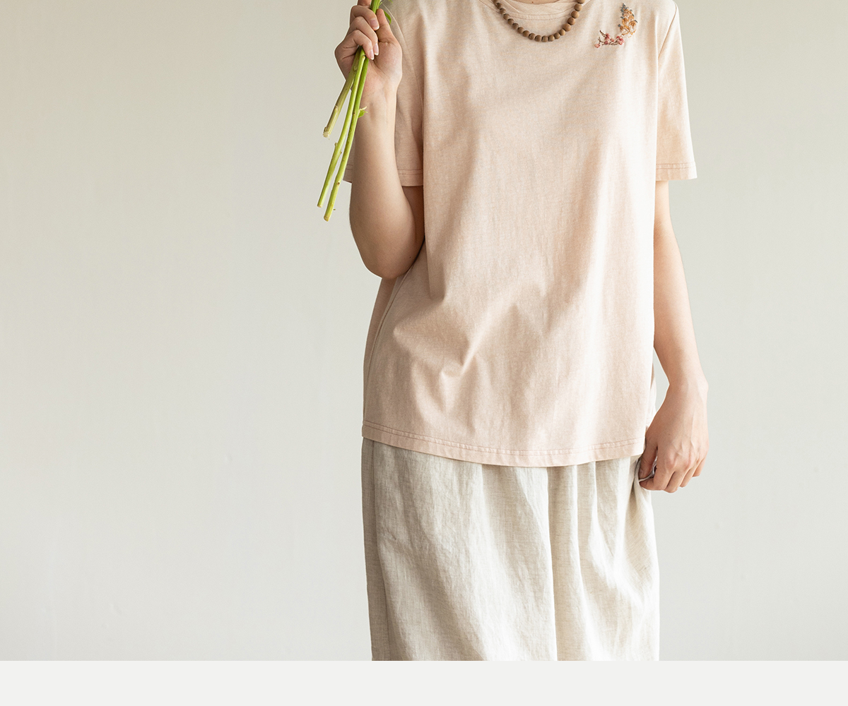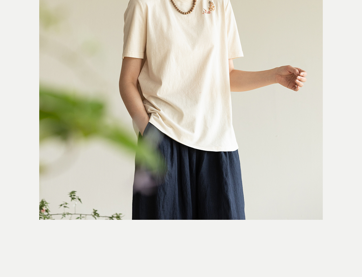 牧衣游原创手工刺绣32支纯棉T恤女夏简约圆领文艺百搭短袖 三千界