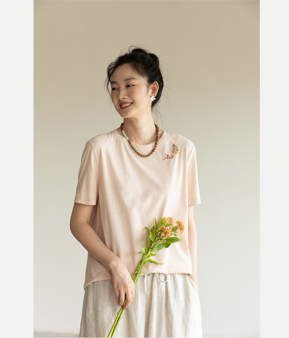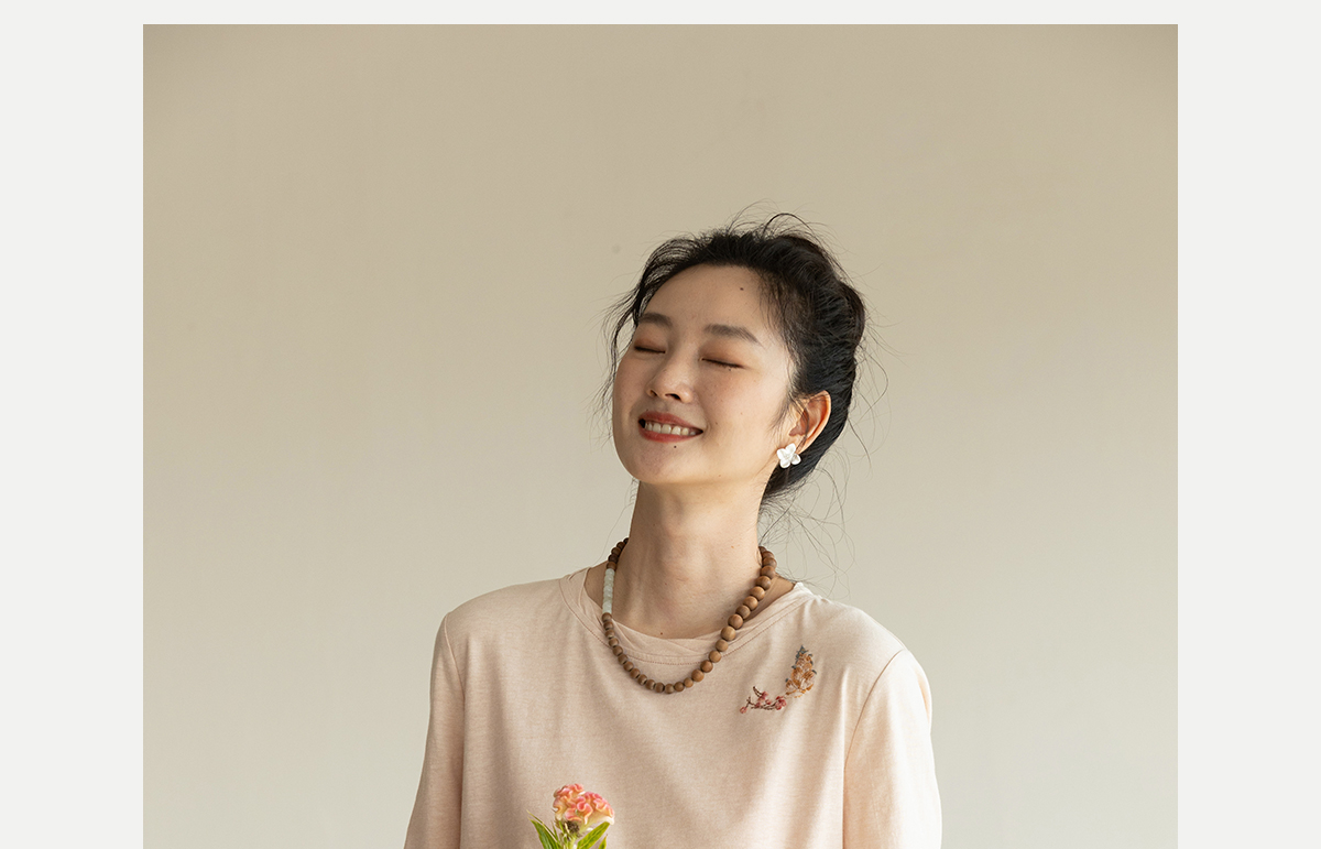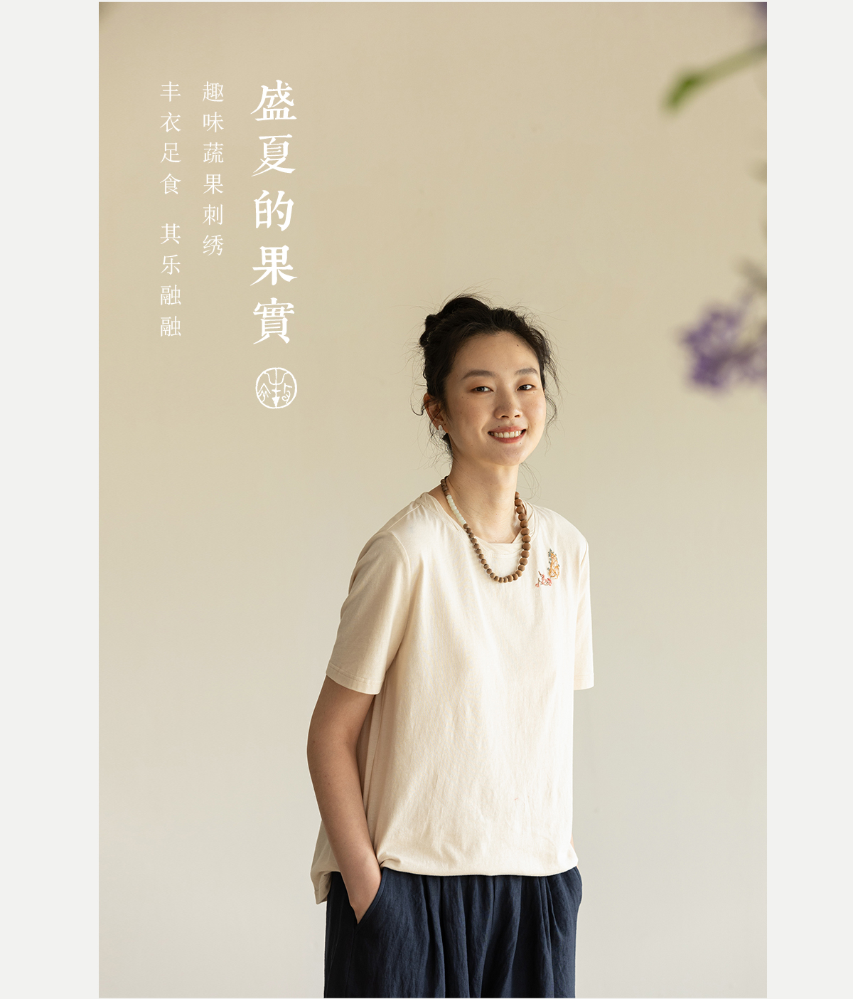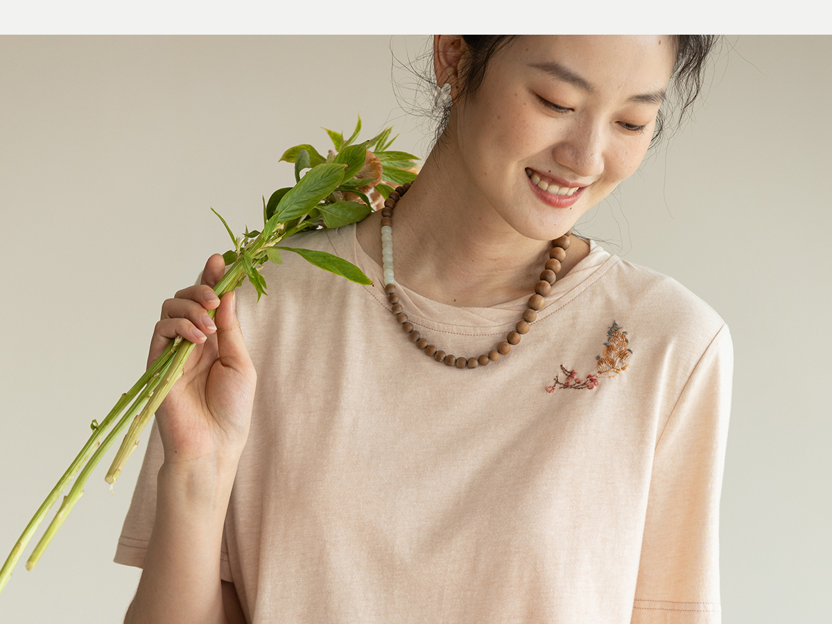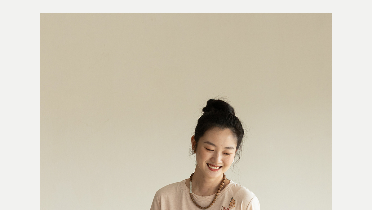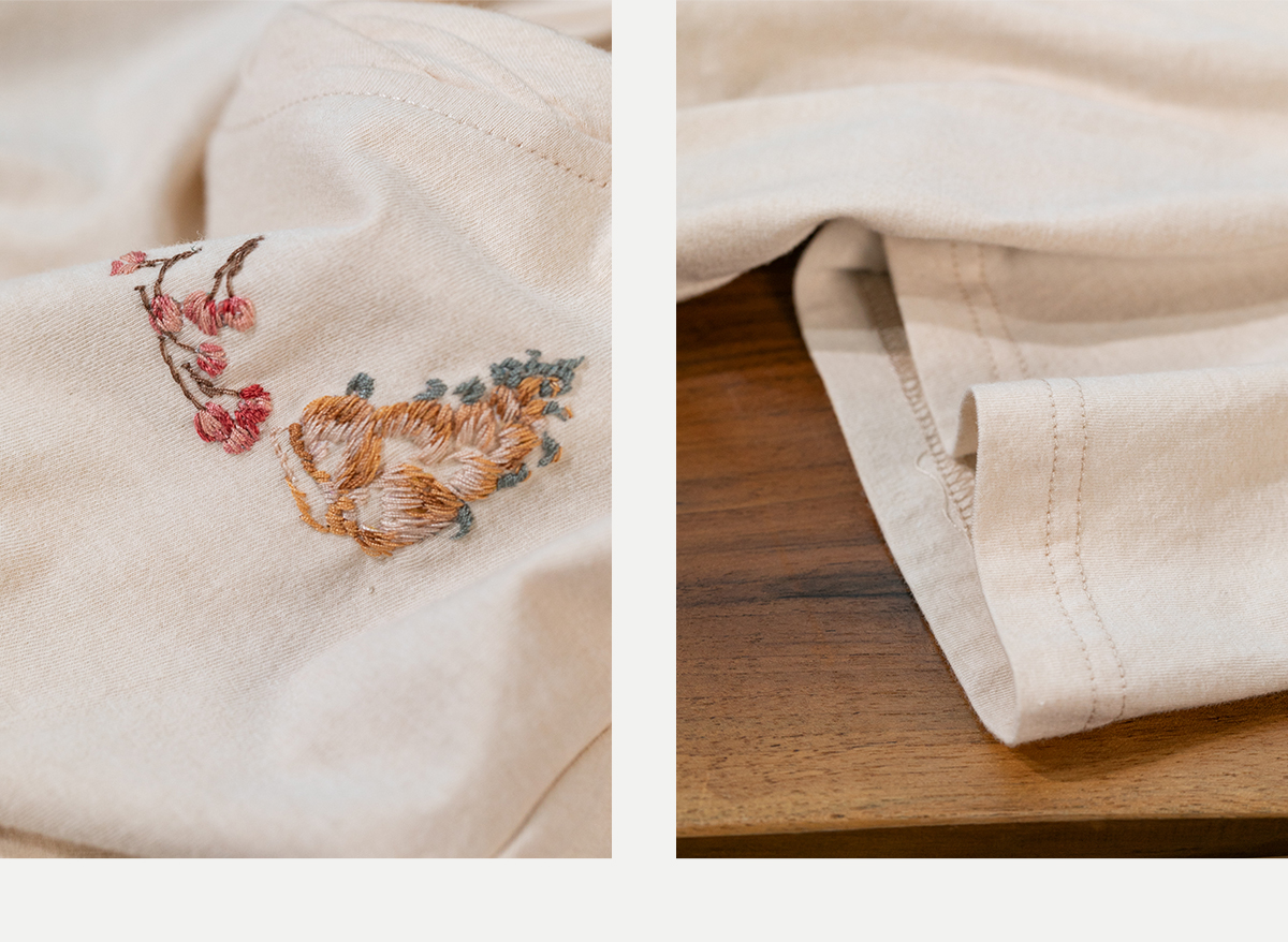 牧衣游原创手工刺绣32支纯棉T恤女夏简约圆领文艺百搭短袖 三千界