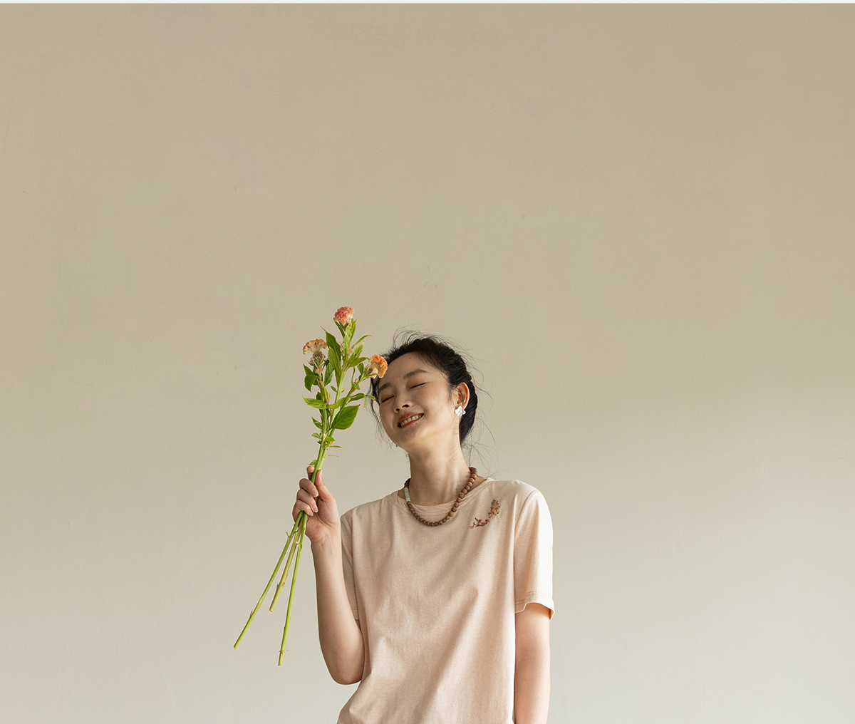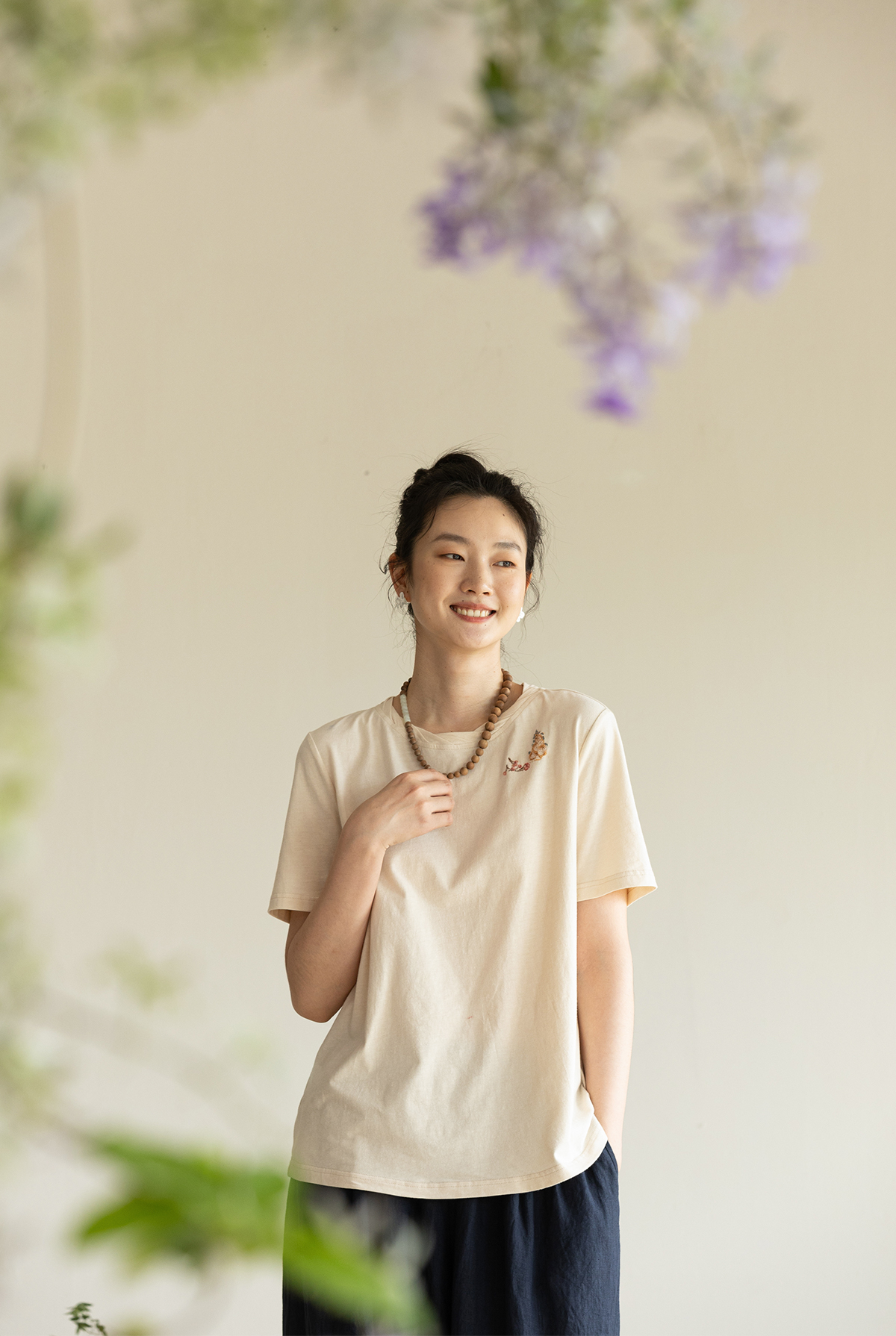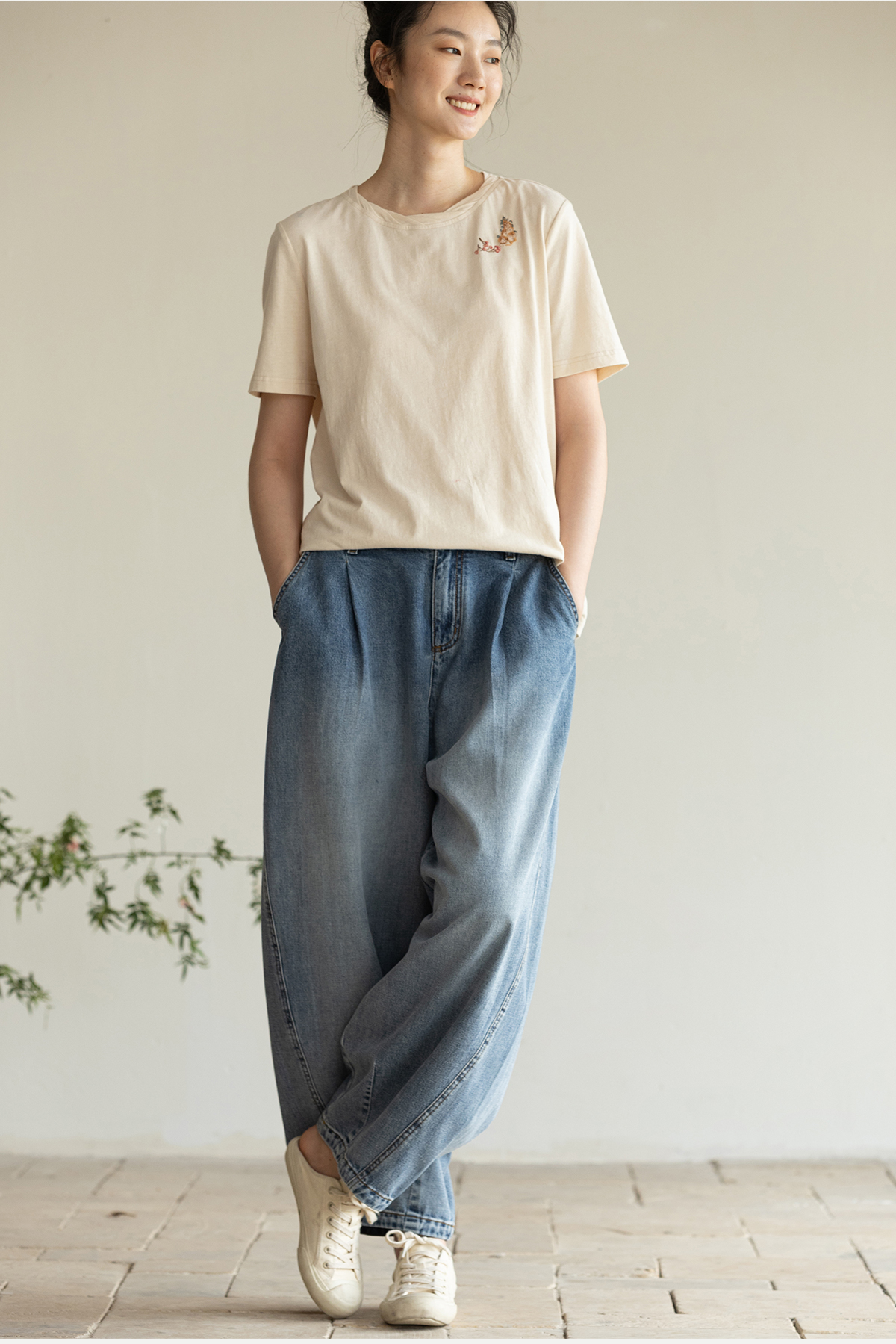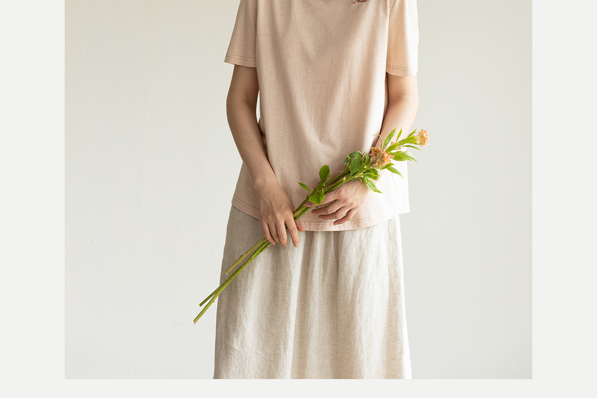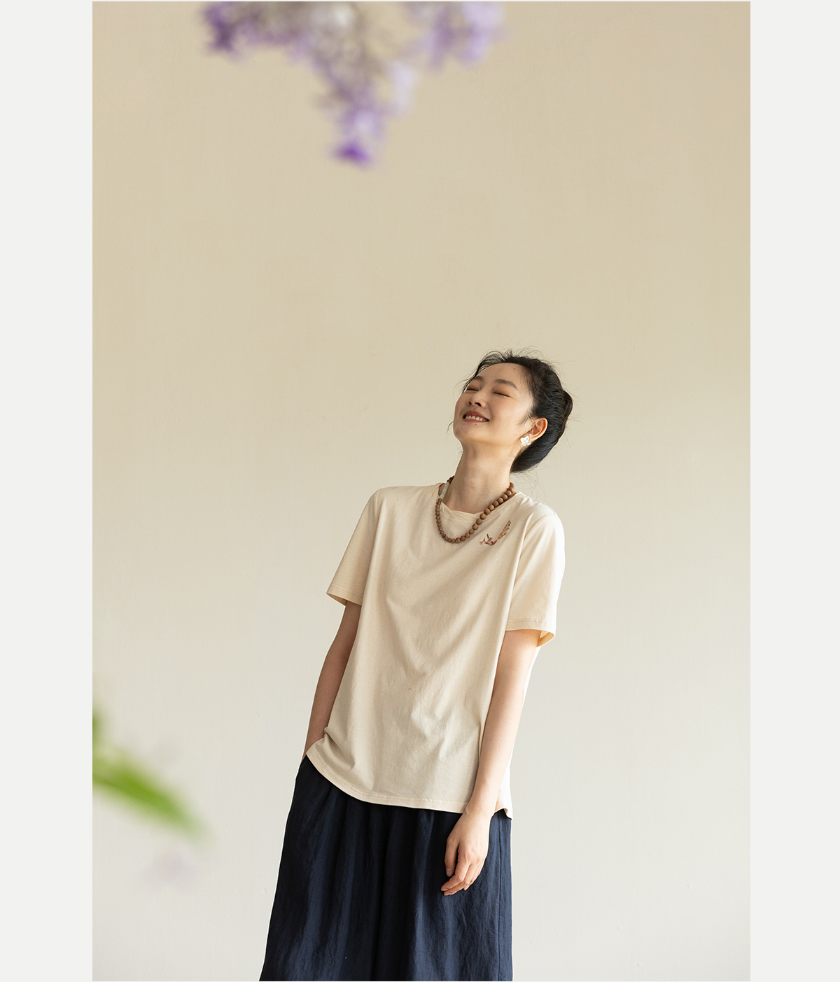 牧衣游原创手工刺绣32支纯棉T恤女夏简约圆领文艺百搭短袖 三千界