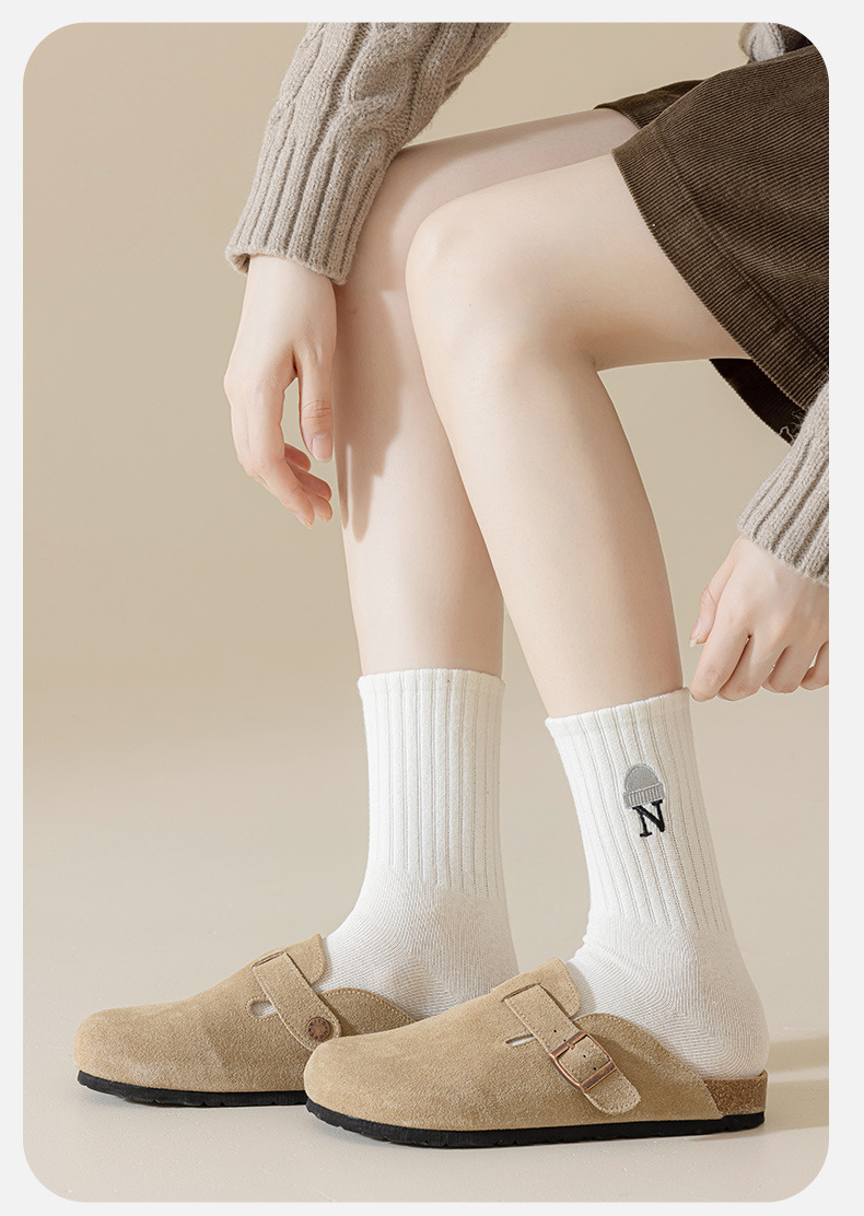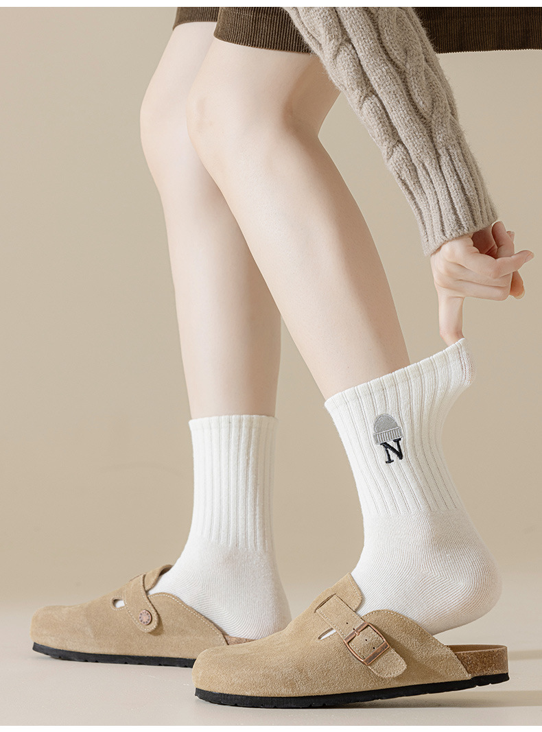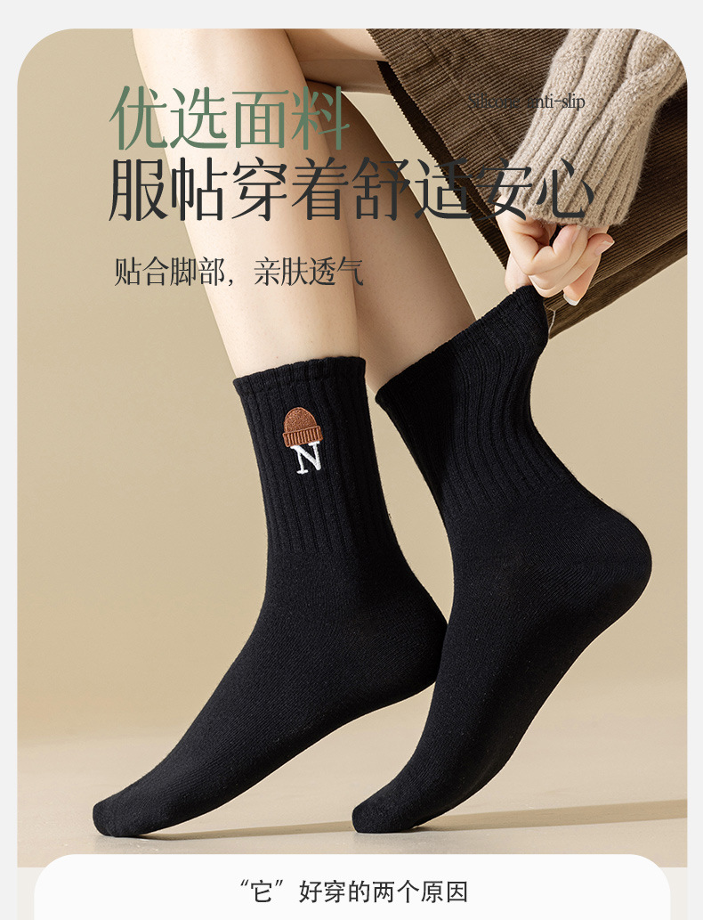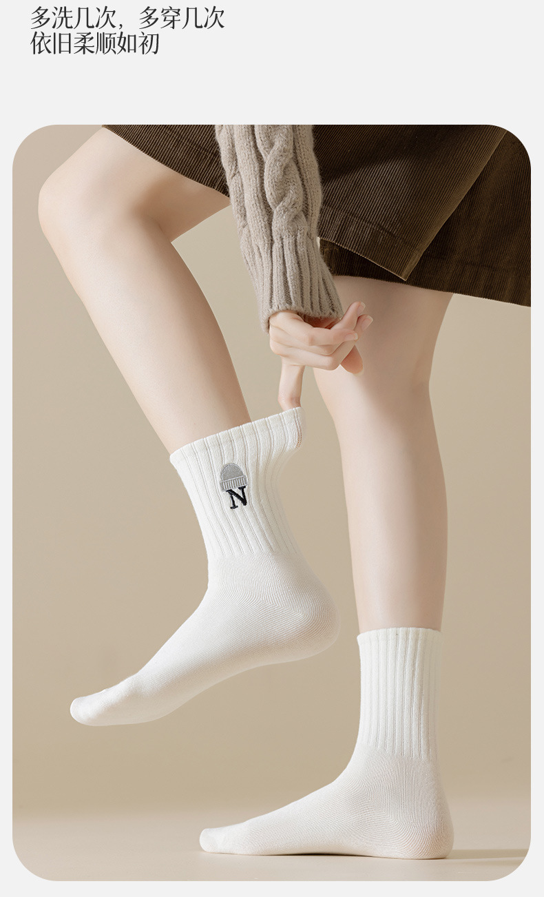 7双袜子女韩版中筒袜春秋高筒纯色棉袜日系潮流字母堆堆袜秋冬长筒袜