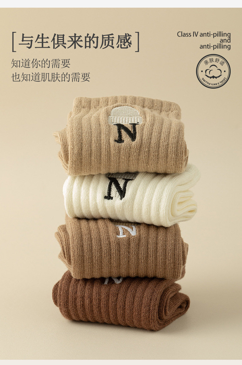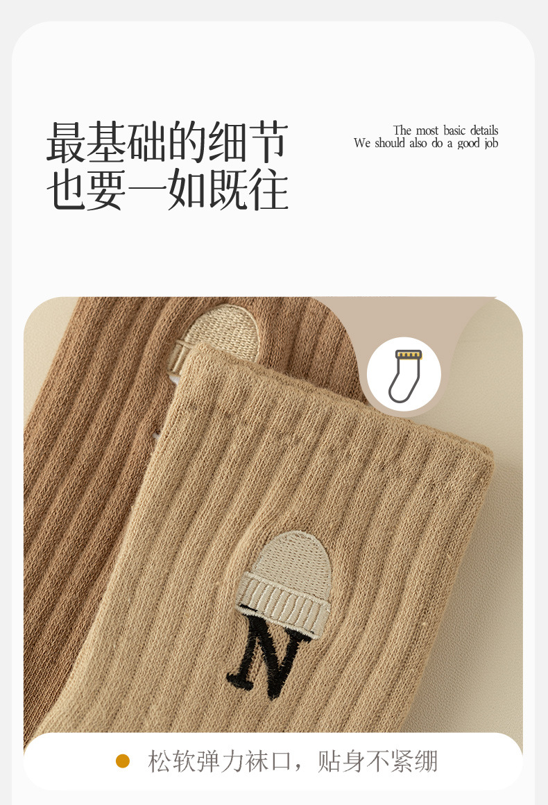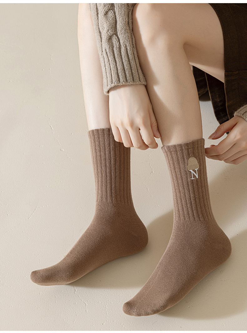 7双袜子女韩版中筒袜春秋高筒纯色棉袜日系潮流字母堆堆袜秋冬长筒袜