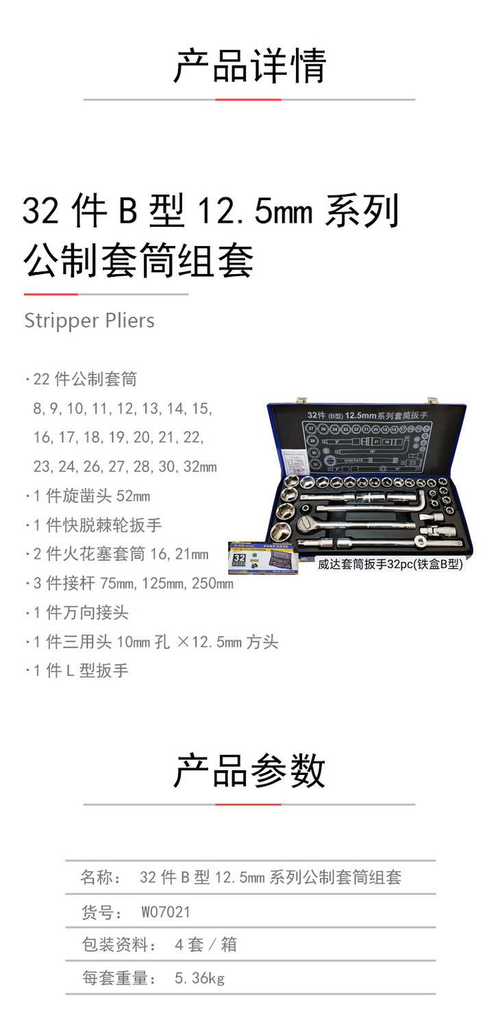 W07021威达套筒扳手32件套(铁盒B型)