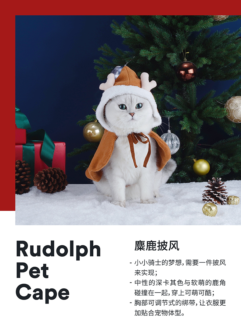 zeze圣诞猫咪衣服魔法麋鹿披风英短无毛猫冬装保暖宠物衣服秋冬可爱