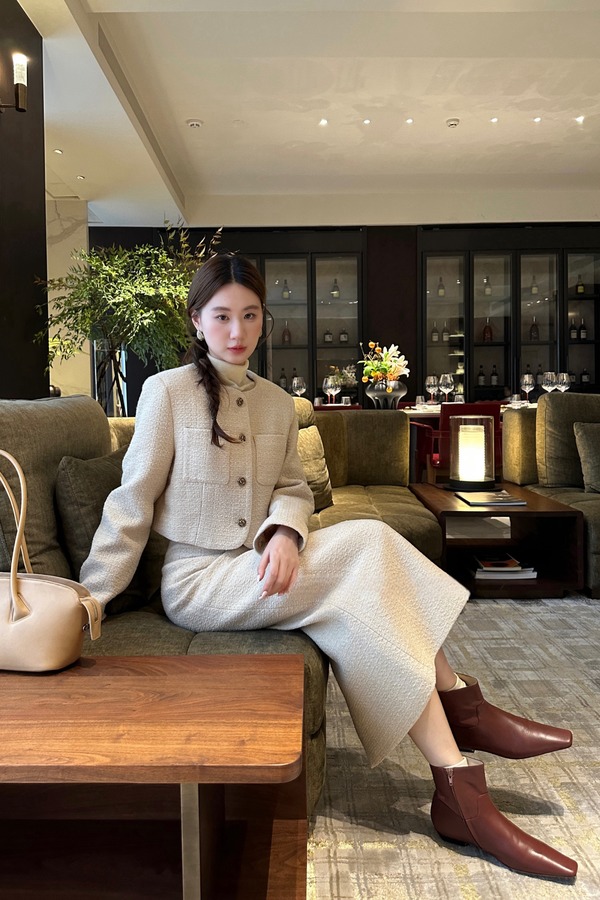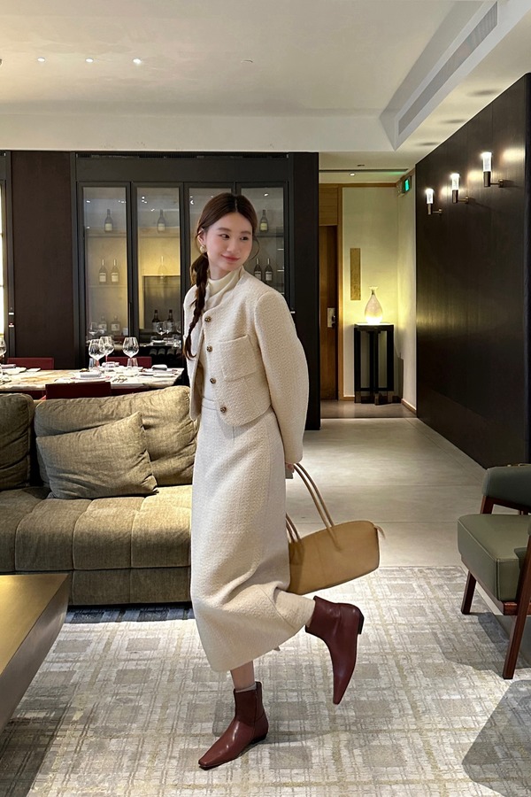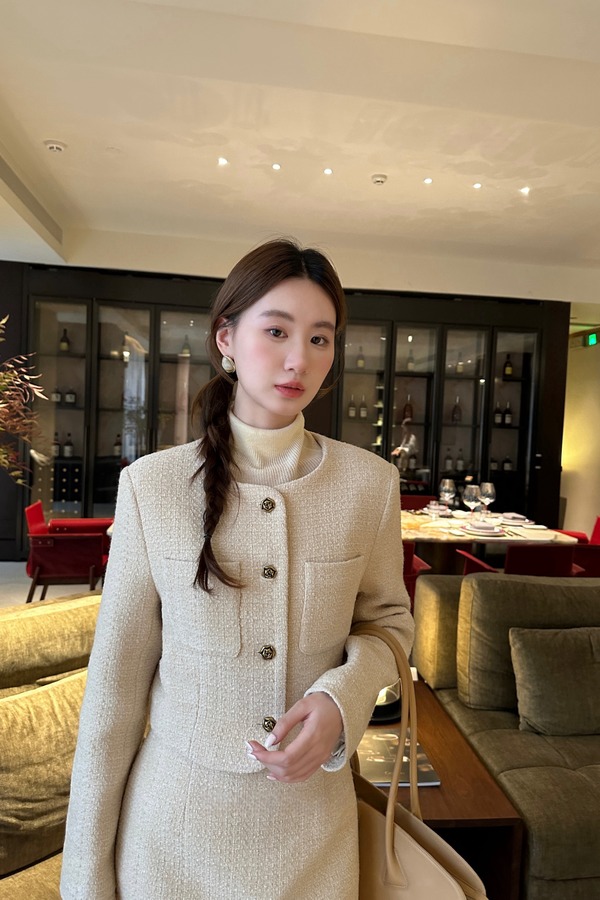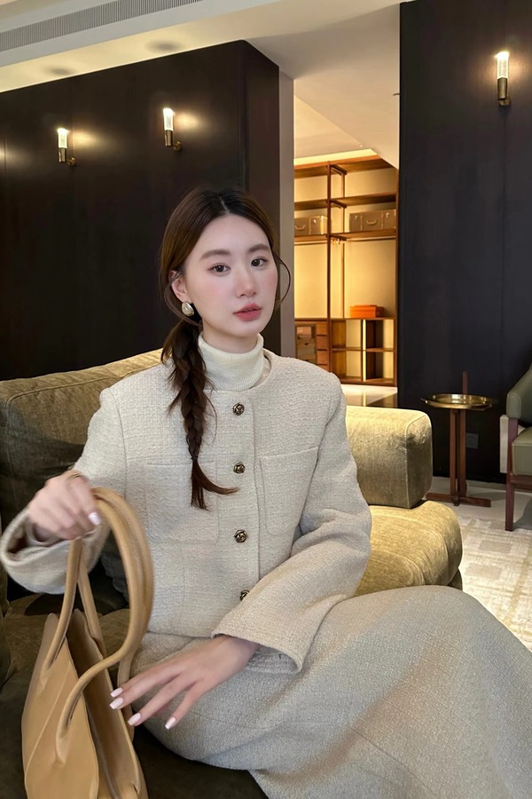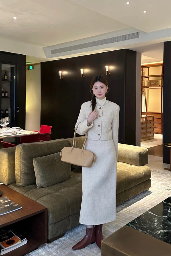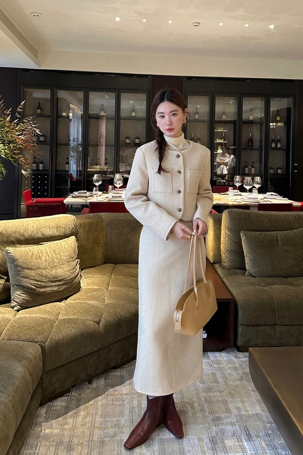 Le Malene 米白色知性优雅小香风外套半裙套装 19538