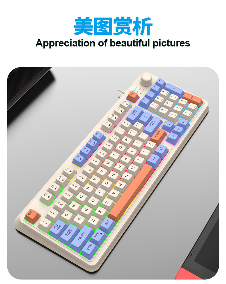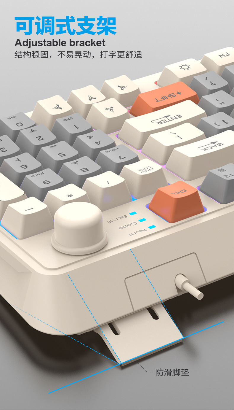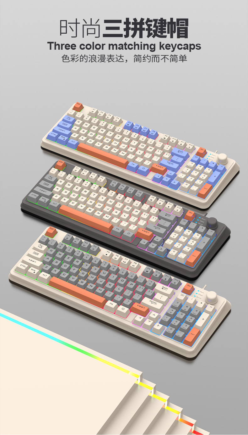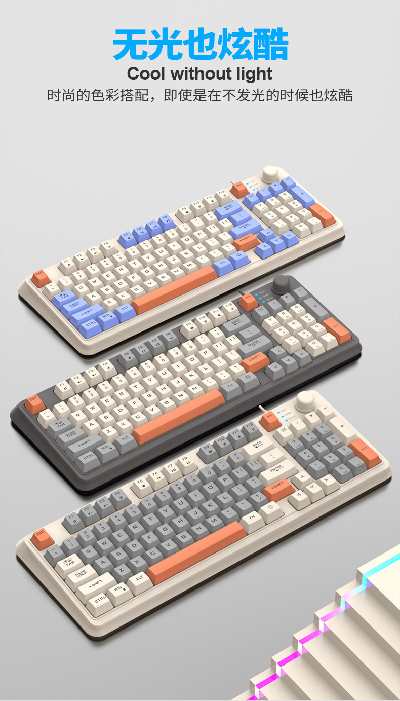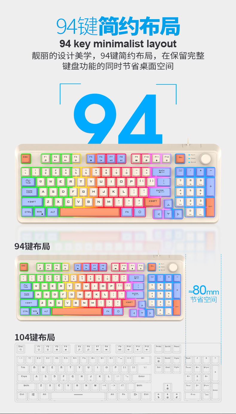 【94键简约质感!时尚三拼键盘】K82炫银狐有线薄膜旋钮键盘鼠标,三拼色发光机械手感台式电脑游戏,靓丽的设计美学,94键简约布局,在保留完整 键盘功能的同时节省桌面空间!