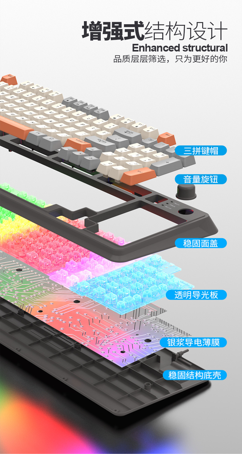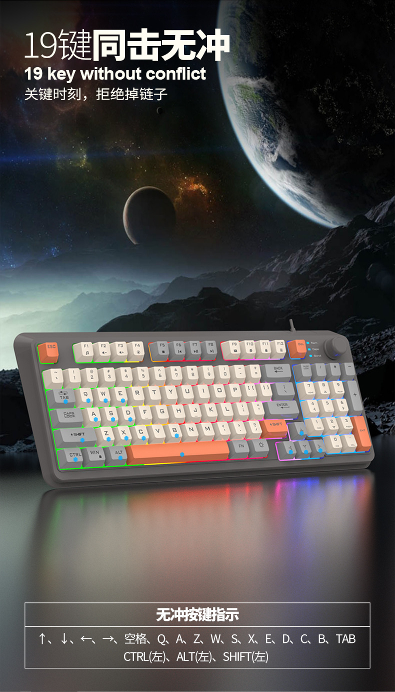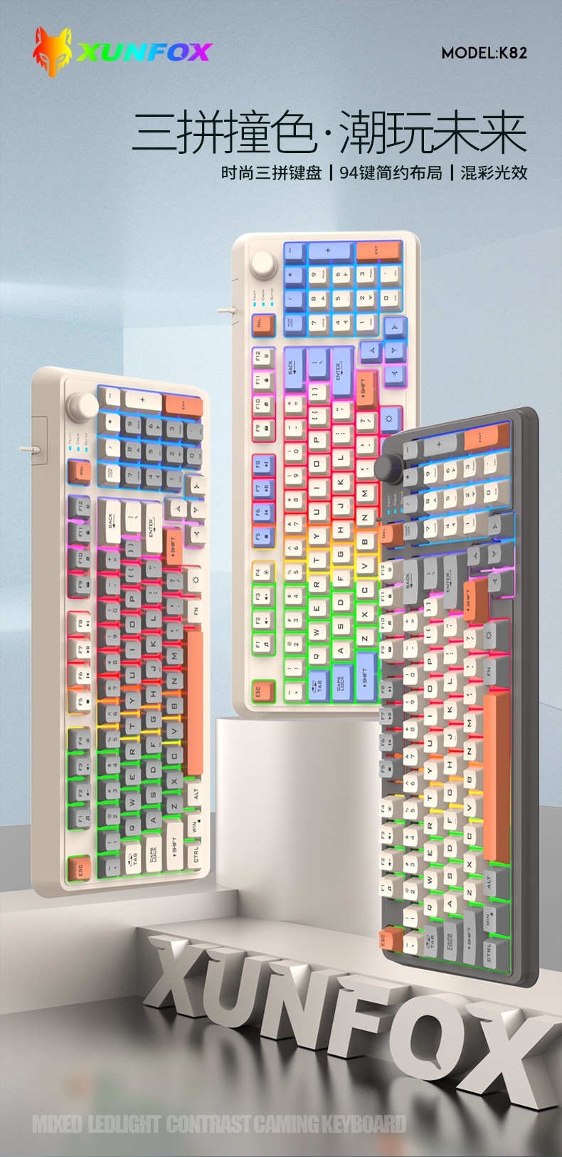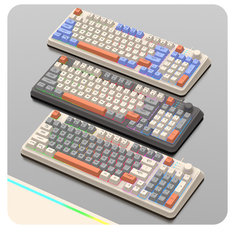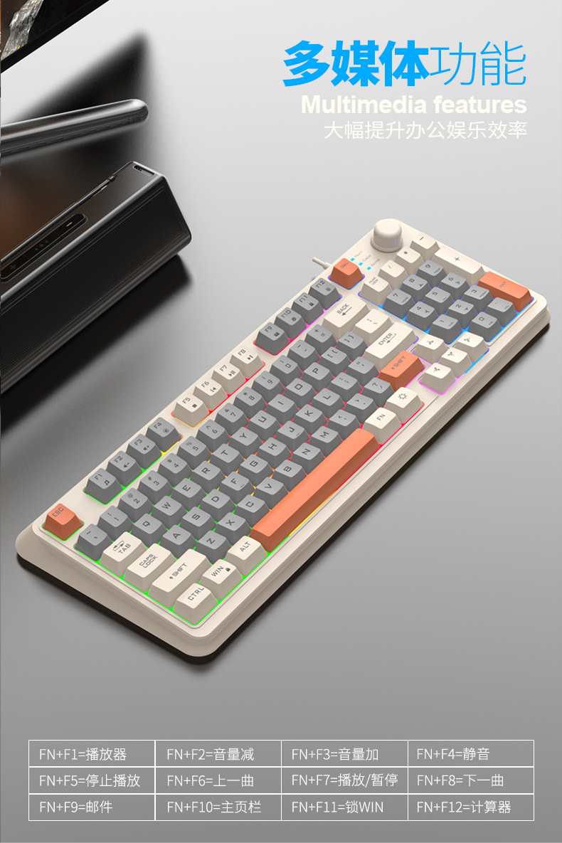 【94键简约质感!时尚三拼键盘】K82炫银狐有线薄膜旋钮键盘鼠标,三拼色发光机械手感台式电脑游戏,靓丽的设计美学,94键简约布局,在保留完整 键盘功能的同时节省桌面空间!