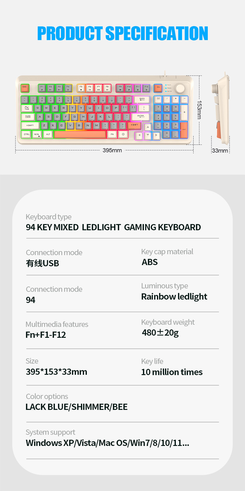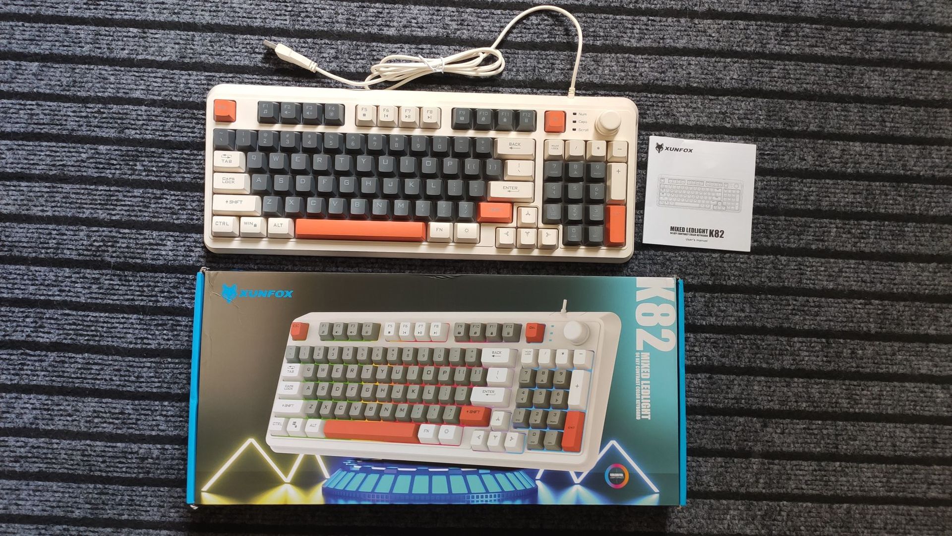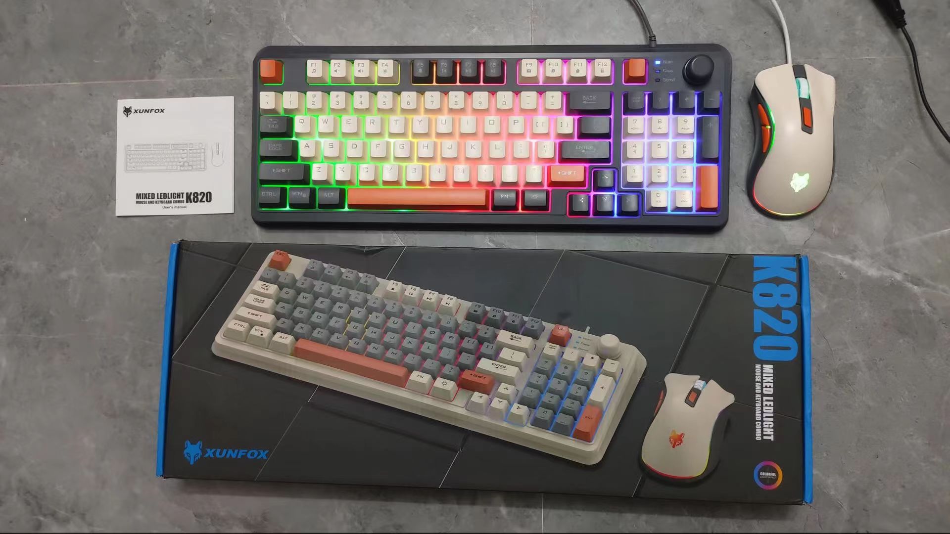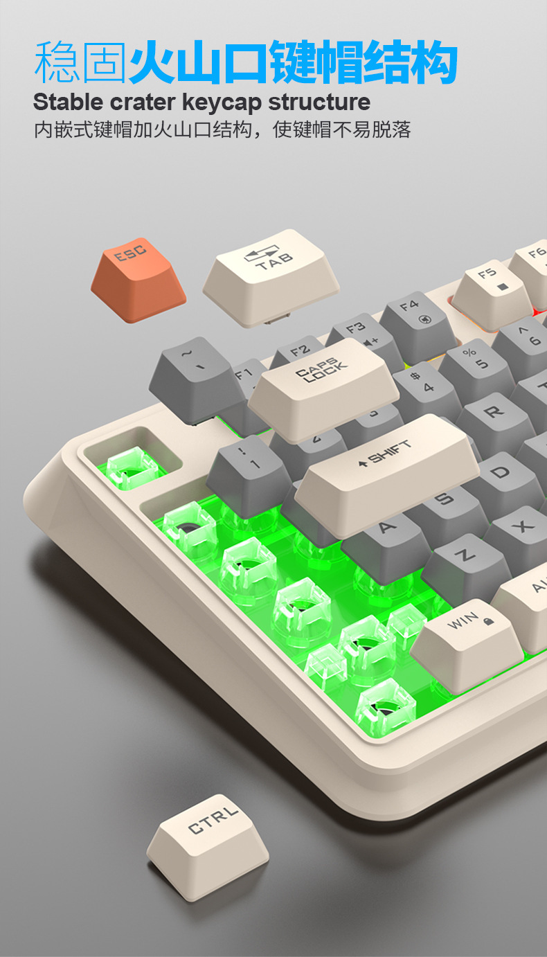 【94键简约质感!时尚三拼键盘】K82炫银狐有线薄膜旋钮键盘鼠标,三拼色发光机械手感台式电脑游戏,靓丽的设计美学,94键简约布局,在保留完整 键盘功能的同时节省桌面空间!
