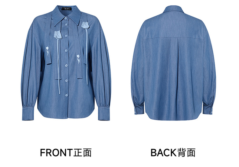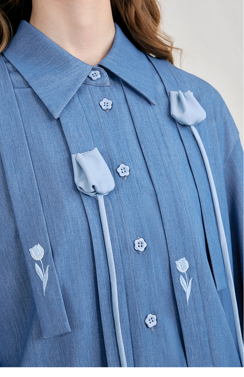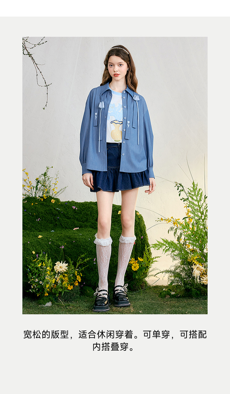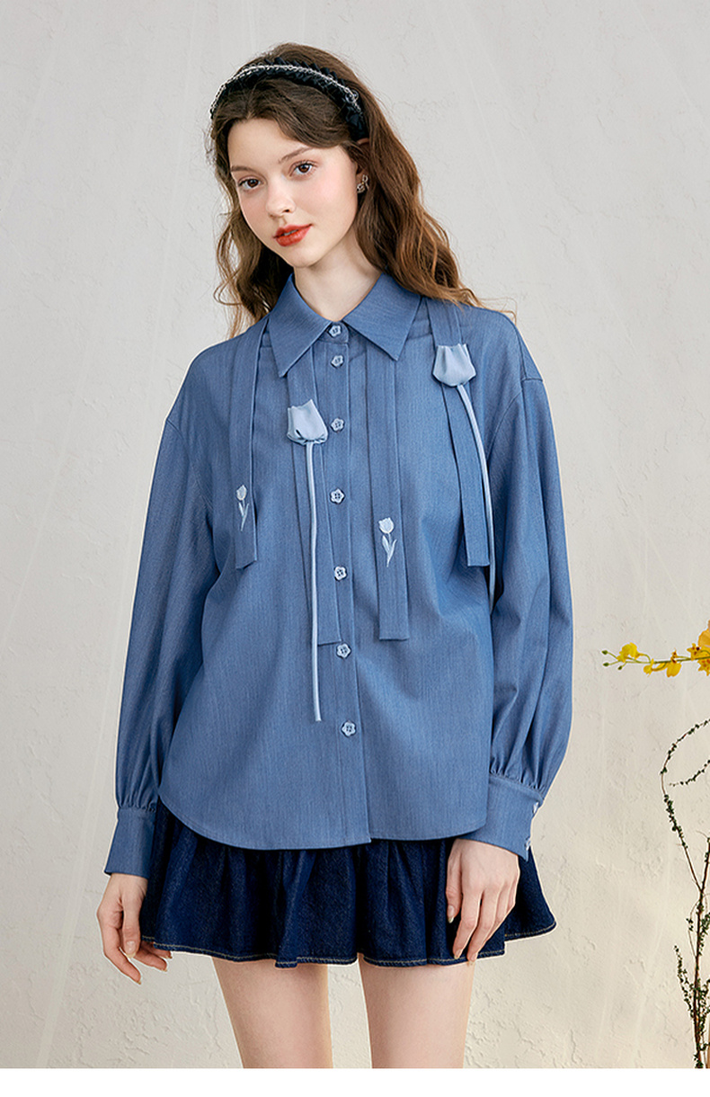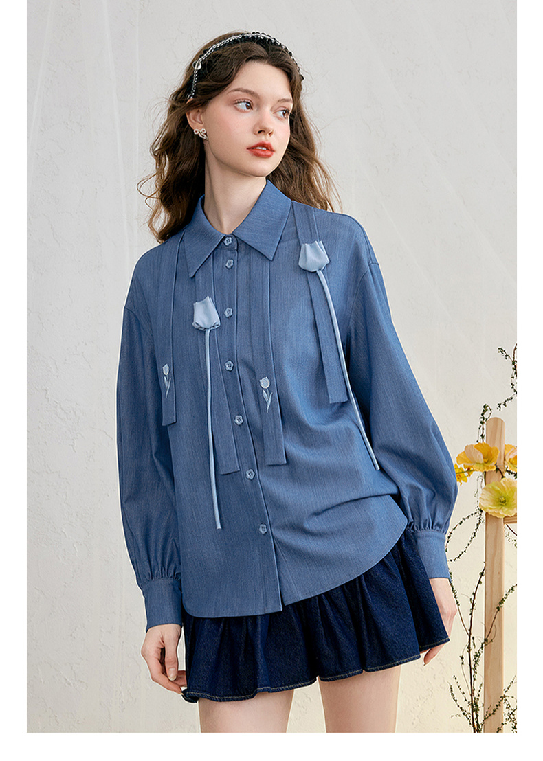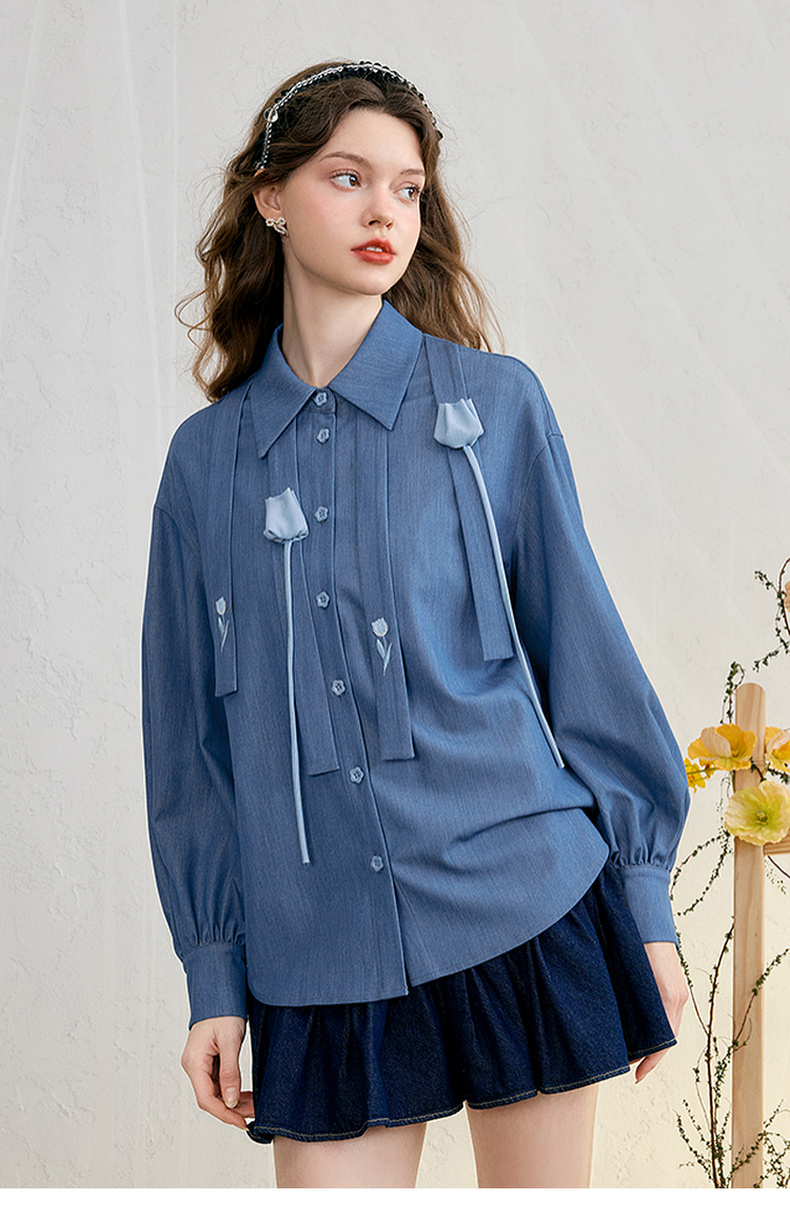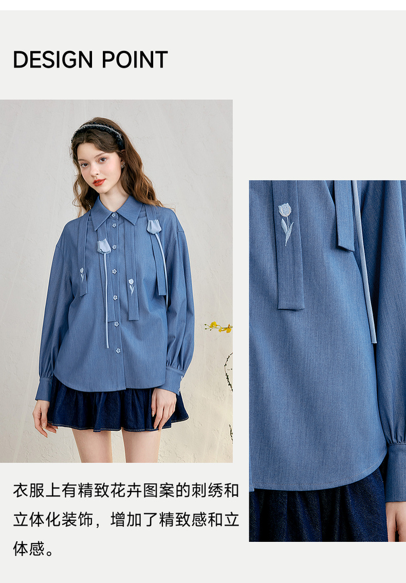 两三事 午夜梦郁 2025春季新款文艺风立体花朵绣花长袖衬衫女宽松S25CC325