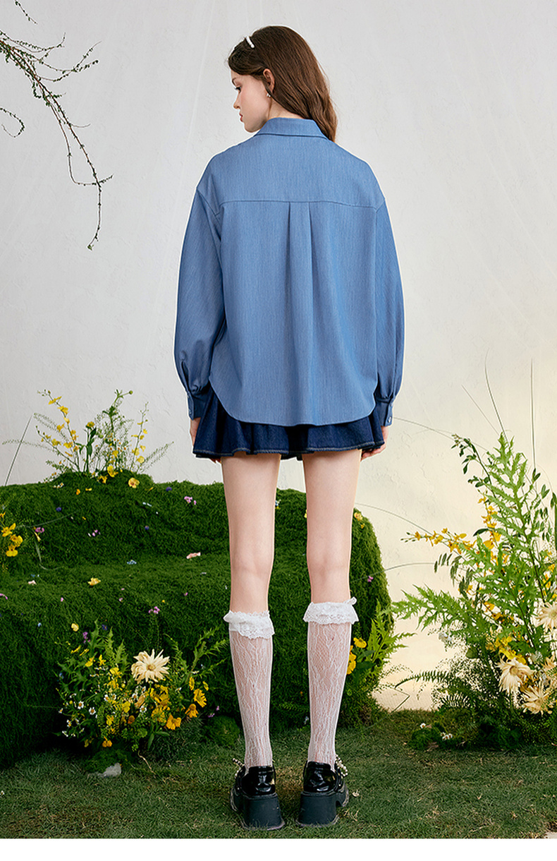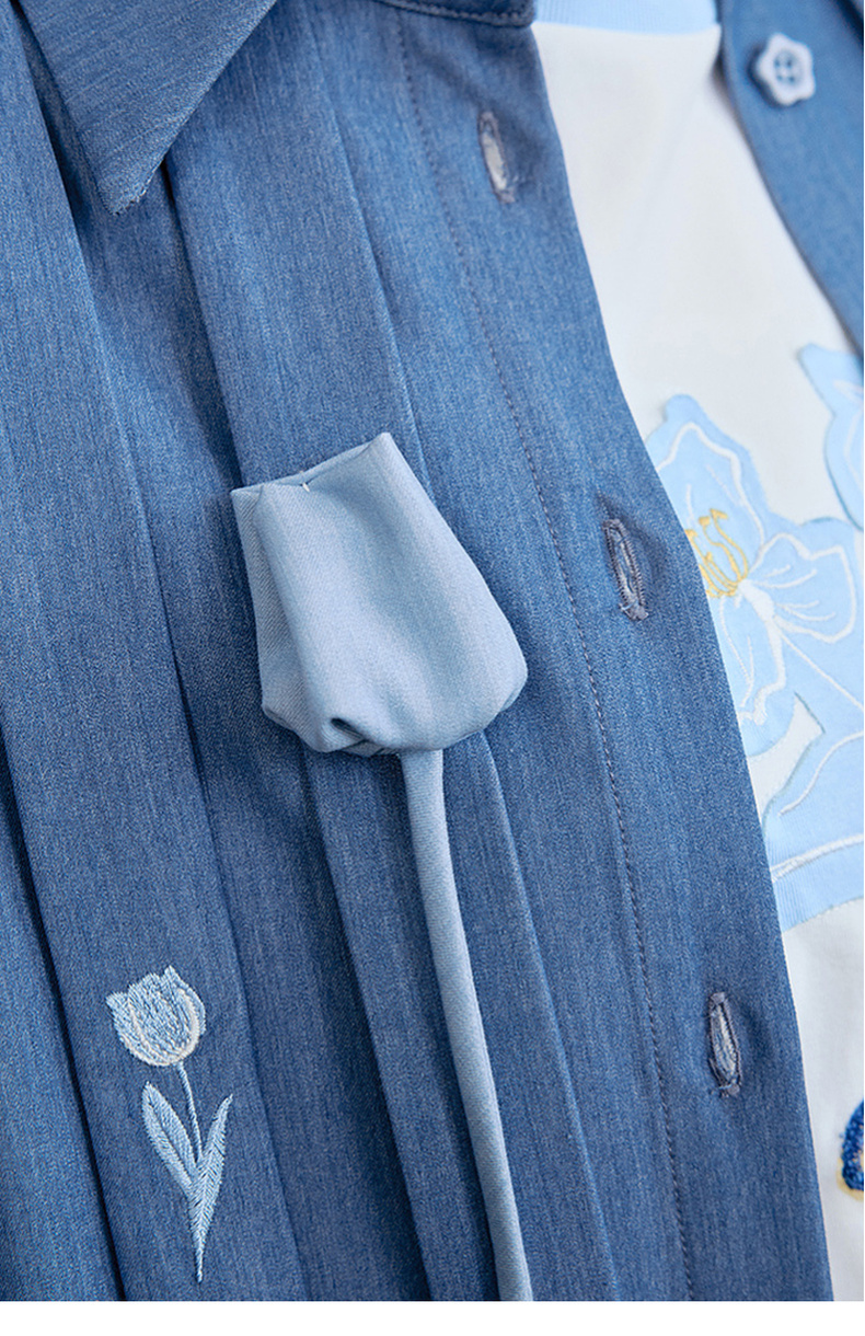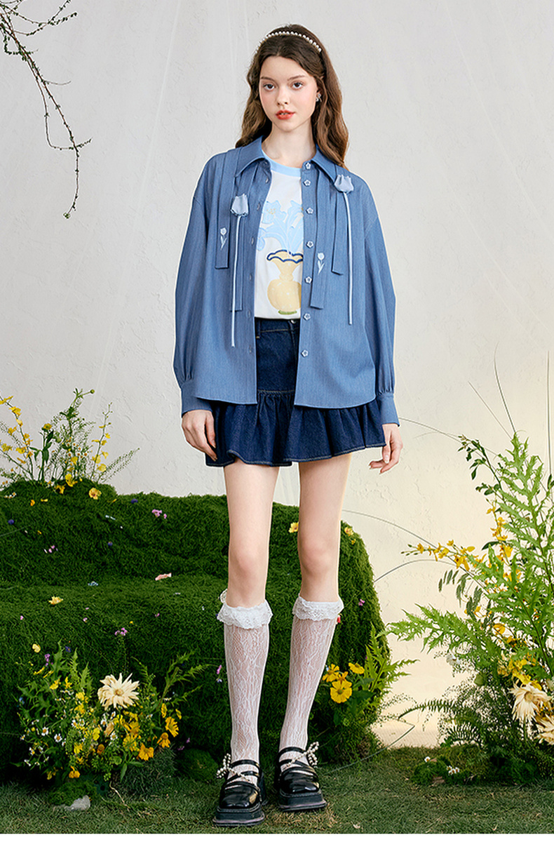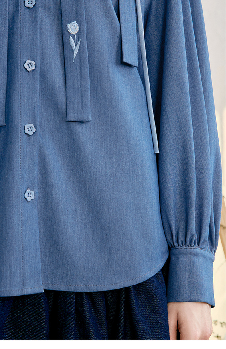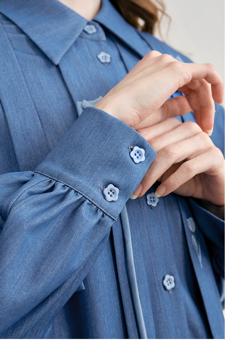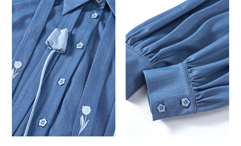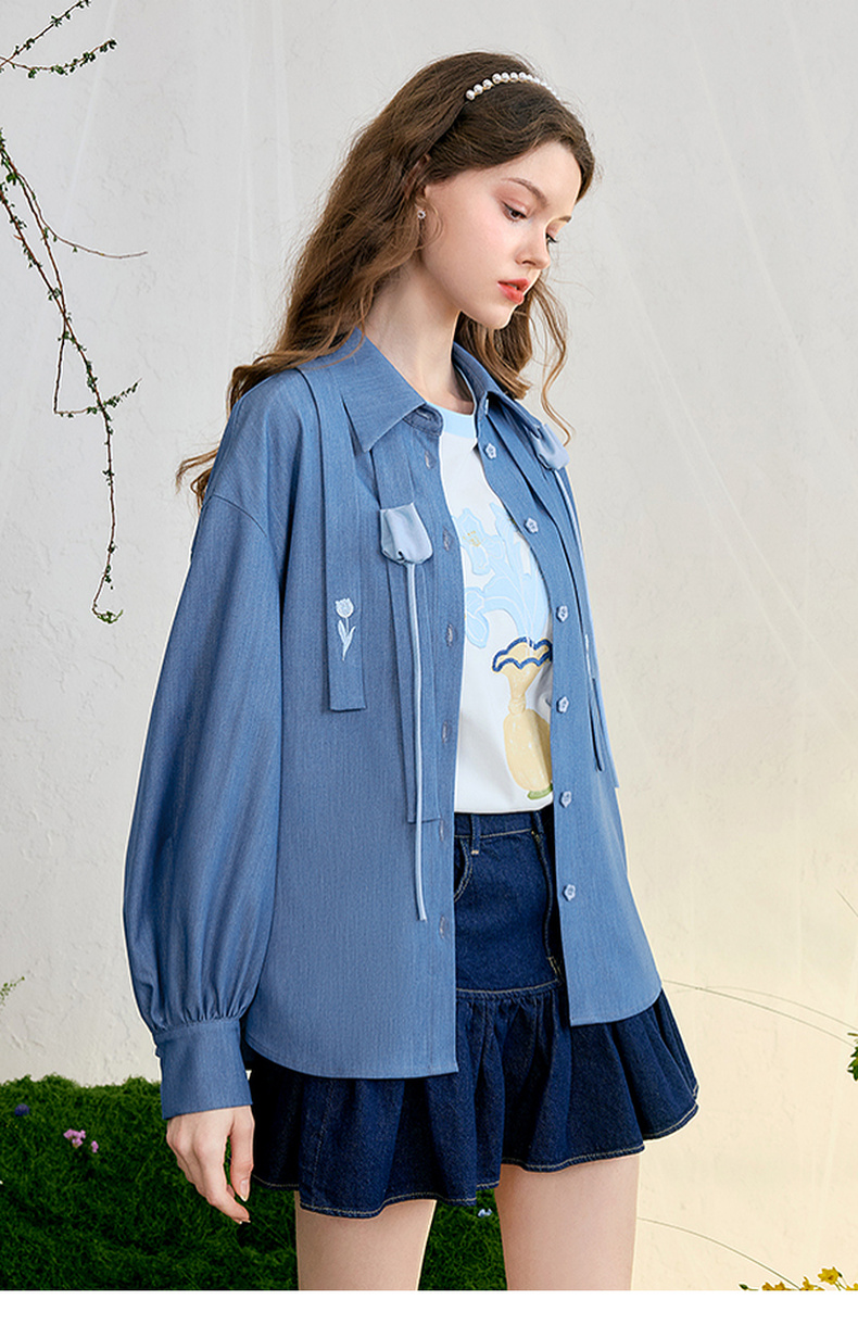 两三事 午夜梦郁 2025春季新款文艺风立体花朵绣花长袖衬衫女宽松S25CC325