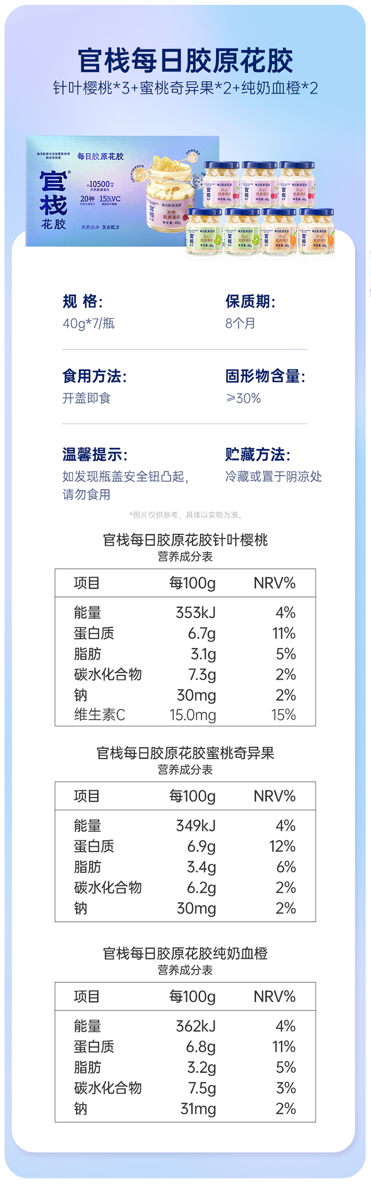 【内购专属 | 日常补充】官栈每日胶原花胶入门级滋补天然小分子胶原蛋白肽营养3口味(40g*7瓶)