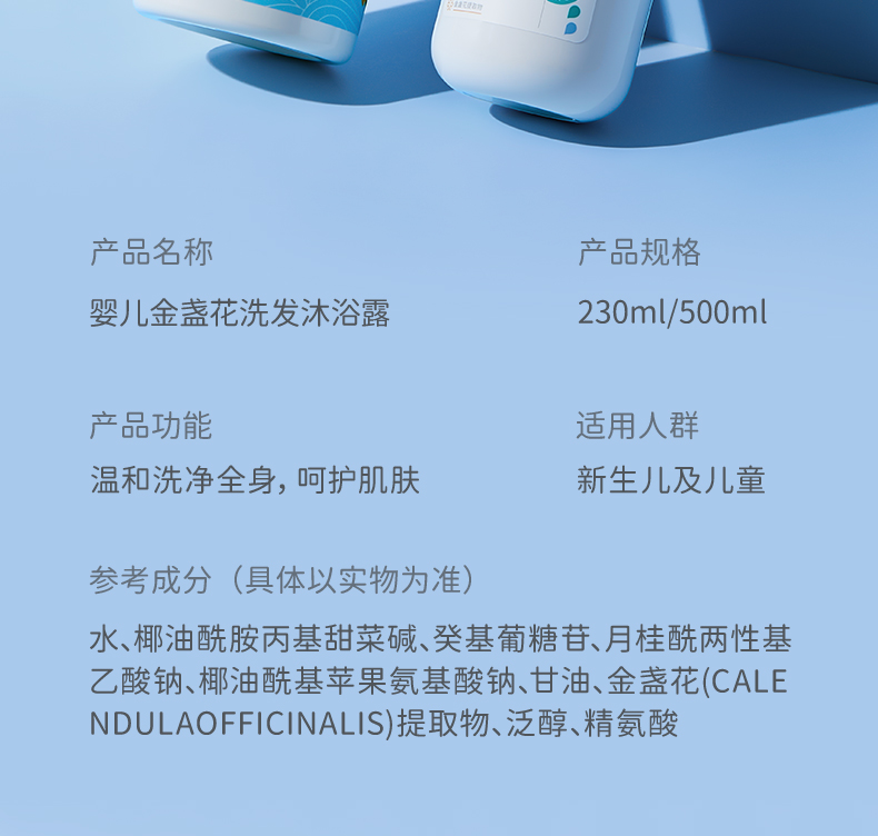 【戴可思推荐】戴可思金盏花洗发沐浴二合一精简成分 7无添加 低泡易冲洗 洗发沐浴二合一