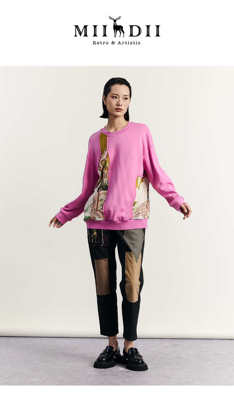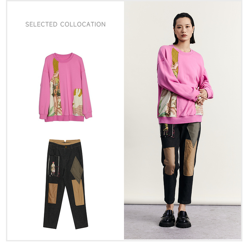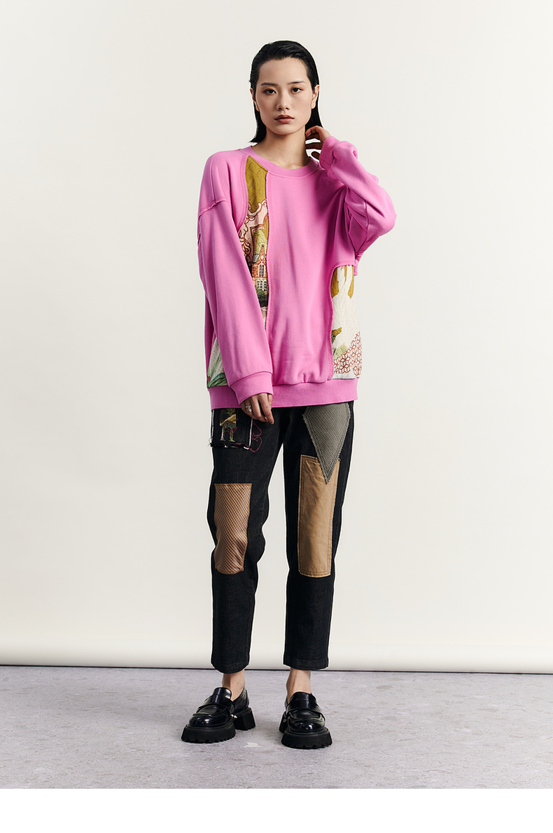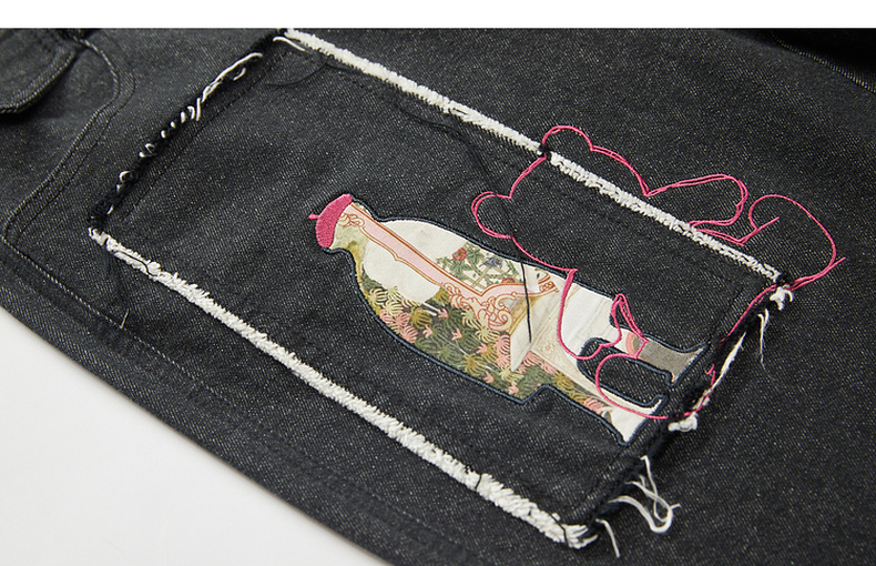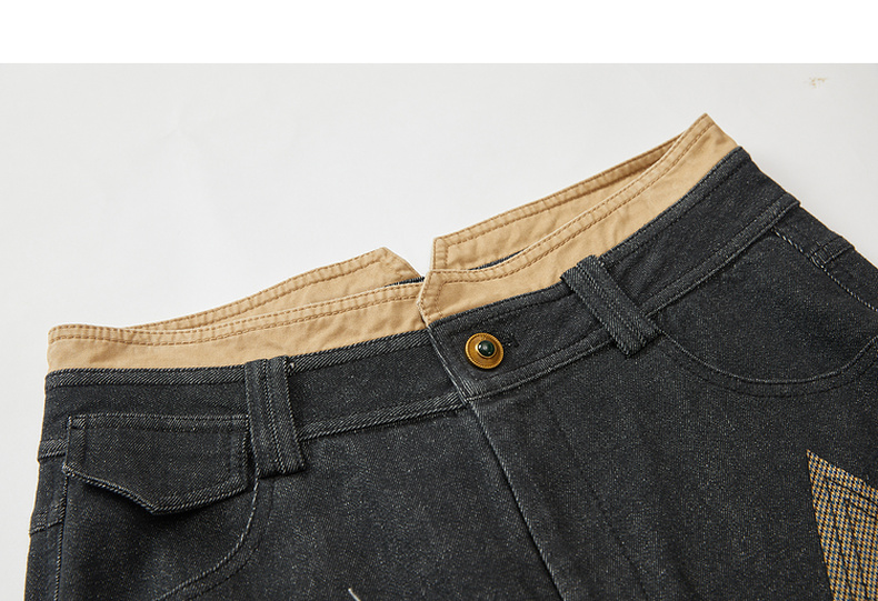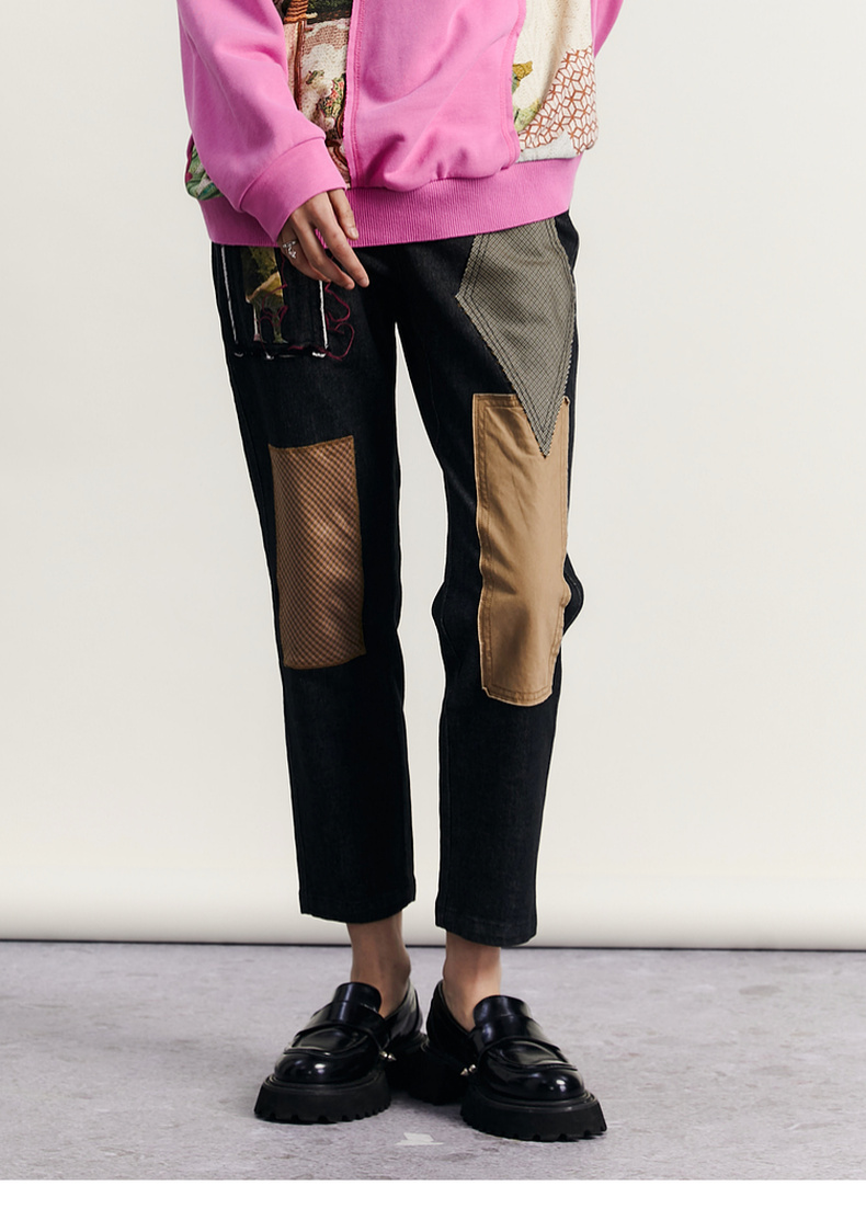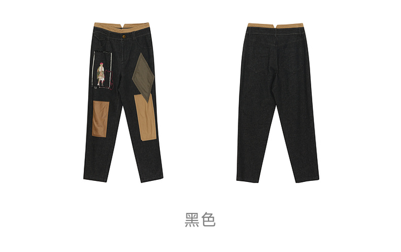 谜底绣花牛仔裤女2023秋新款复古拼接合体萝卜裤九分裤233MK1155