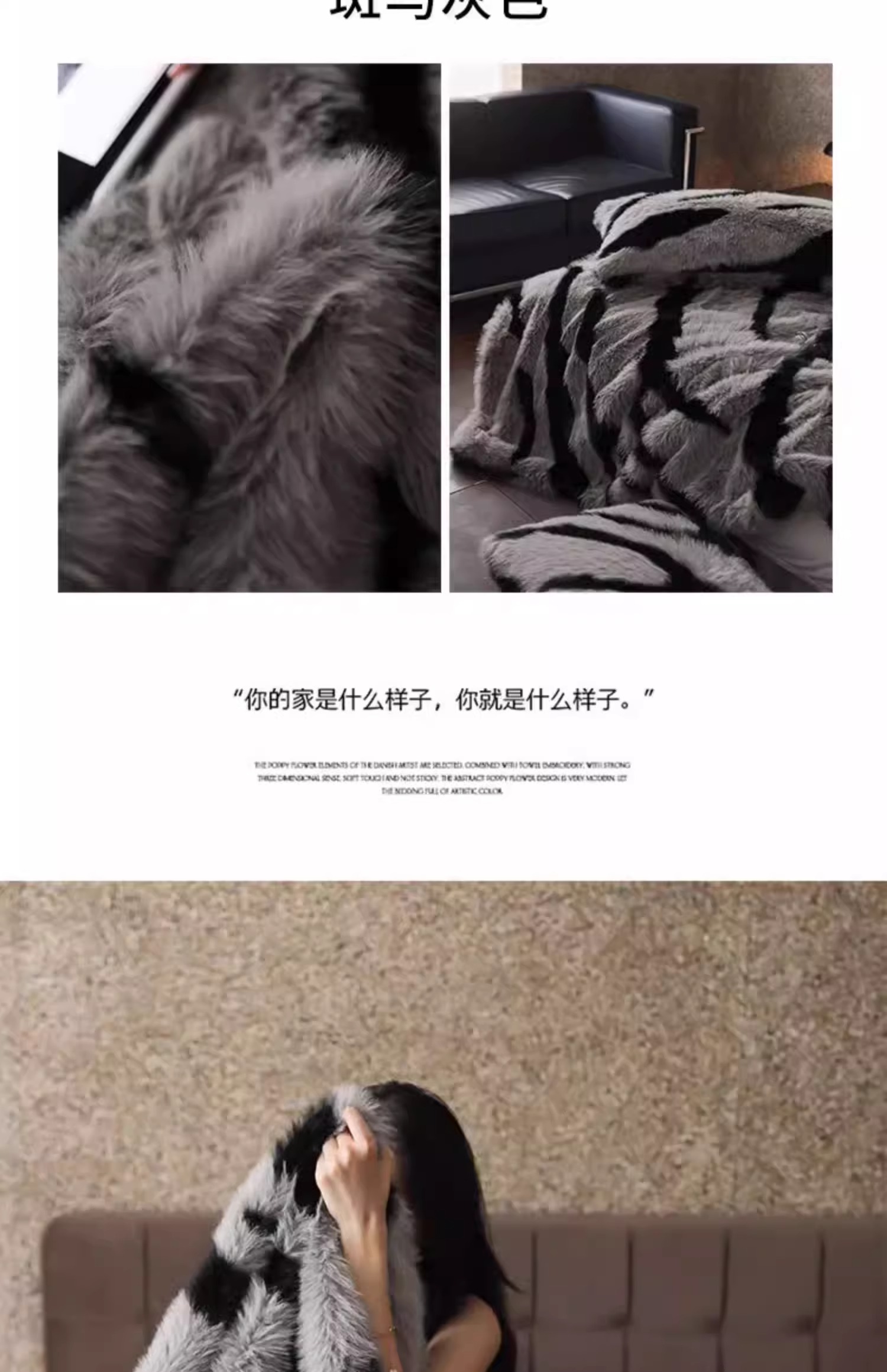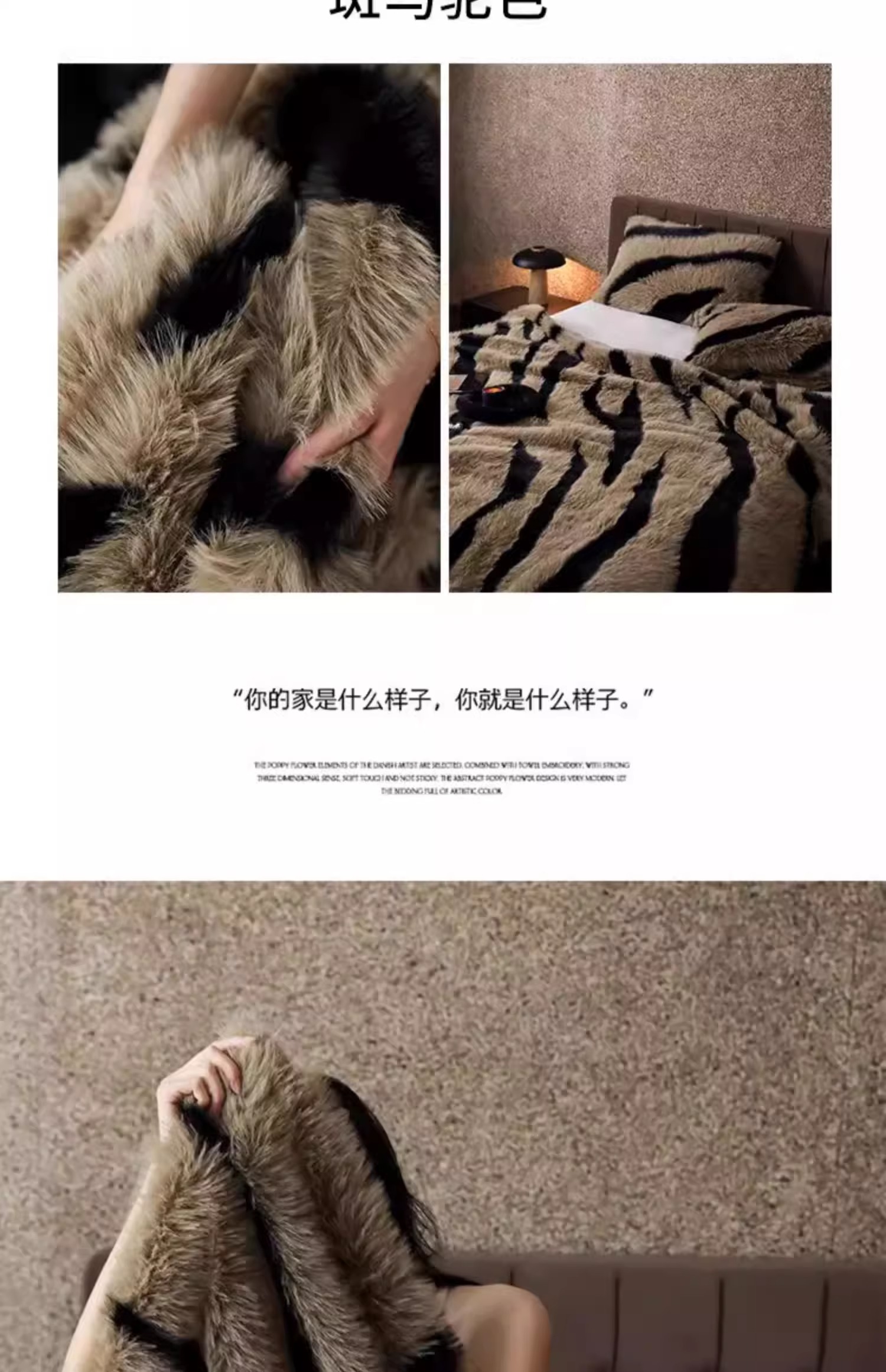 自然醒轻奢阿尔坦仿狐狸毛皮草毛毯兔毛冬季加厚沙发盖毯保暖午睡小毯子MT