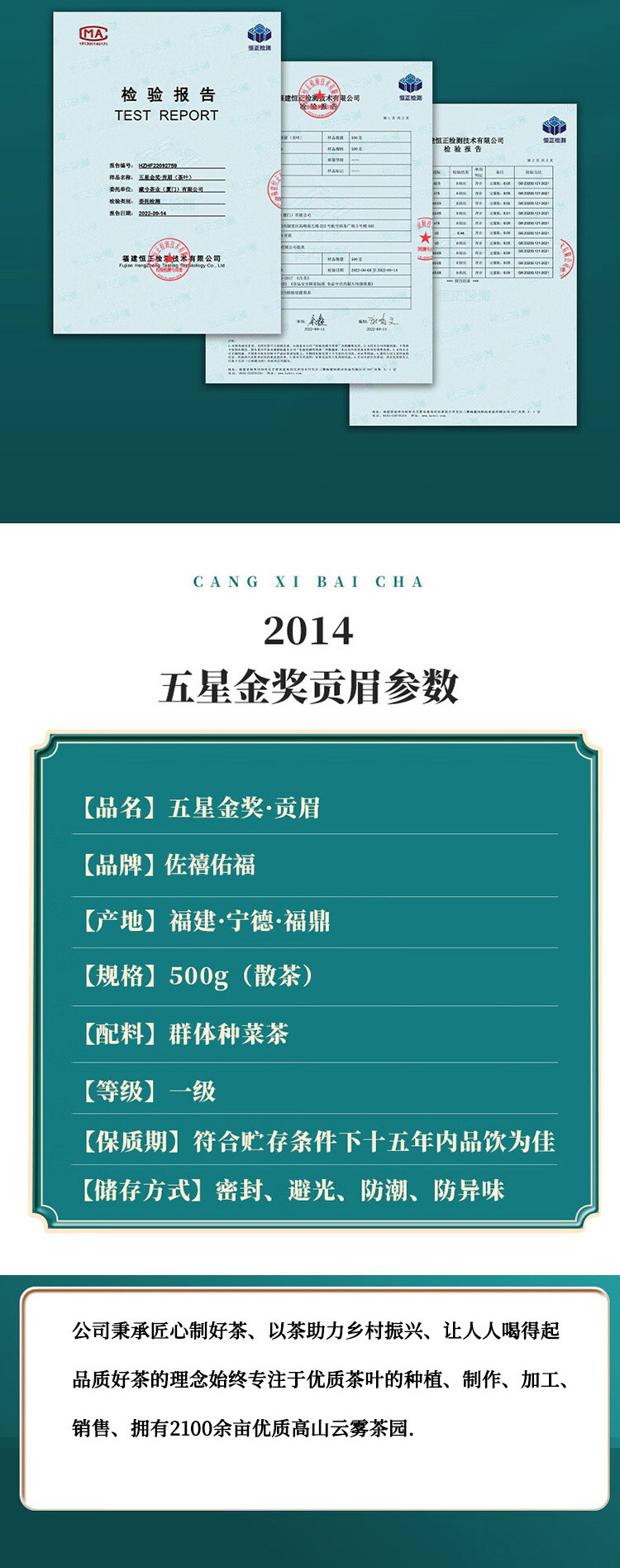 佐禧佑福 2014五星金奖贡眉高山云雾枣香老白茶送礼送长辈500g茶叶