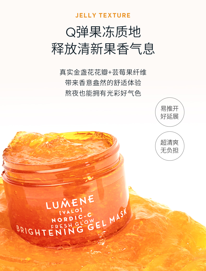 打开的时候,能看得见的面膜中金盏花瓣和芸莓果纤维,用起来那种Q弹果冻质地,涂抹在脸上很容易推开不厚重,带着清新果香味道,用起来不仅皮肤感觉舒适,整个人都感觉在果香中沉浸。