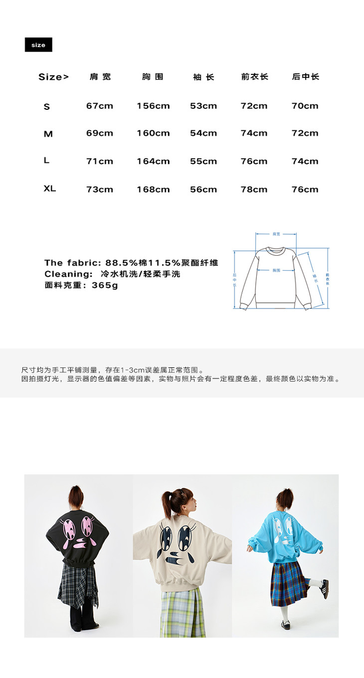 CryingCenter我哭了宝宝蓝奶油米芭比粉黑大廓形显瘦宽松圆领卫衣