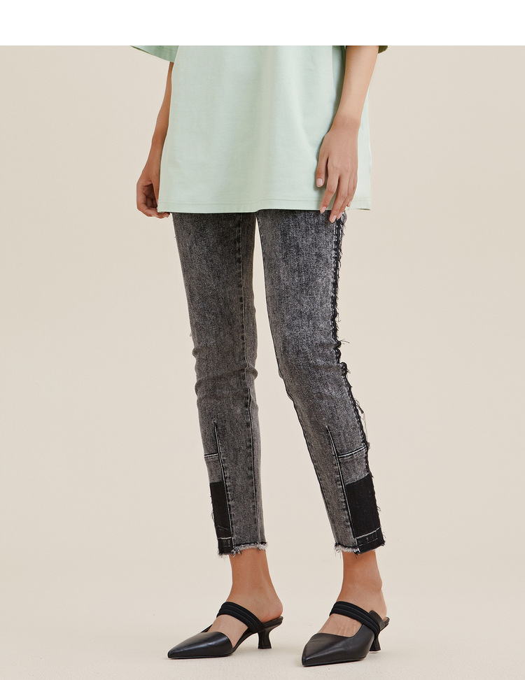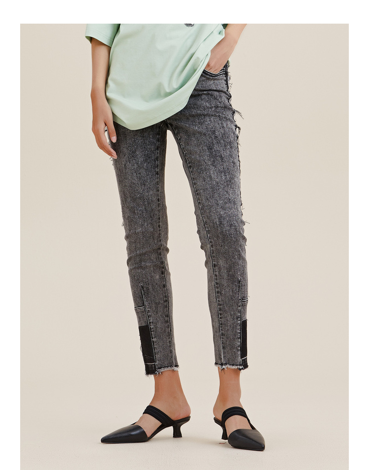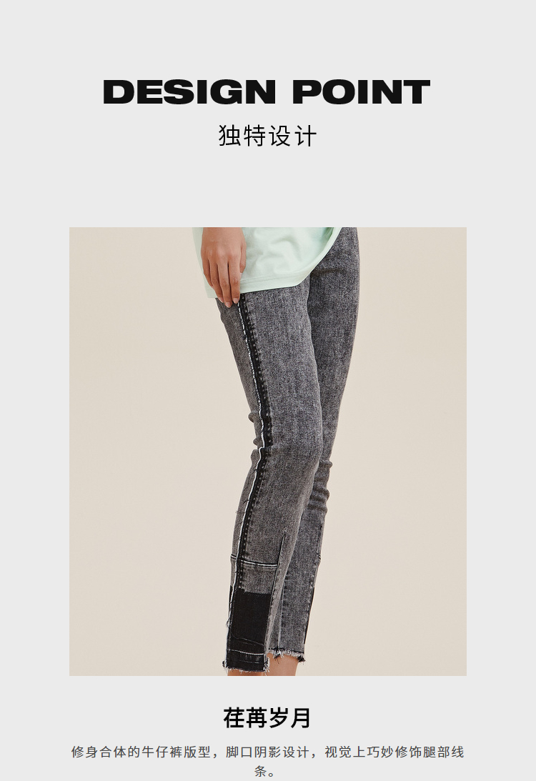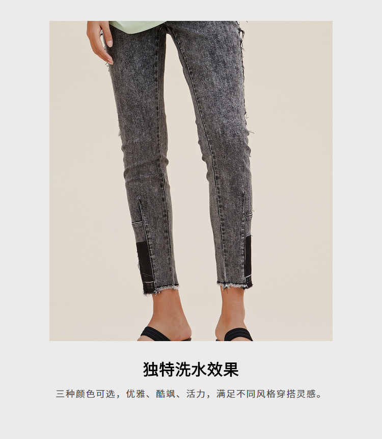MIIDII/谜底21夏新品简约易搭洗水磨白紧身牛仔裤女212MK0709