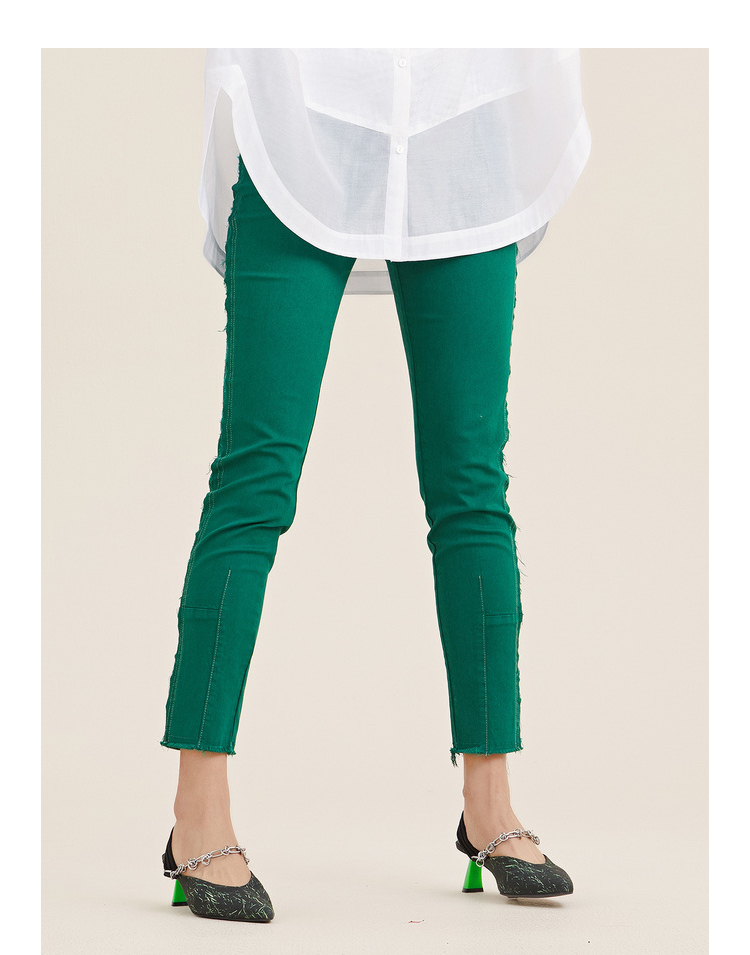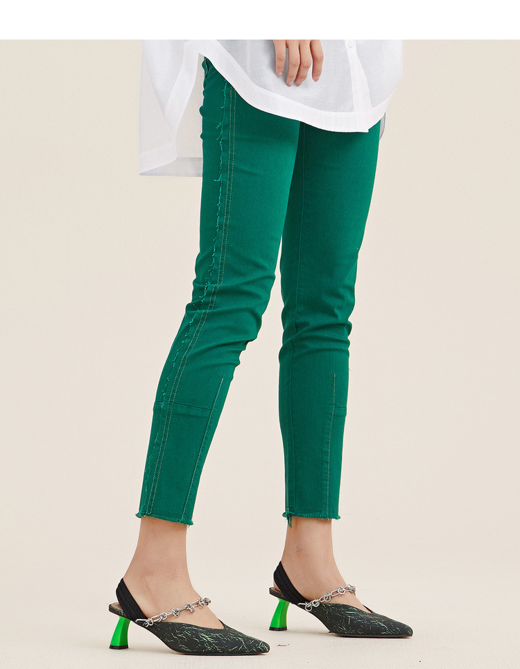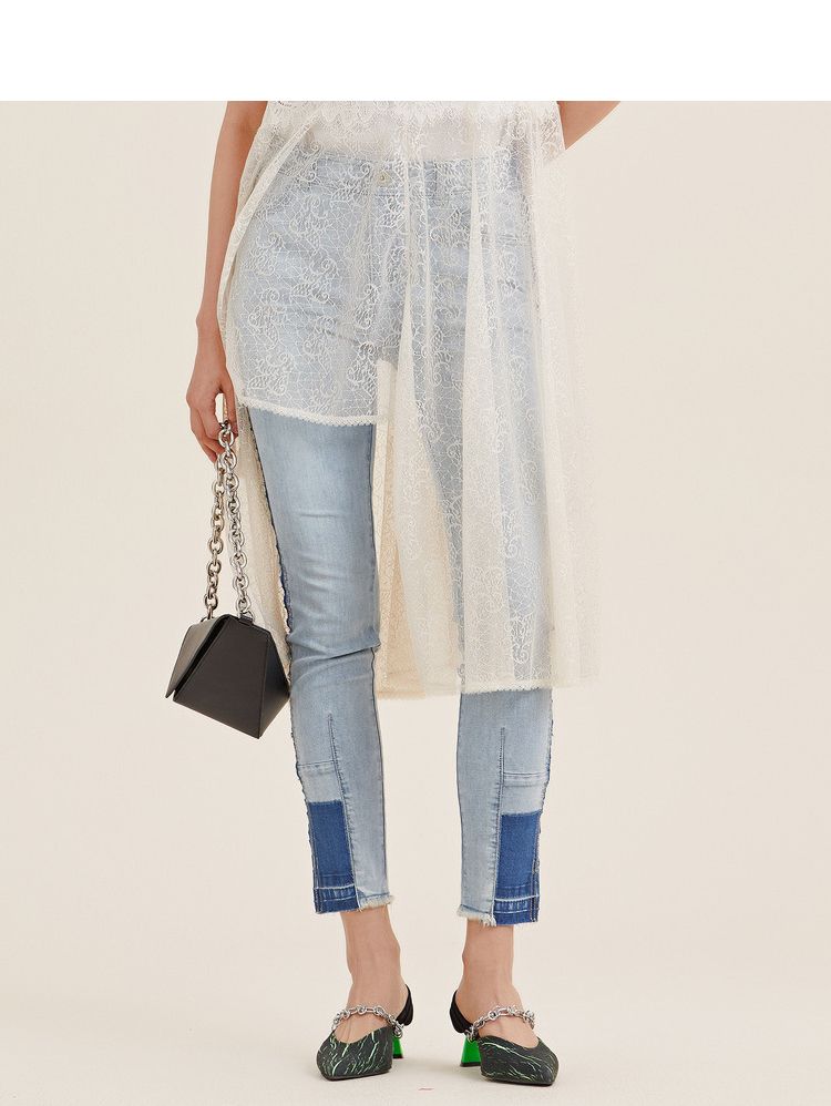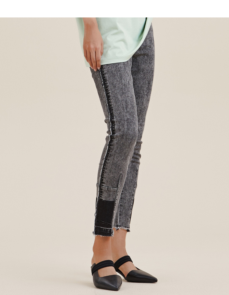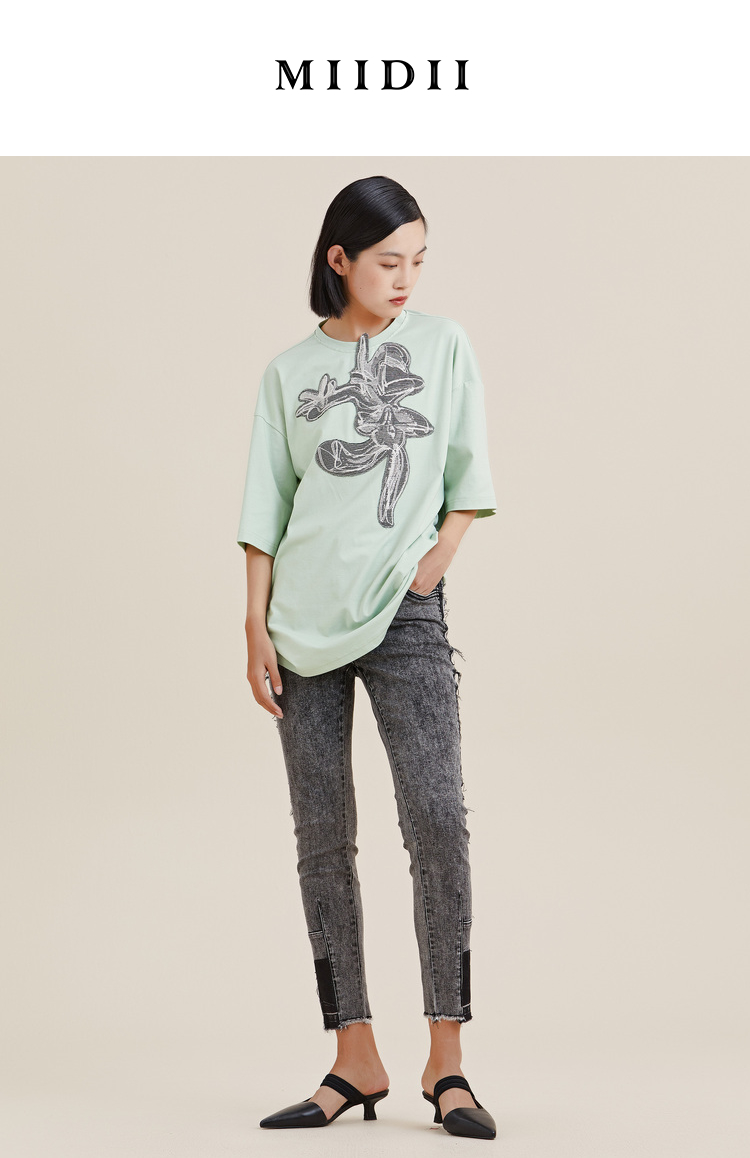 MIIDII/谜底21夏新品简约易搭洗水磨白紧身牛仔裤女212MK0709