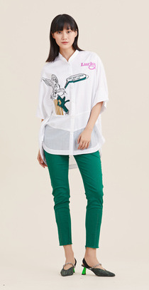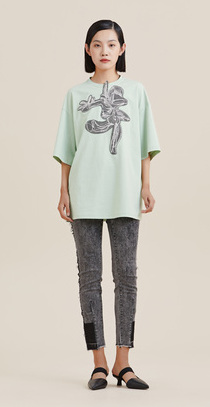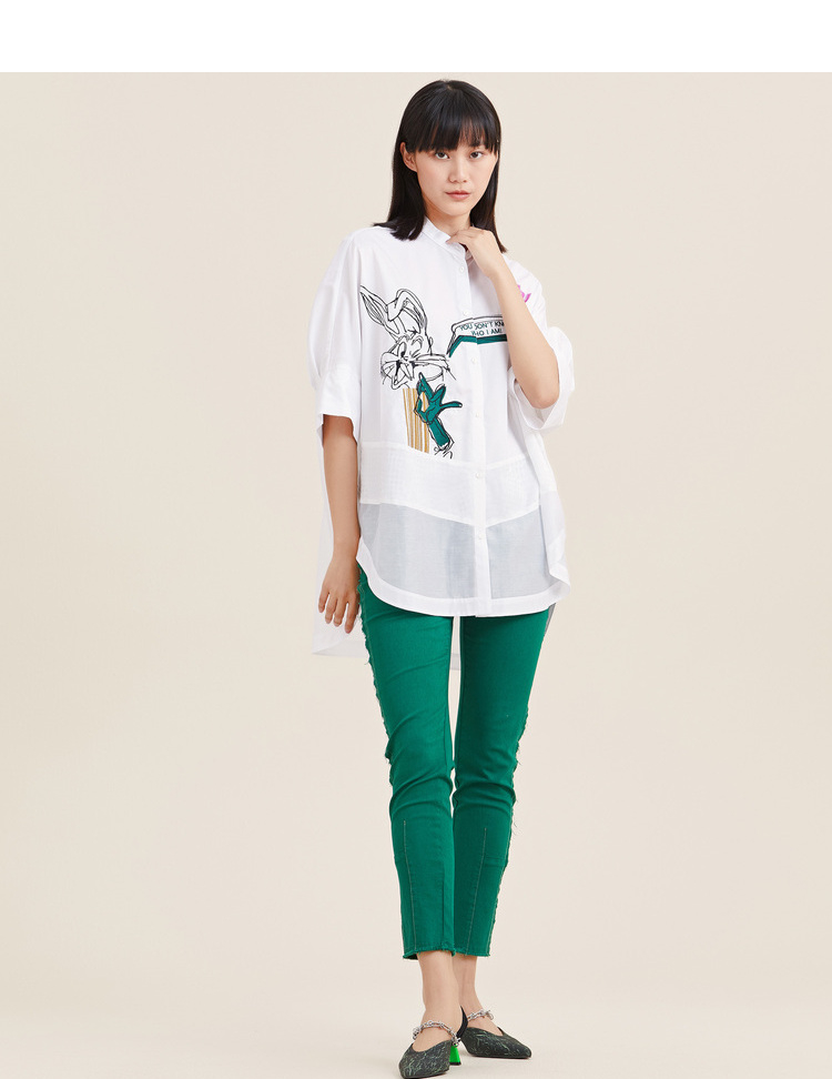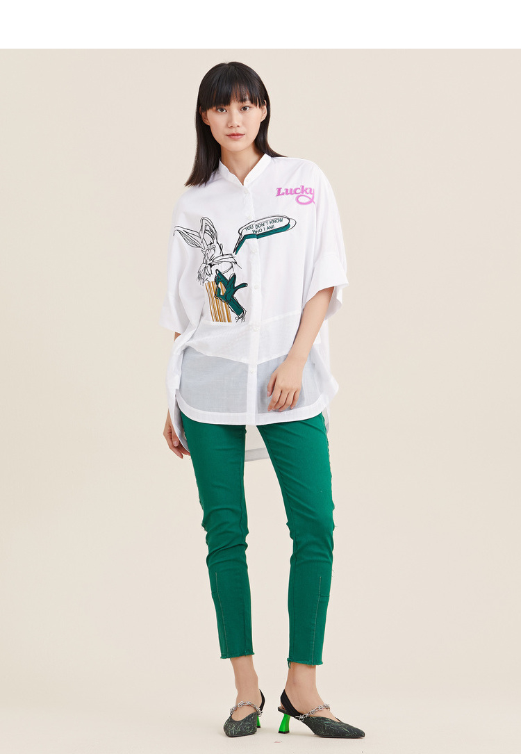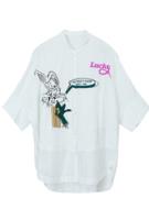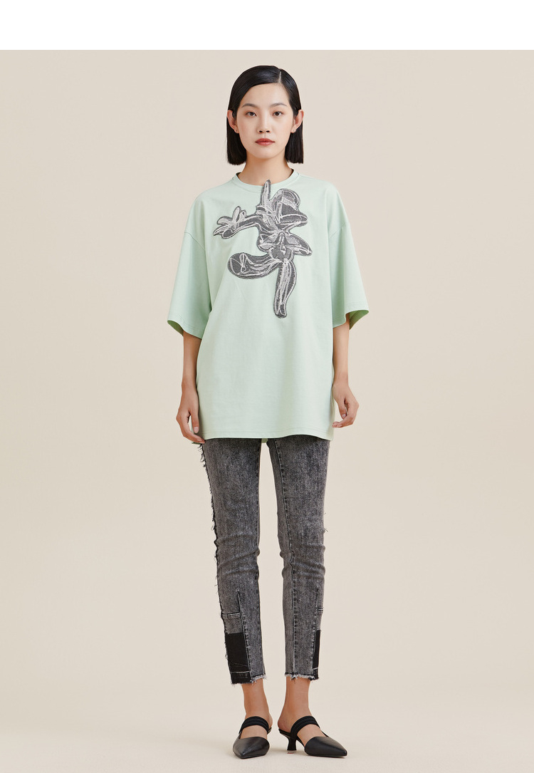 谜底印花T恤短袖2026年春季新品H型纯棉蓝晒兔子艺术女261MT0203