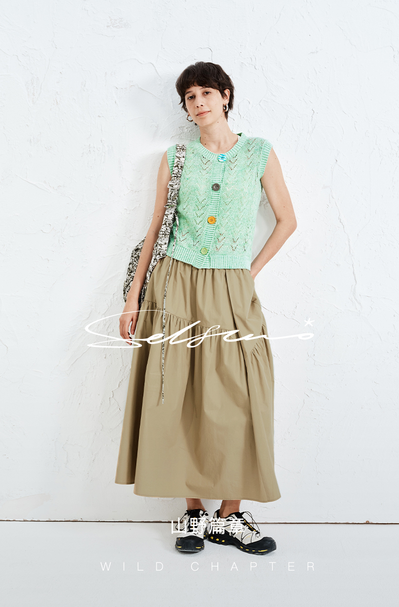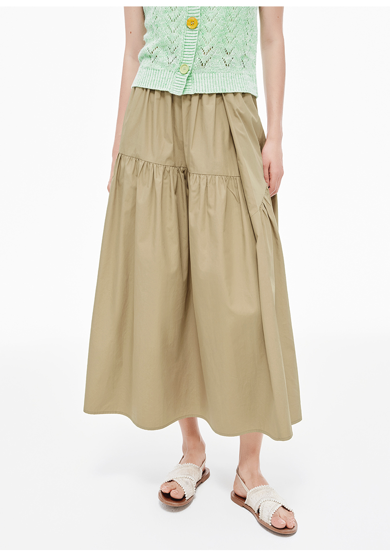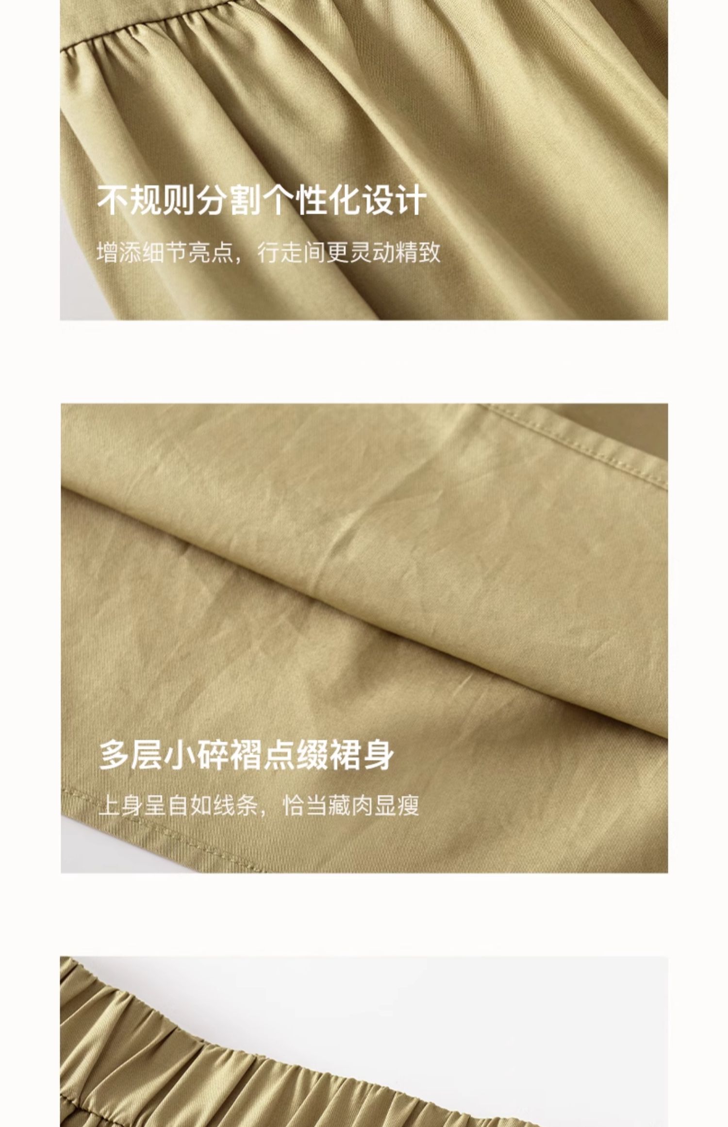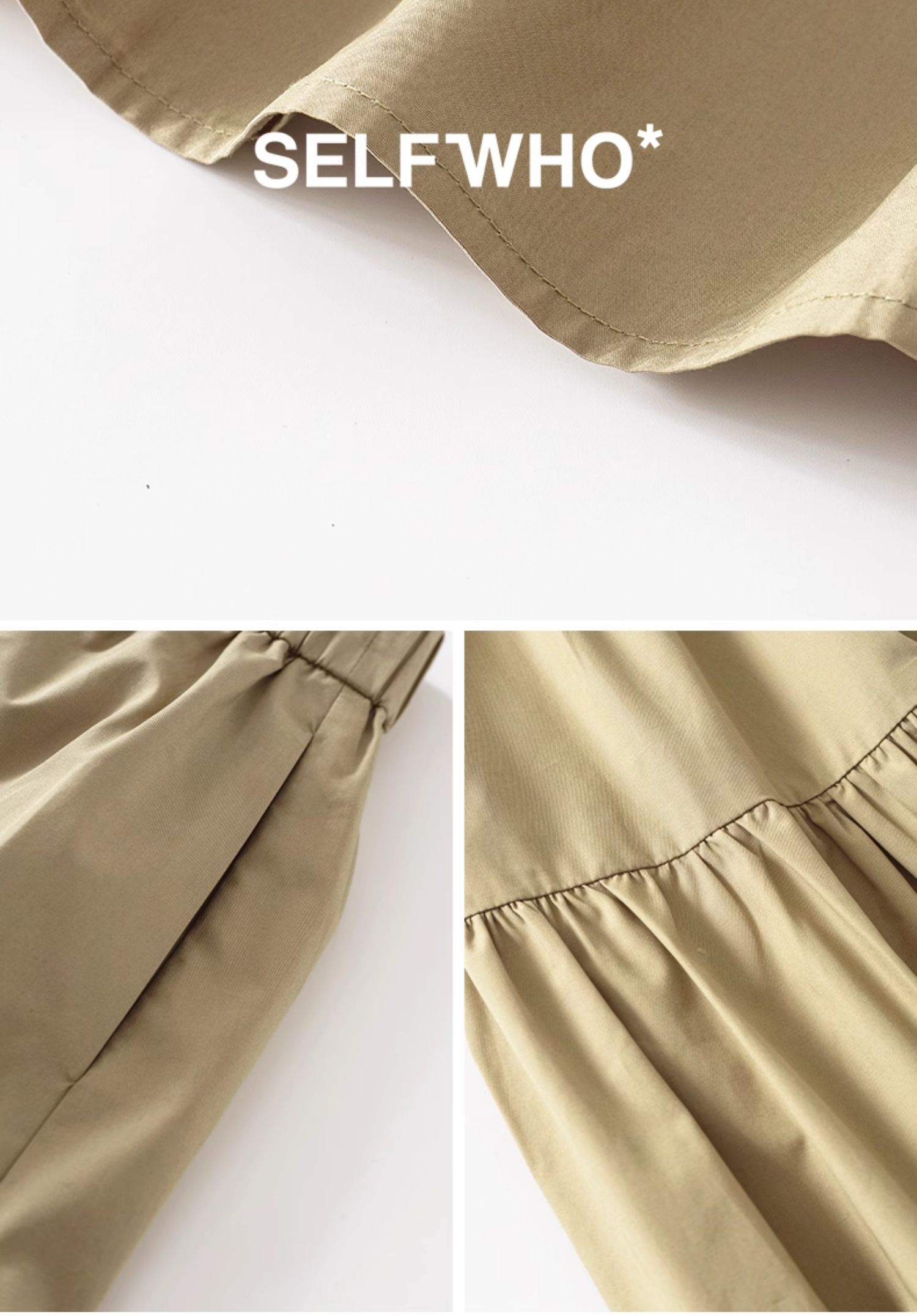 SELFWHO纯棉卡其色半身裙女2025夏新款不规则分割宽松优雅A字半裙
