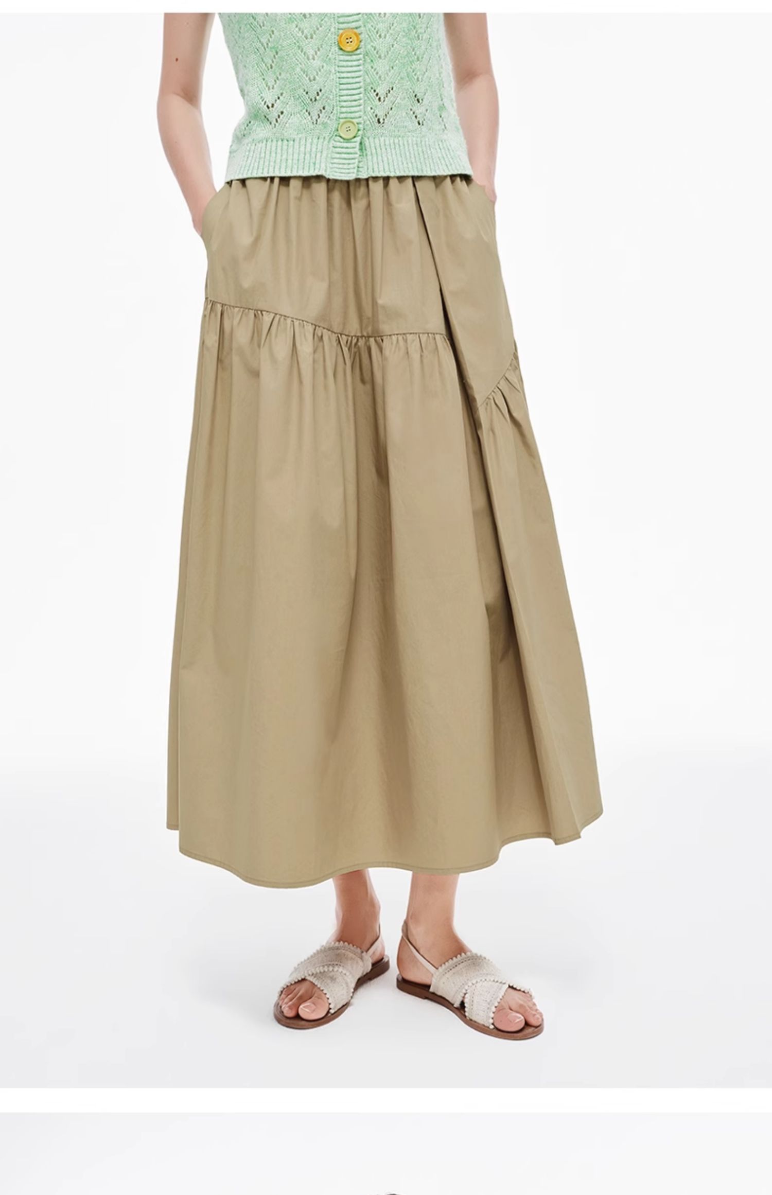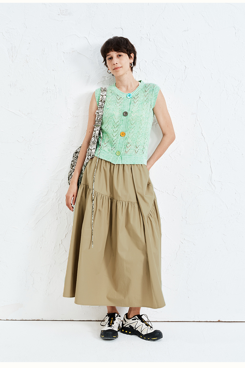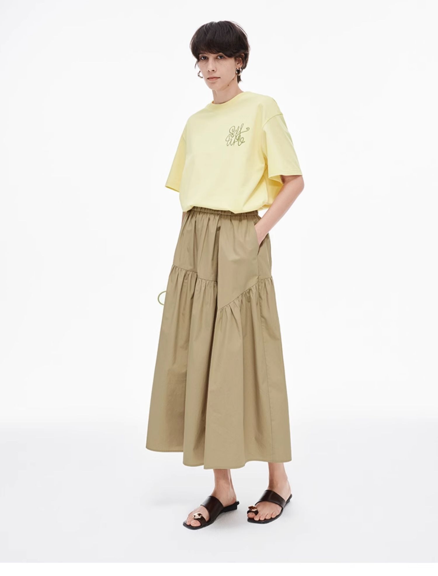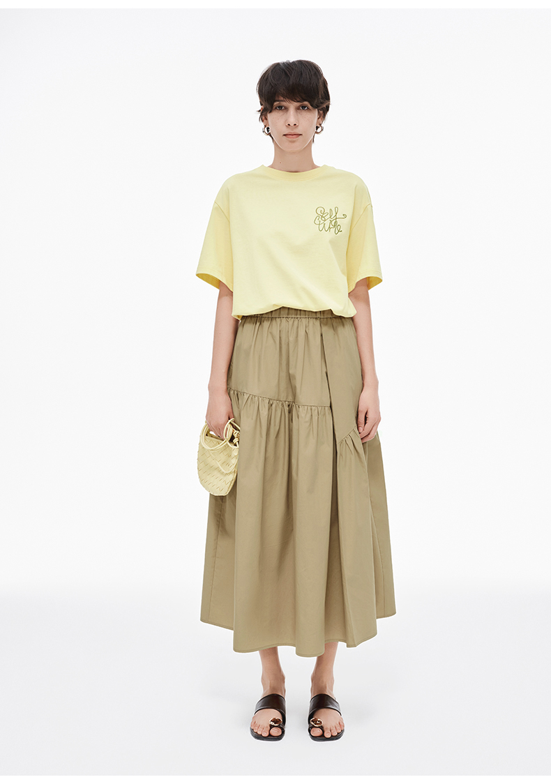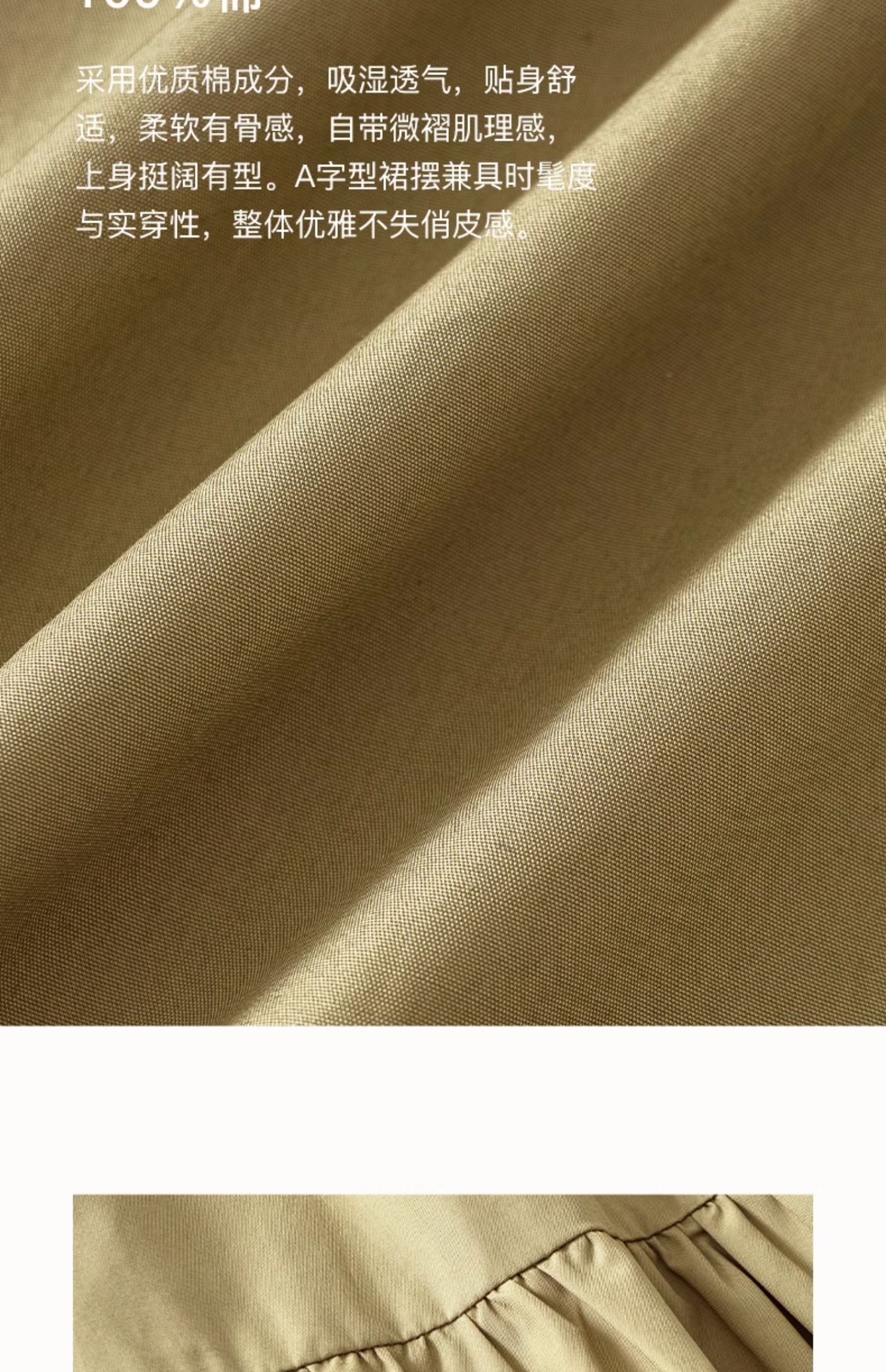 SELFWHO纯棉卡其色半身裙女2025夏新款不规则分割宽松优雅A字半裙