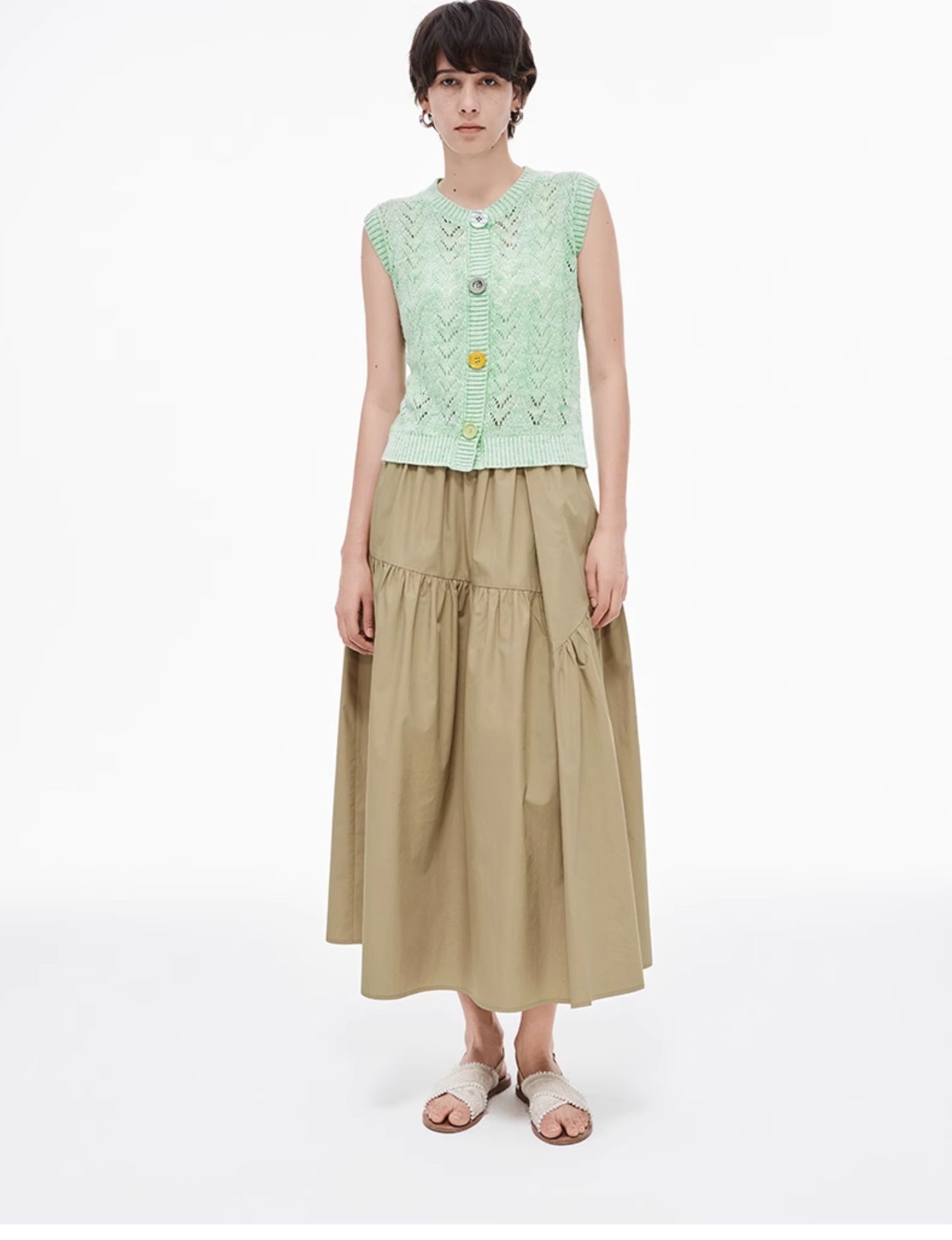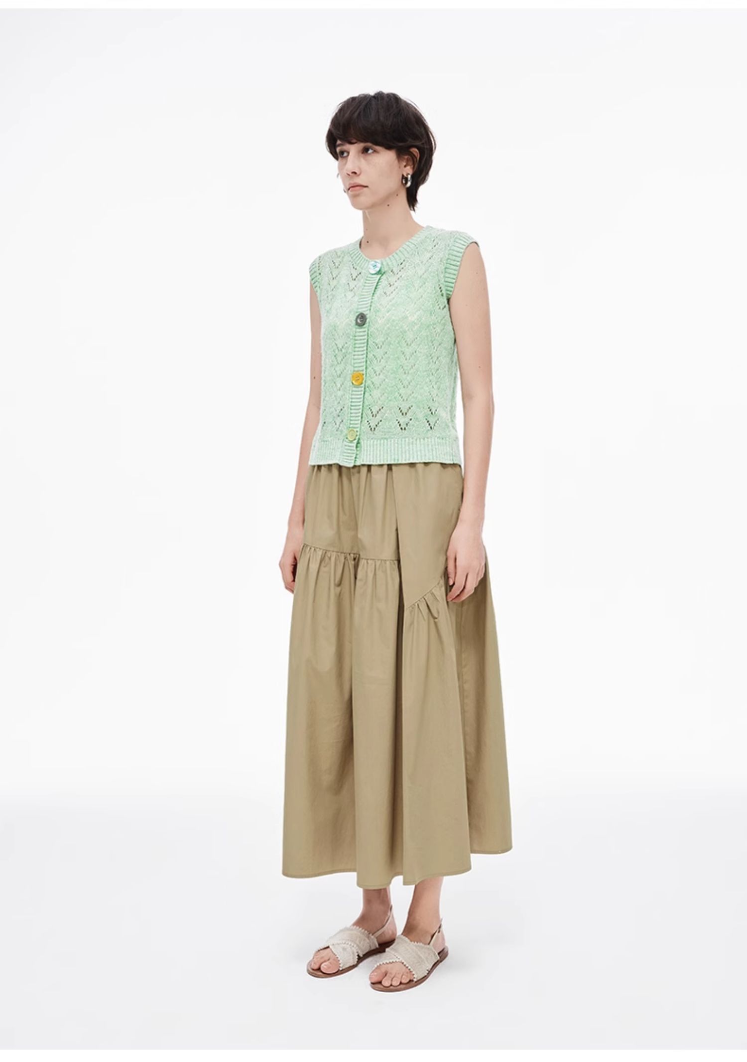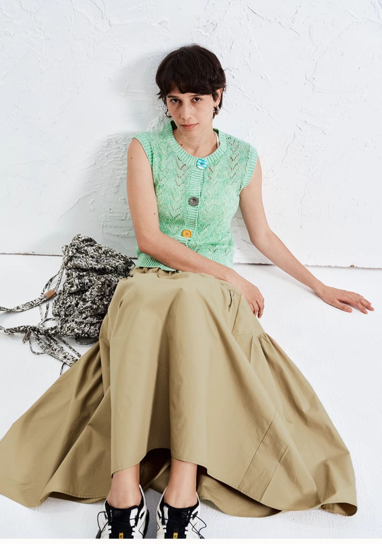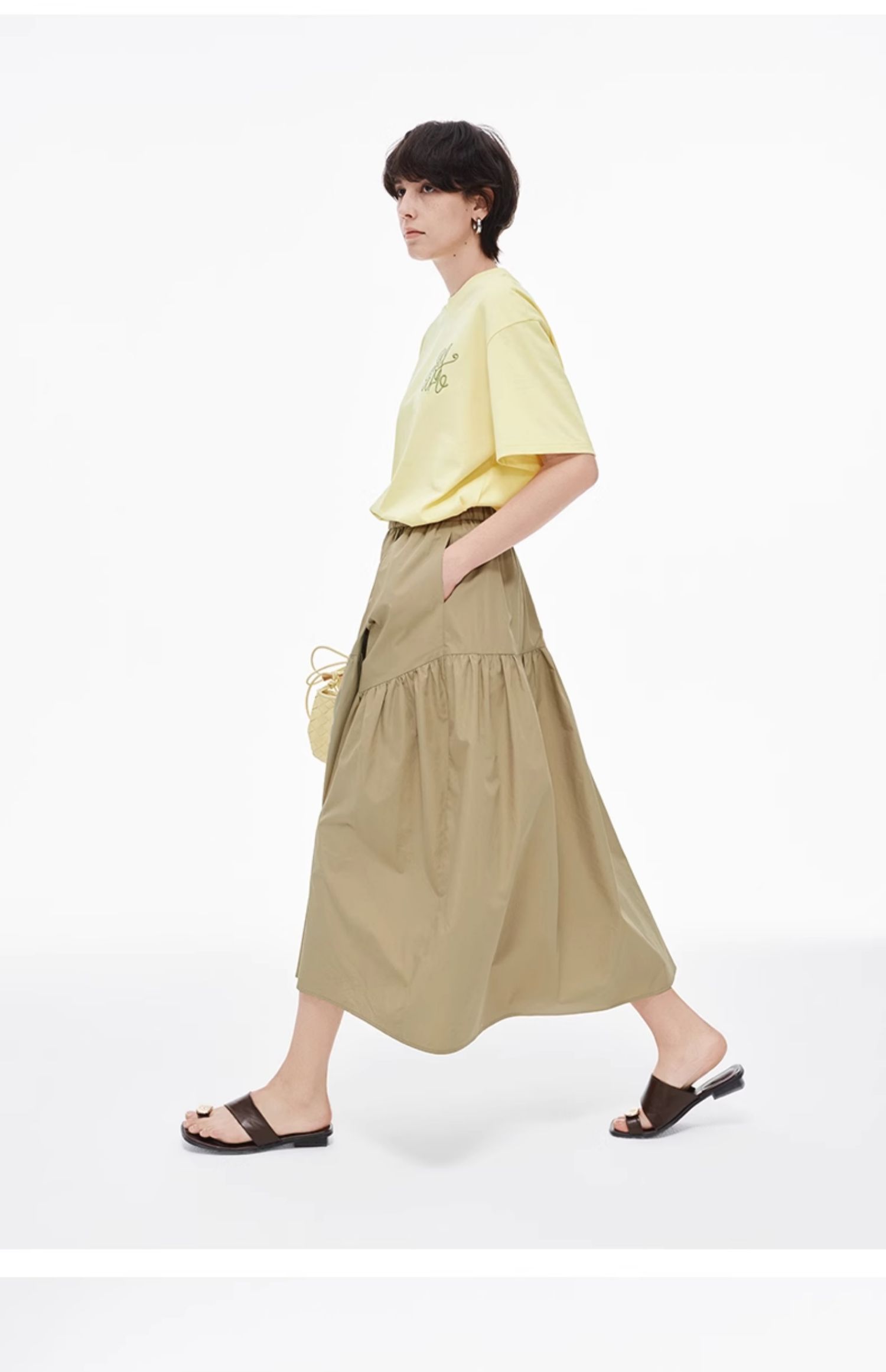 SELFWHO纯棉卡其色半身裙女2025夏新款不规则分割宽松优雅A字半裙