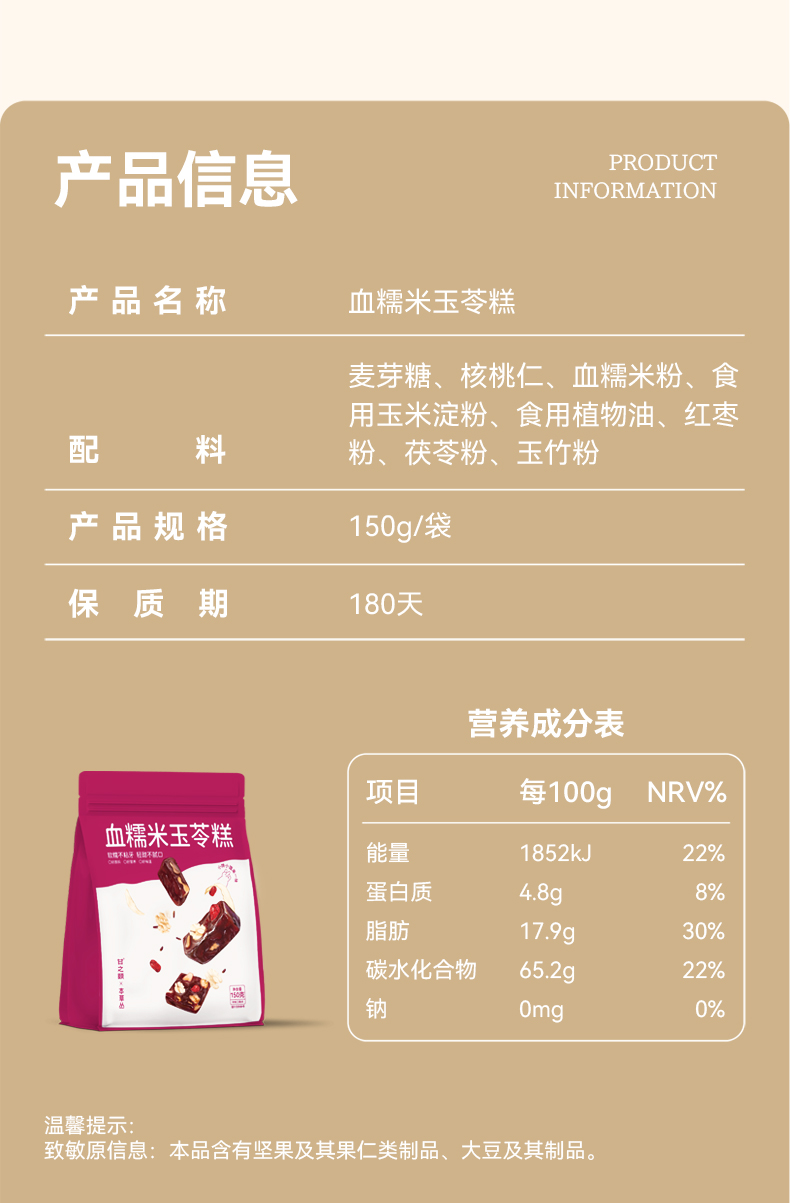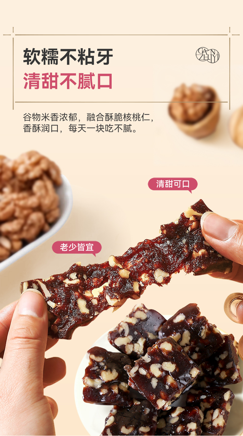 【限时秒杀,49.9/3袋,89.9/6袋】甘之颐 血糯米核桃糕 150g/袋 孕妇零食红枣新中式糕点养生零食休闲食品(无燕窝版本)
