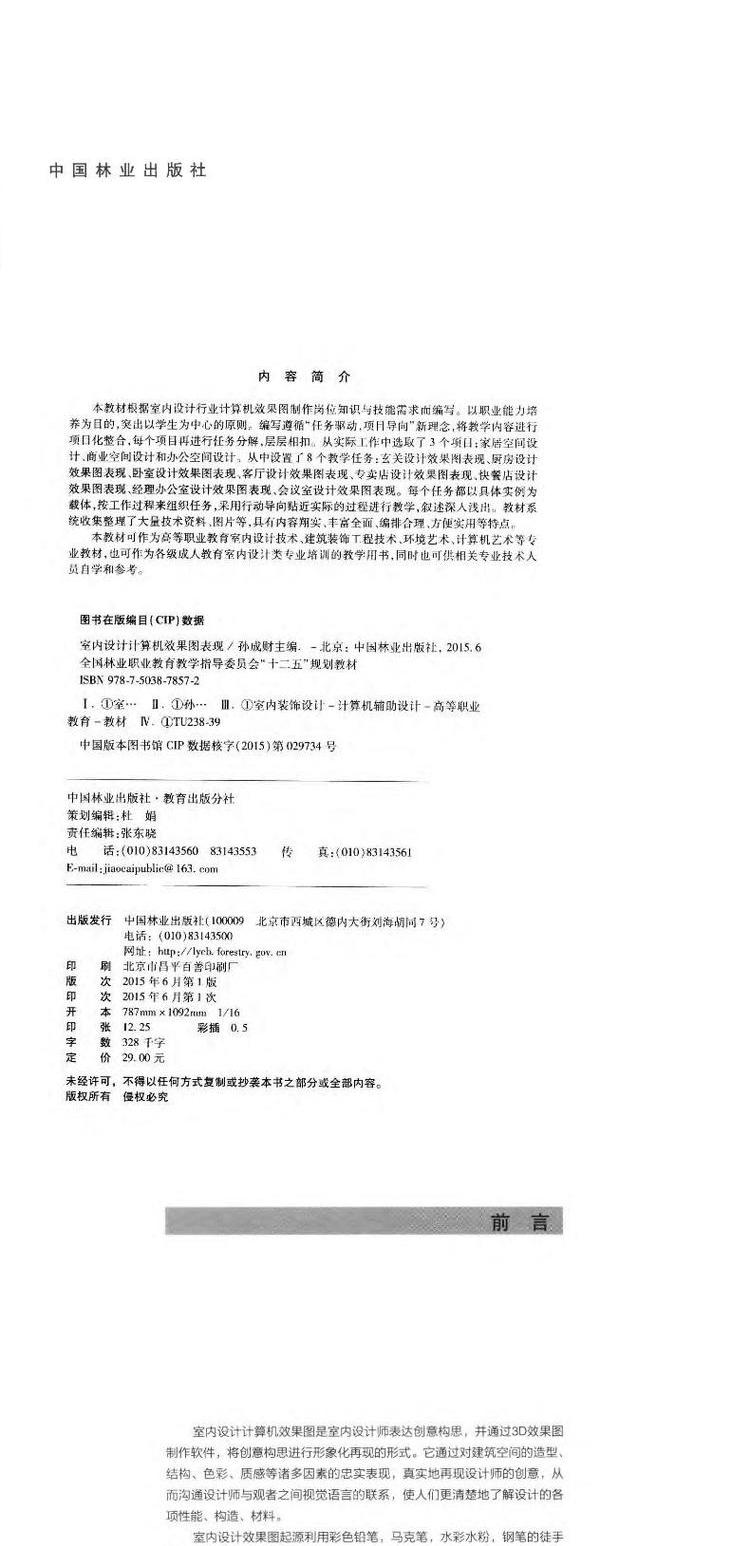 室内设计计算机效果图表现 中国林业出版社教材7857