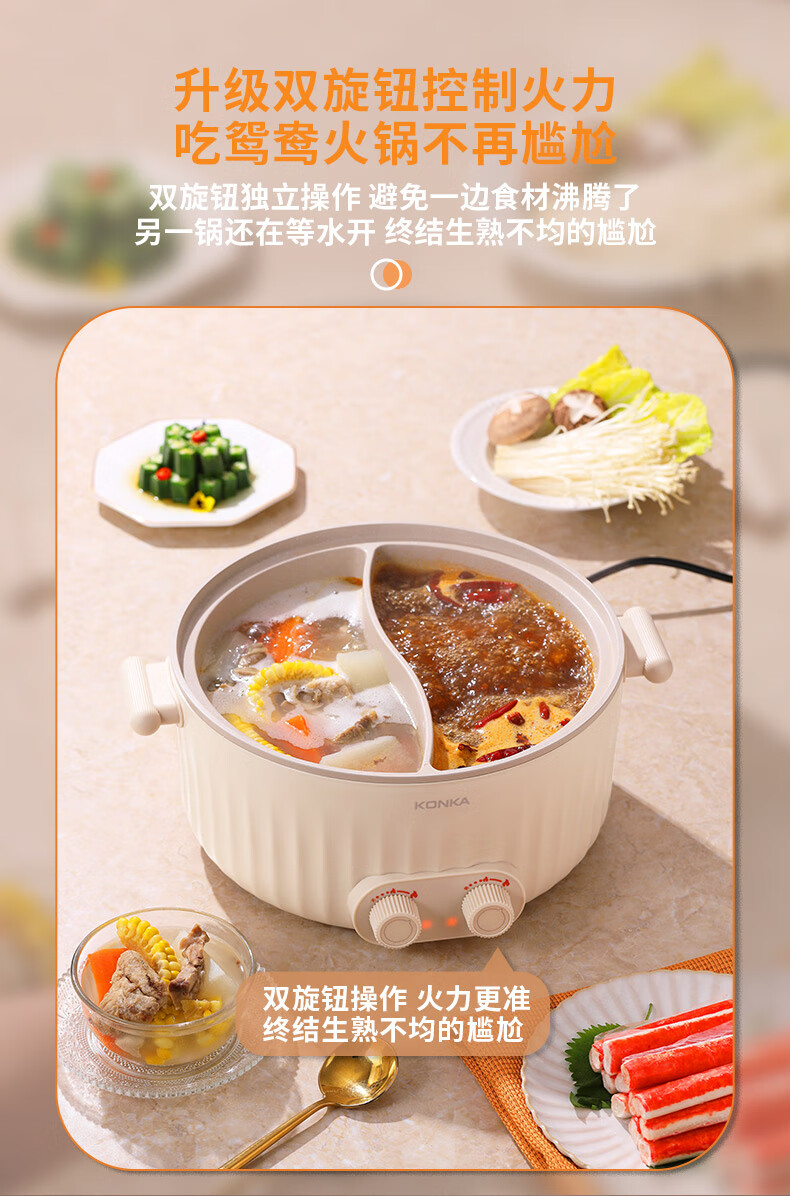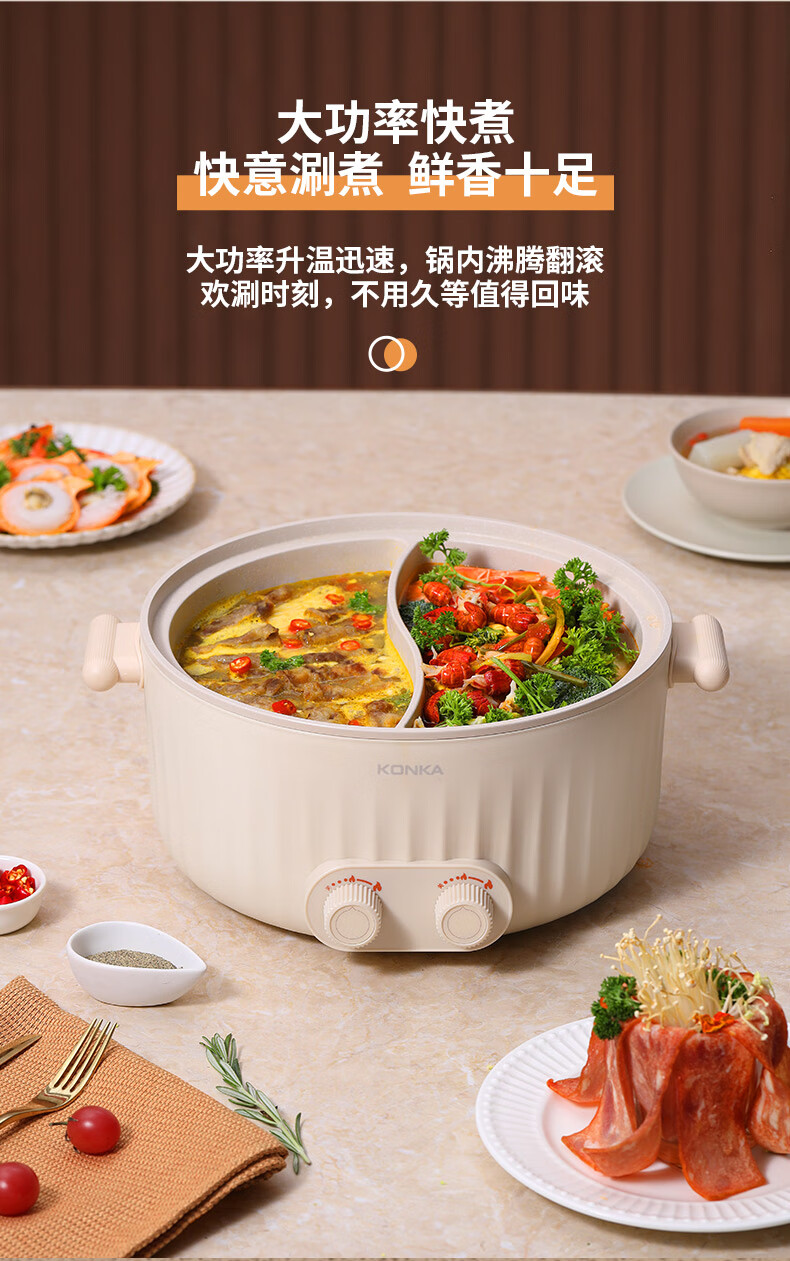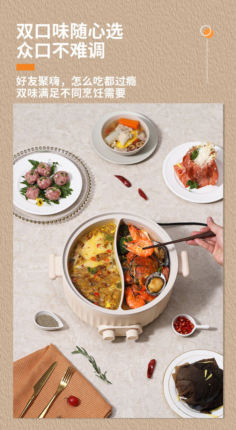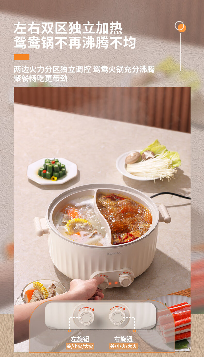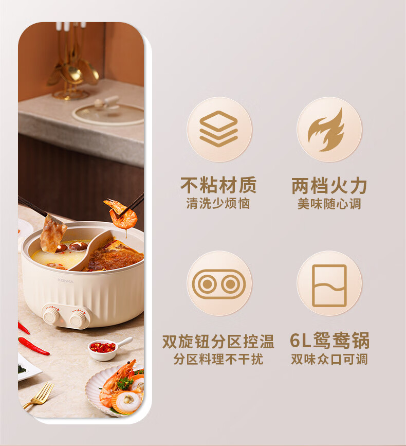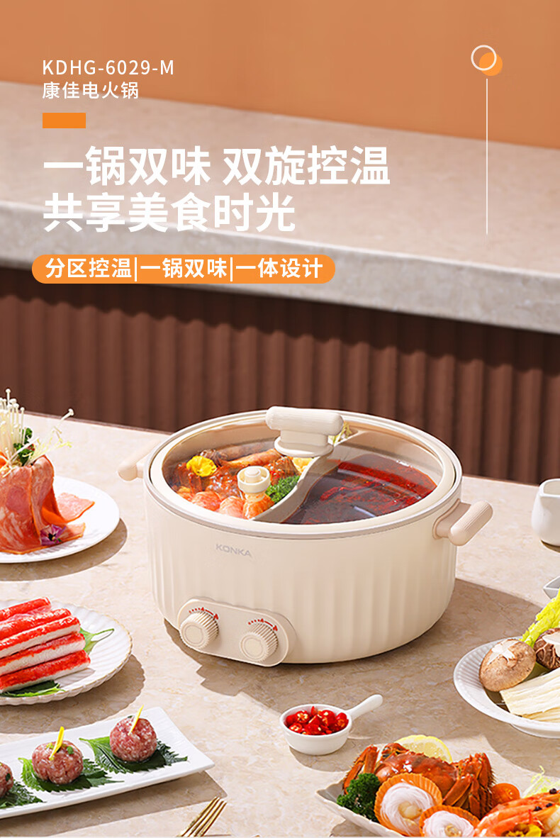 康佳(KONKA) 电火锅家用多功能6L大容量一体分区控温鸳鸯锅KDHG-6029-M 星梦白