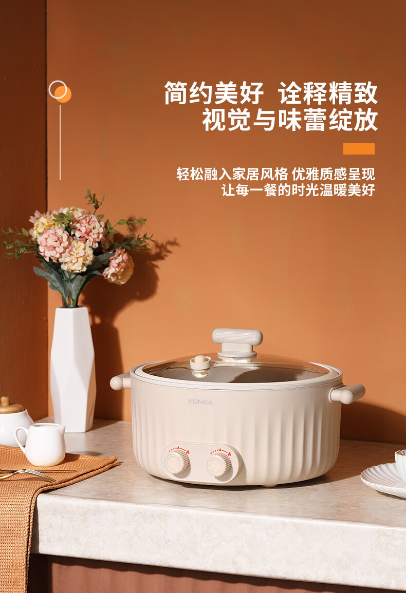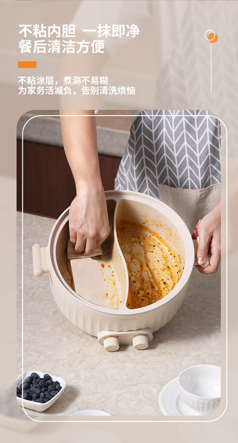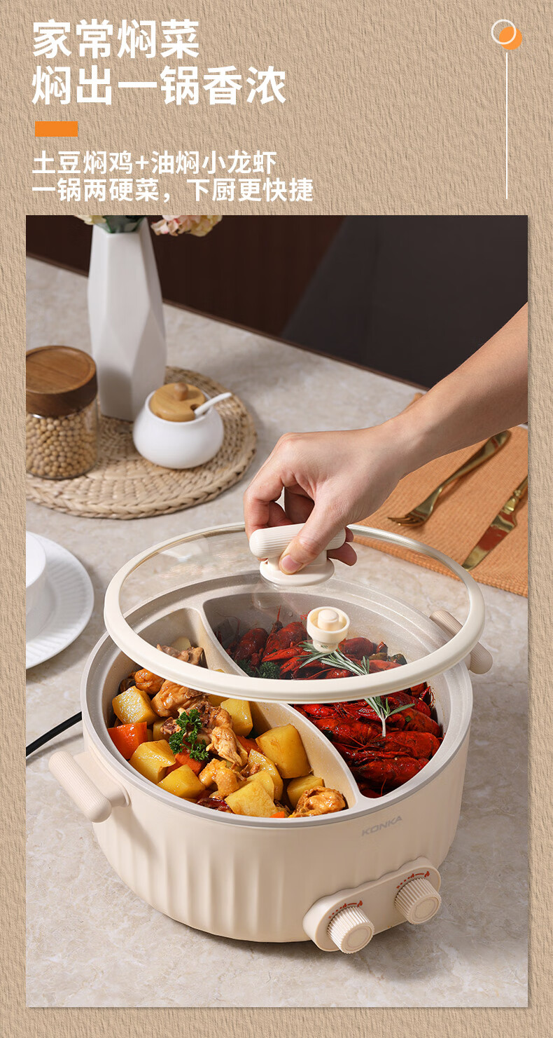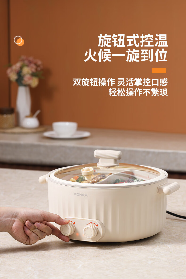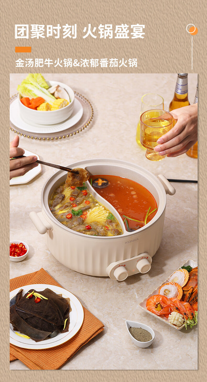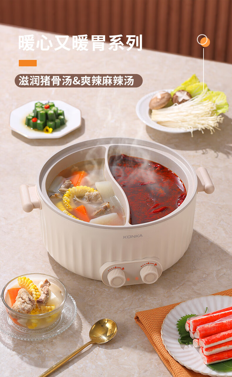 康佳(KONKA) 电火锅家用多功能6L大容量一体分区控温鸳鸯锅KDHG-6029-M 星梦白