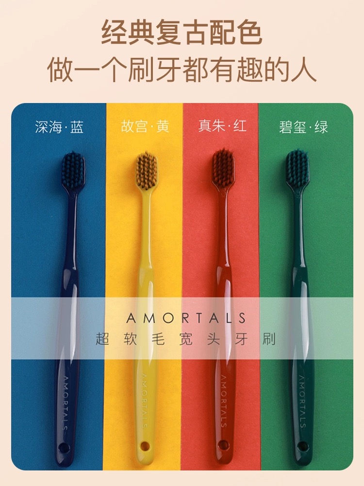 尔木萄软毛宽头牙刷A(真朱红+碧玺绿)2pcs
