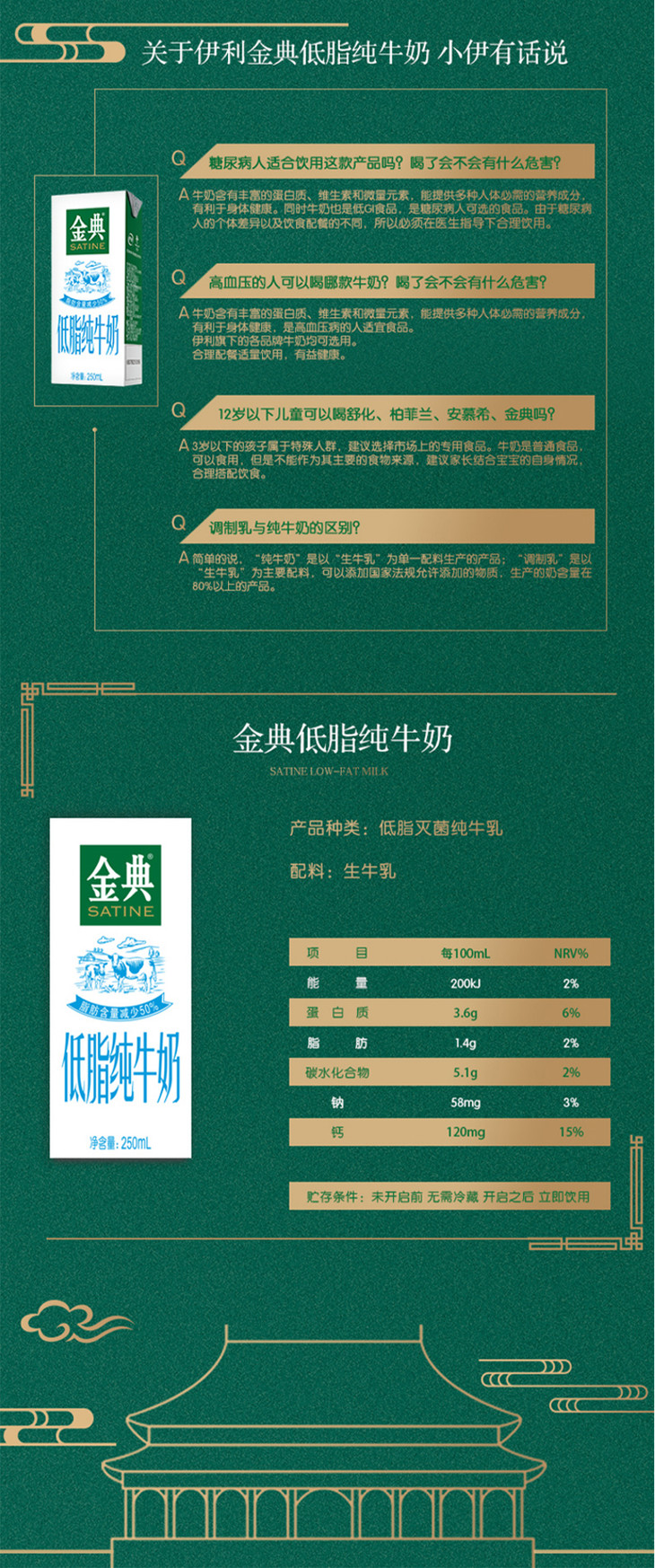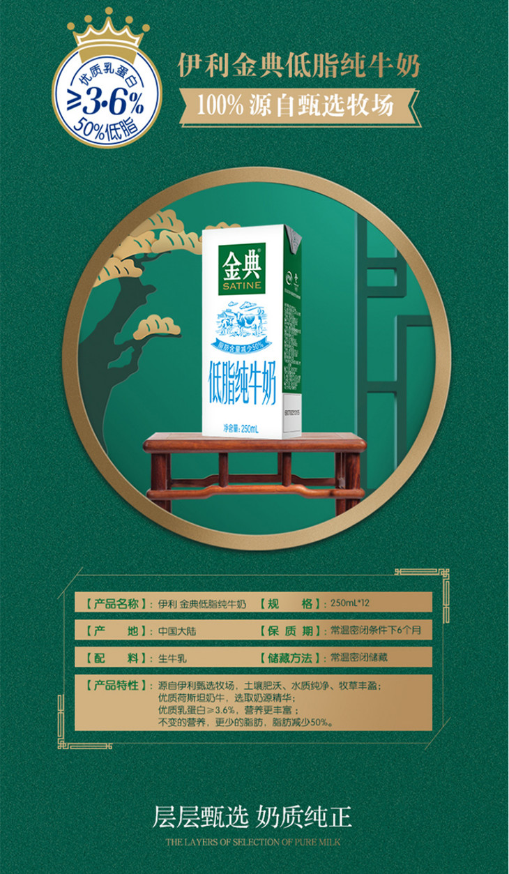 250ml*12伊利金典低脂纯牛奶