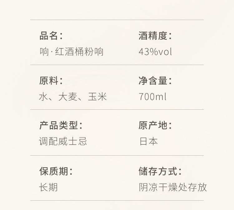 【礼想心动】三得利响红酒桶调和型威士忌洋酒700ml(无盒)【每单限购一件,可多次下单,超包无法发货】