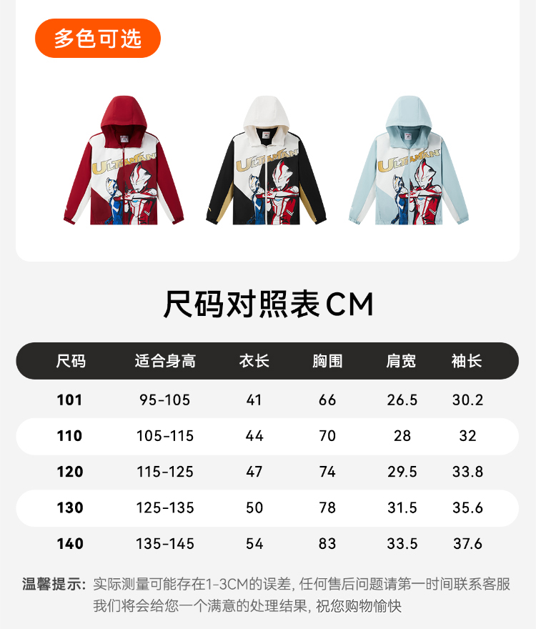 安踏儿童男小童运动外套2025秋新款奥特曼萌趣撞色潮酷易去污上衣352539616