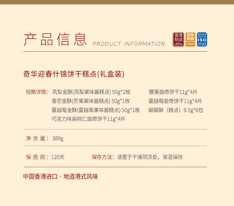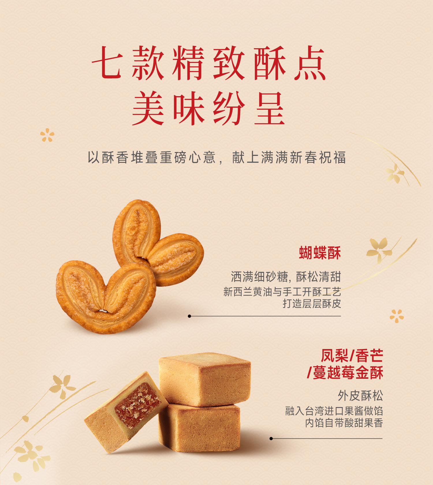 【贺年精选迎春礼盒】年货礼盒装蝴蝶酥巧克力曲奇凤梨酥糕点中国香港