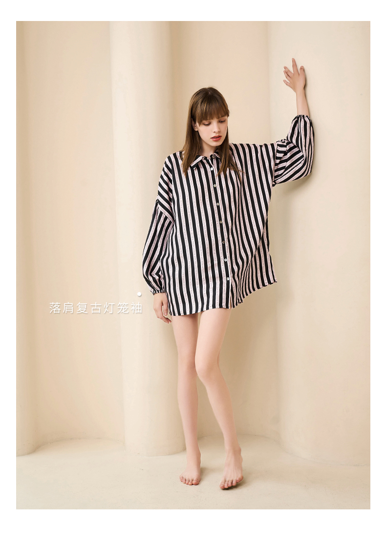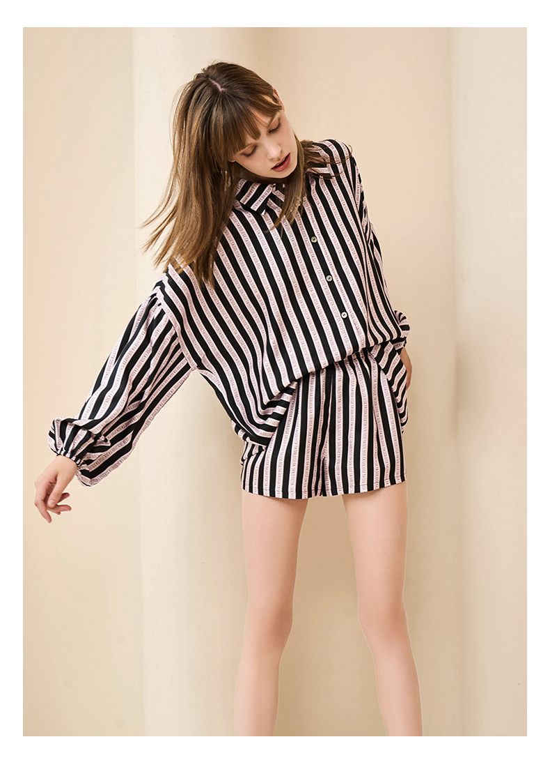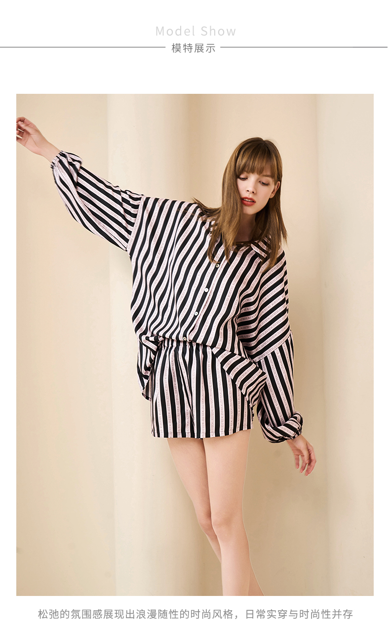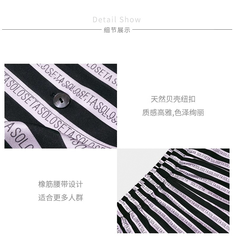 Solo seta真丝睡衣套装女士桑蚕丝可外穿条纹印花睡衣2025秋冬