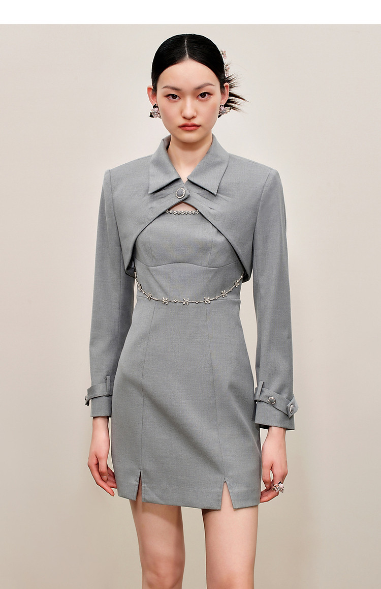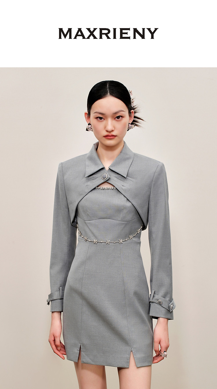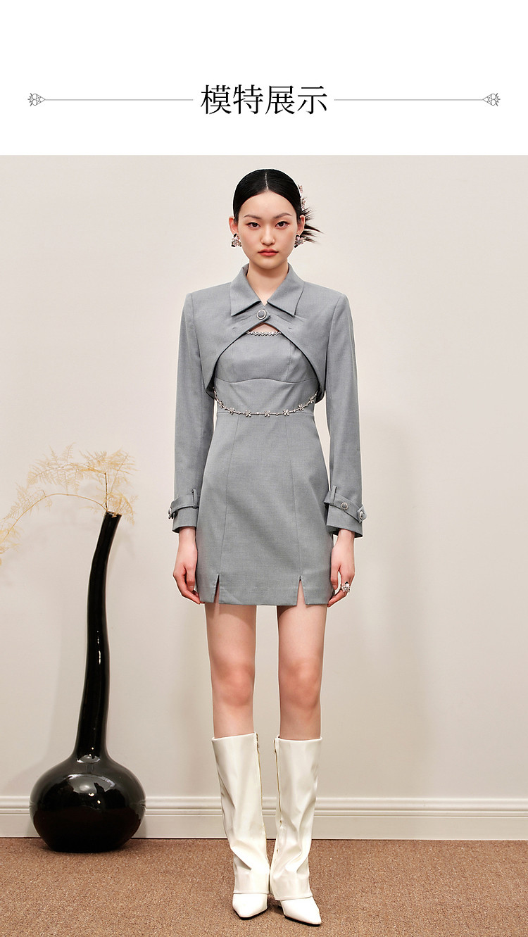 玛克门店发货:通勤风烟灰色外搭连衣裙MC88DR557A50