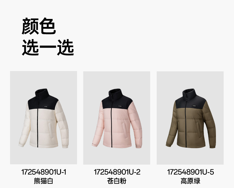 超级安踏防泼水羽绒服男女同款秋冬拼色鸭绒保暖防风夹克外套172548901U