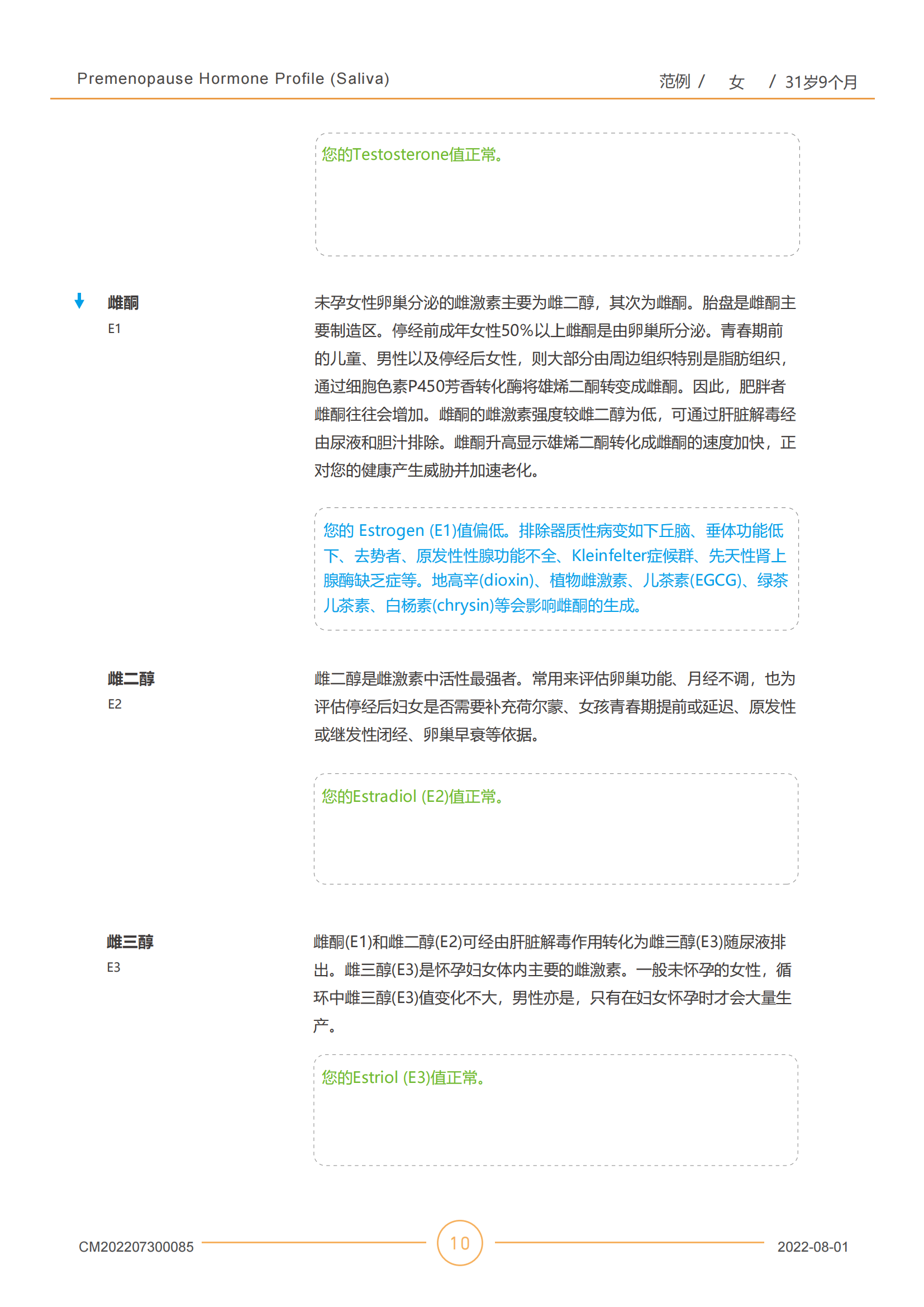 【检测】停经前荷尔蒙评估-黄体期(唾液)华测1063
