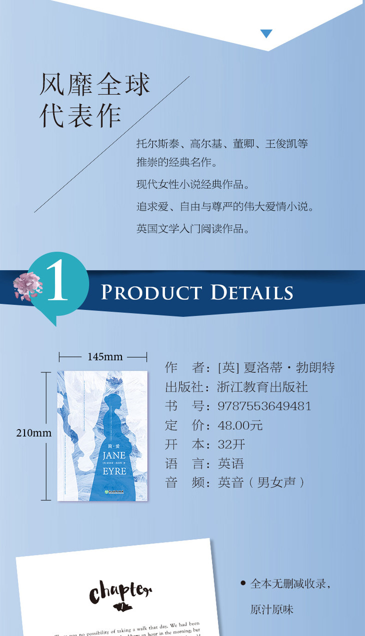 简爱 英文版 世界经典文学名著完整收录,领略大师作品魅力,品味阅读的乐趣。英文版提供难词注释、配套音频、经典插画。